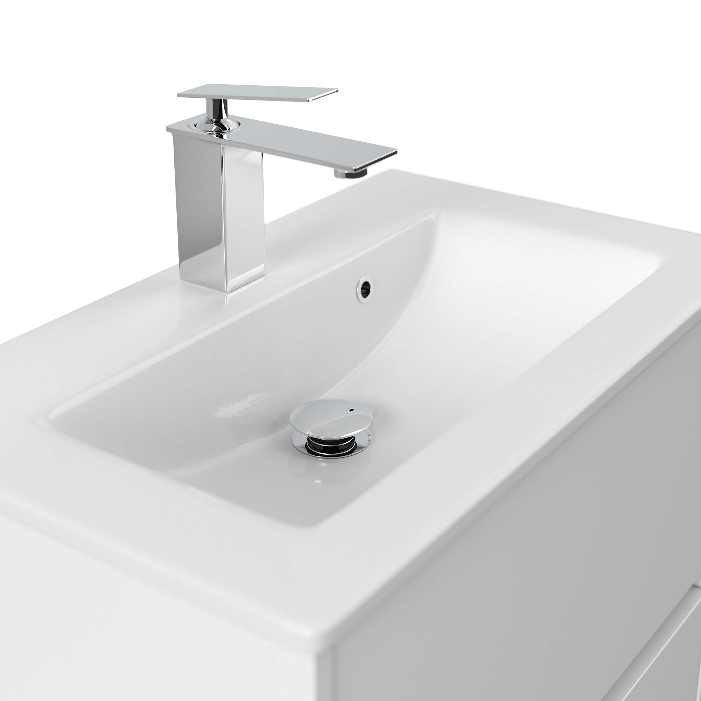 Hochwertige Ergänzung für Ihr Waschbecken Passend zu unseren Badmöbel-Sets bieten wir Ihnen einen hochwertig verarbeiteten Pop-Up Verschluss für Ihr neues Waschbecken an. Er lässt sich einfach, mit dem im Lieferumfang enthaltenen Befestigungsmaterial, am Waschbecken anbringen und sorgt für eine zuverlässige, dauerhafte Funktion. So wird die tägliche Nutzung Ihres Waschtisches noch komfortabler. Elegantes Design trifft auf Funktionalität Das Magnolia Pop-Up Ablaufventil überzeugt durch seine moderne, verchromte Messingoberfläche, die jedem Waschbecken einen eleganten Glanz verleiht. Der stilvolle Look harmoniert perfekt mit verschiedenen Armaturen und Badmöbeln und unterstreicht den hochwertigen Gesamteindruck Ihres Badezimmers. Komfortable Bedienung und langlebige Qualität Mit nur einem leichten Fingerdruck lässt sich der Ablauf ganz einfach öffnen oder schließen – komfortabel, leise und zuverlässig. Das massive Messing sorgt für Stabilität und eine lange Lebensdauer, während die pflegeleichte Chromoberfläche dauerhaft ihren Glanz behält. Die präzise Verarbeitung garantiert eine dichte, sichere Funktion und eine einfache Reinigung. Ein Detail, das den Unterschied macht Das Magnolia Pop-Up Ablaufventil ist mehr als nur ein technisches Zubehör – es ist das elegante Finish für Ihr Waschbecken. Durch Qualität, Design und einfache Handhabung vereint es Stil und Komfort auf höchstem Niveau und rundet Ihr Badezimmer perfekt ab. Materialien Lieferung per Spedition Die Lieferung der Ware erfolgt auf Palette bis Bordsteinkante. Die Lieferung wird von Spedition vorab avisiert. Die Verpackung verbleibt beim Kunden. Siehe dazu auch unsere Versandinformationen. Maße und Lieferumfang:Magnolia Pop-Up Ablaufventil Höhe ohne Verschluss 7,5cm Höhe mit Verschluss 8,6cm Durchmesser unten 4cm Durchmesser des Deckels 6,4cm Gewinde 1 1/4" Downloads zu diesem Artikel: Download Montageanleitung Popup