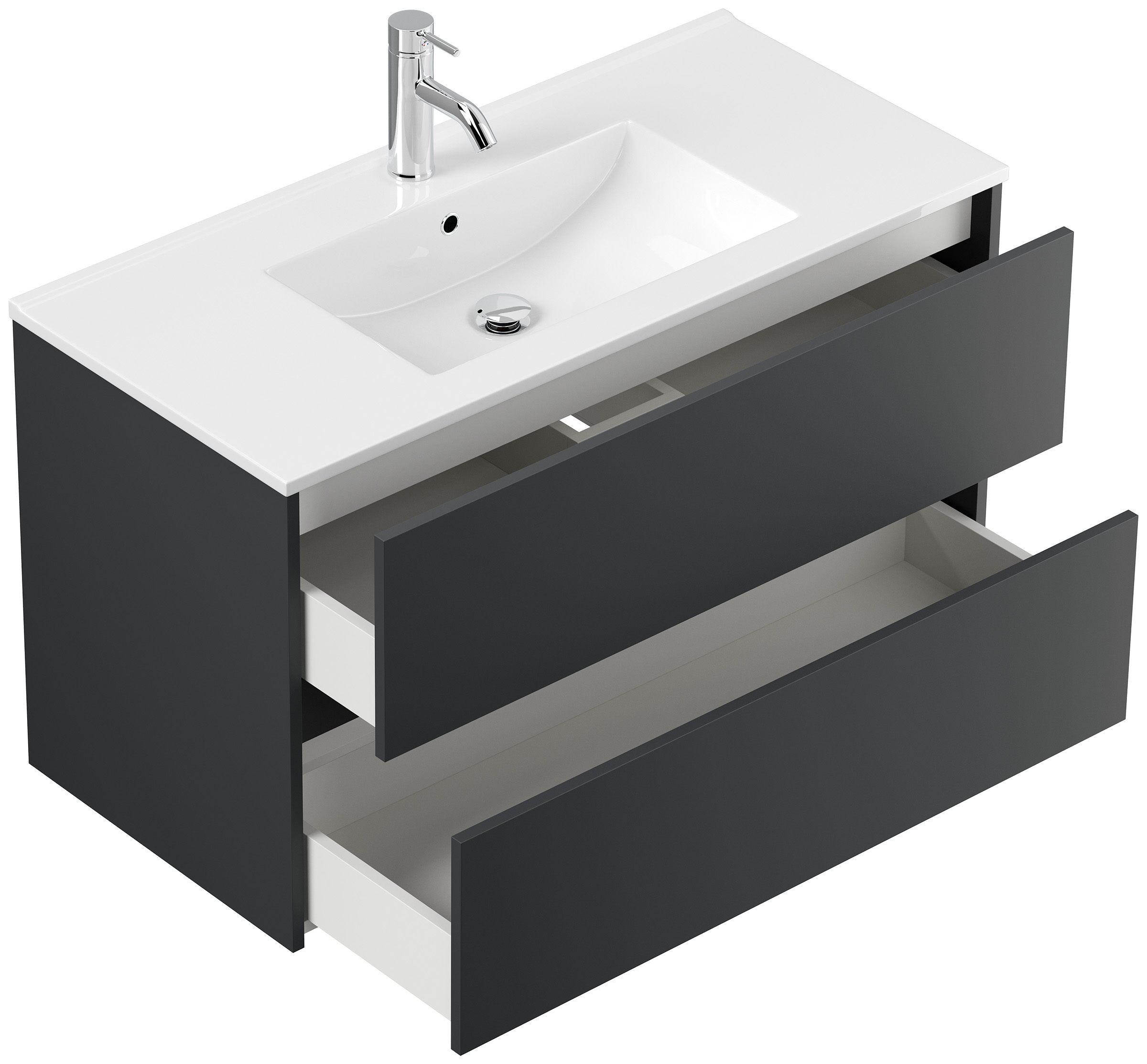 Badmöbel Taifun & Waschtisch 100 cm 2 Greifraum SoftClose Auszüge Grafit