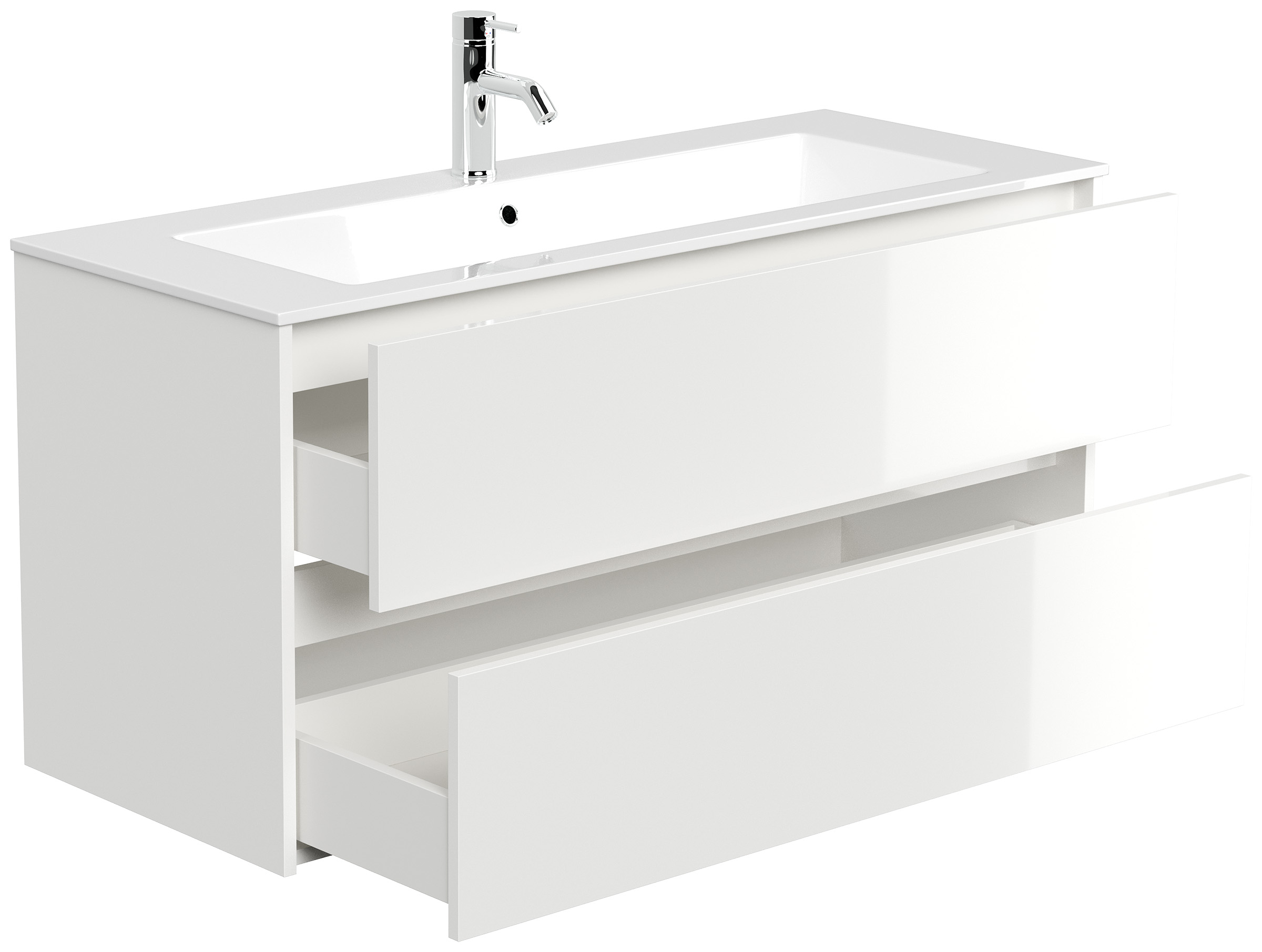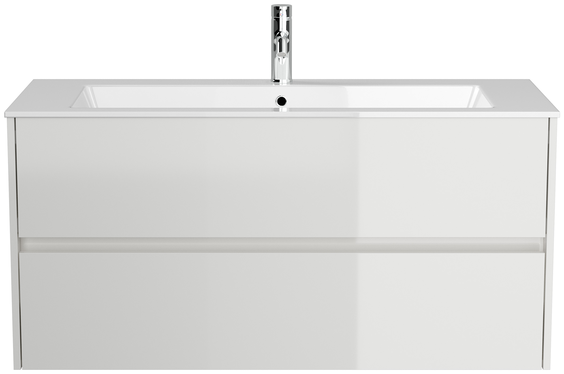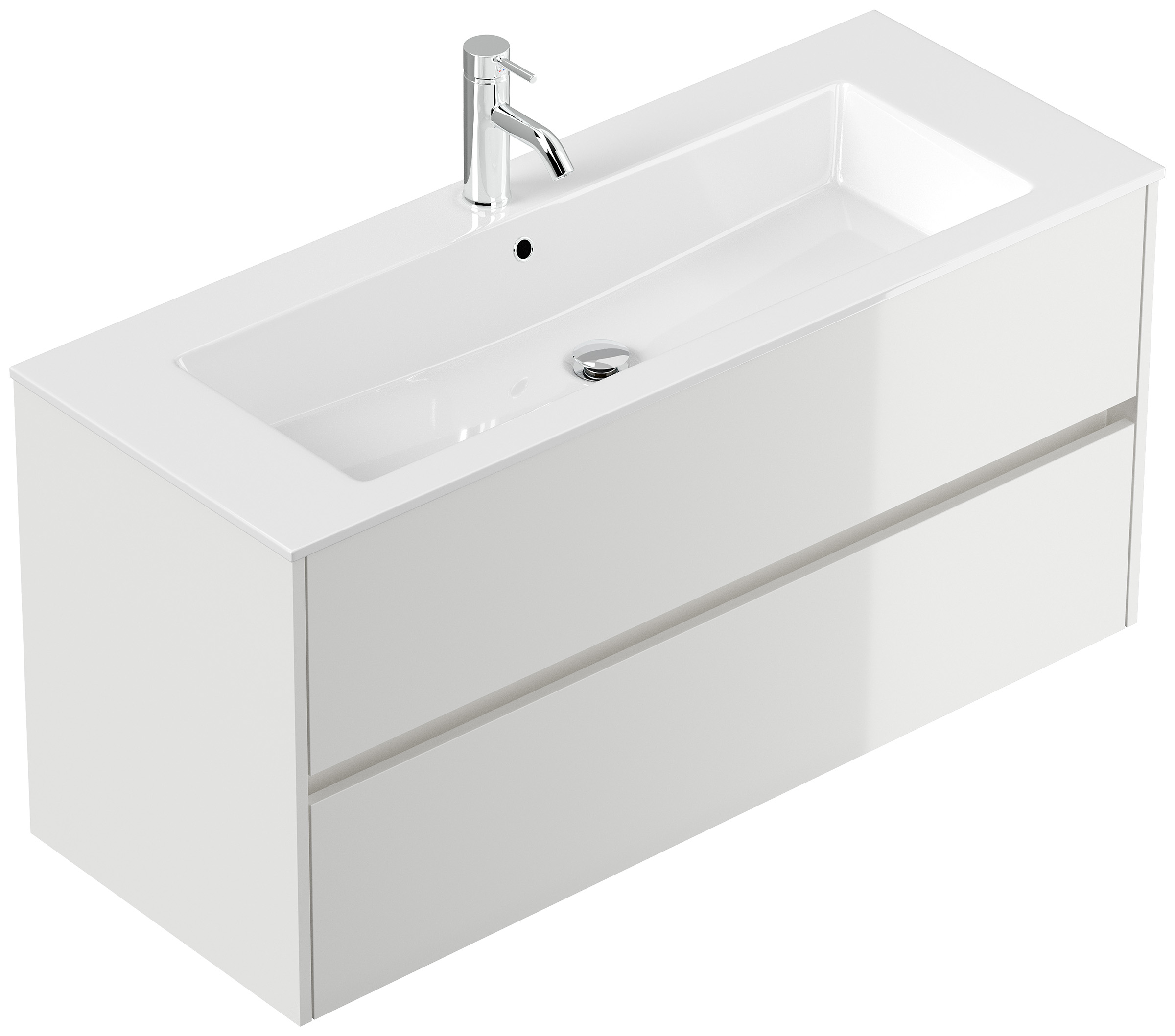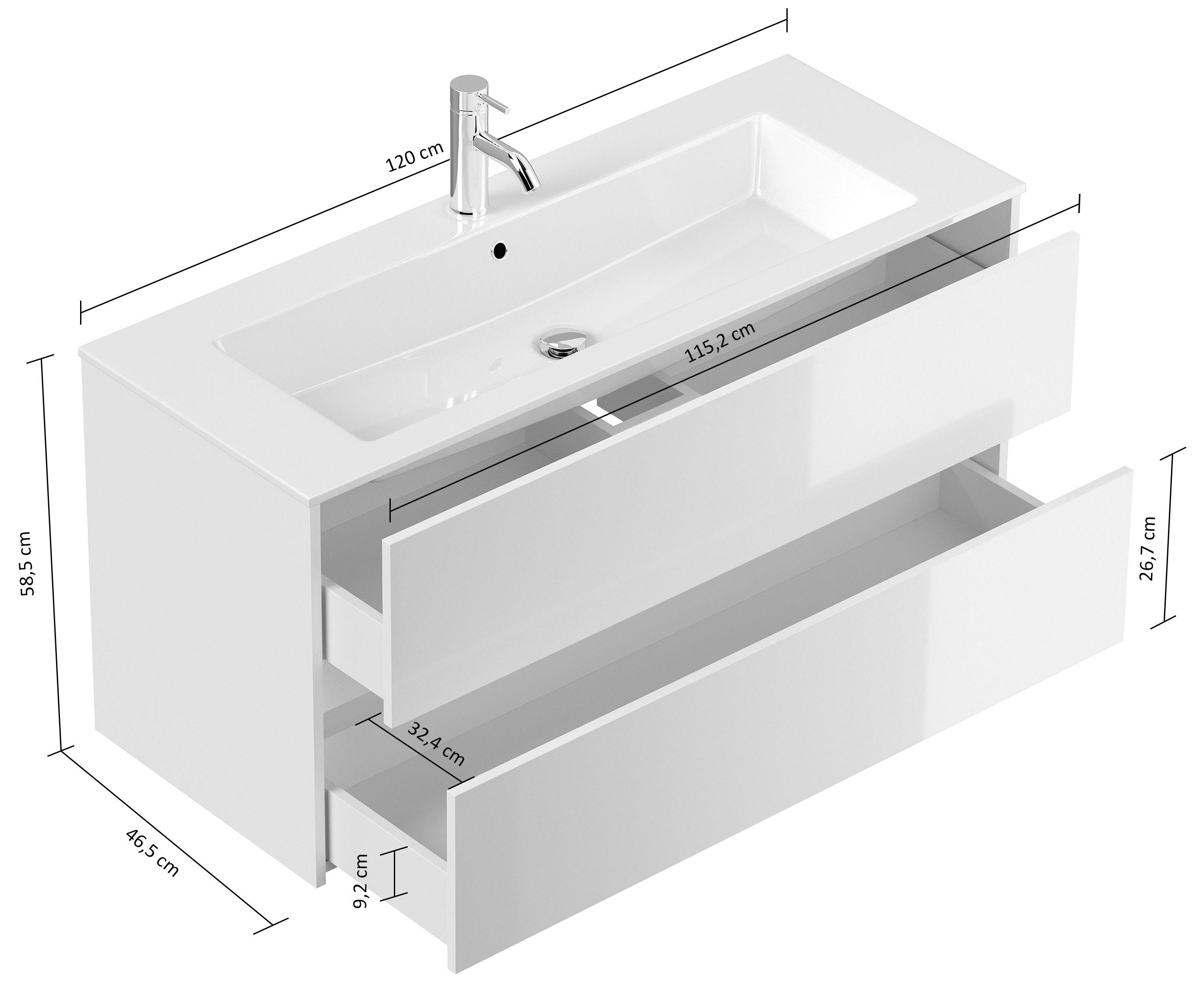 Badmöbel-Unterschrank Taifum mit 2 Softclose Schubladen und Waschbecken Mineralguss mit Überlauf und einem Hahnloch (B/H/T) 120/58,5/46,5 cm