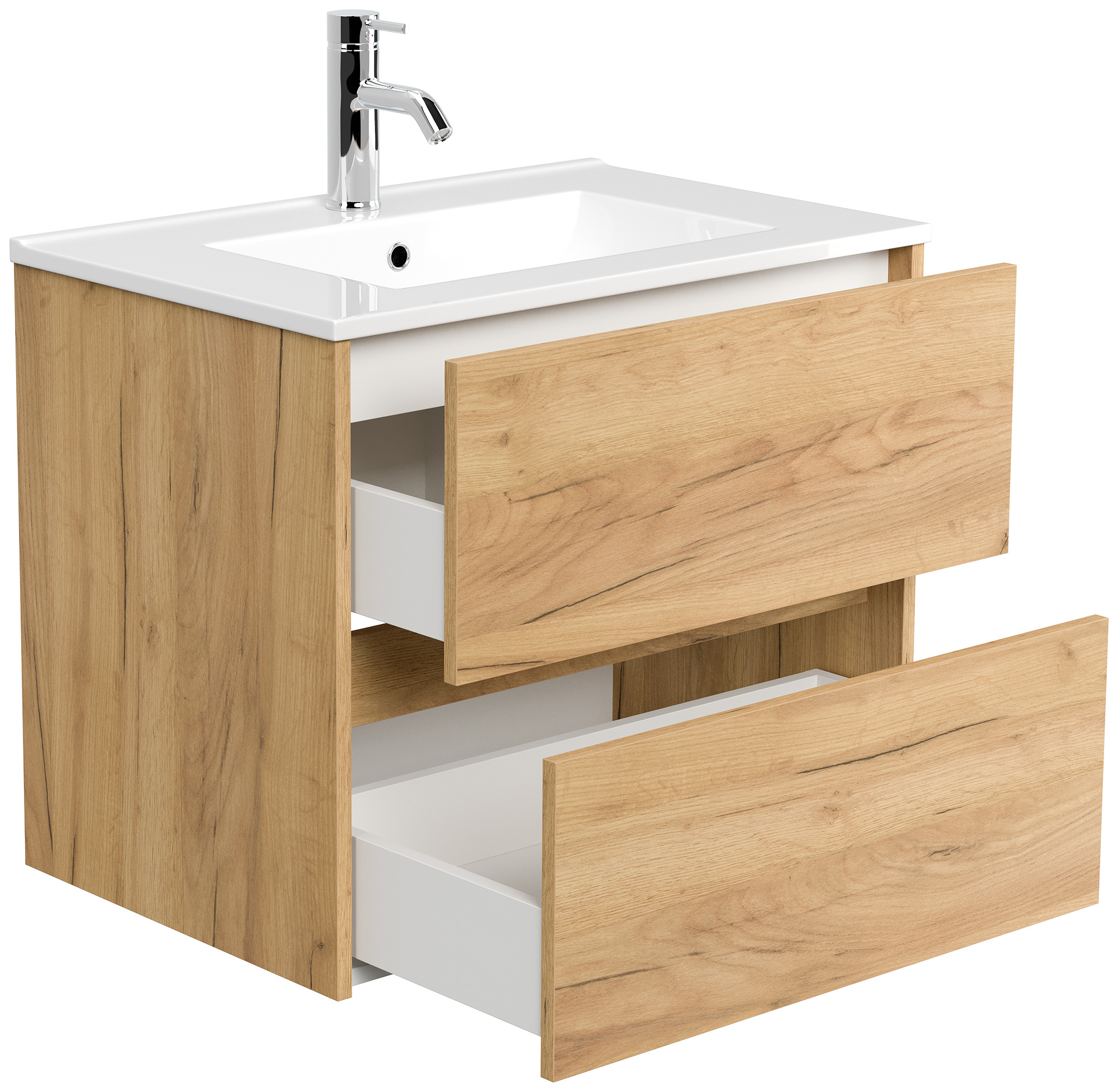 Badmöbel-Unterschrank Taifum mit 2 Softclose Schubladen und Waschbecken Keramik mit Überlauf. Maße Unterschrank mit Waschbecken (B/H/T) 71/58,7/46,5 cm