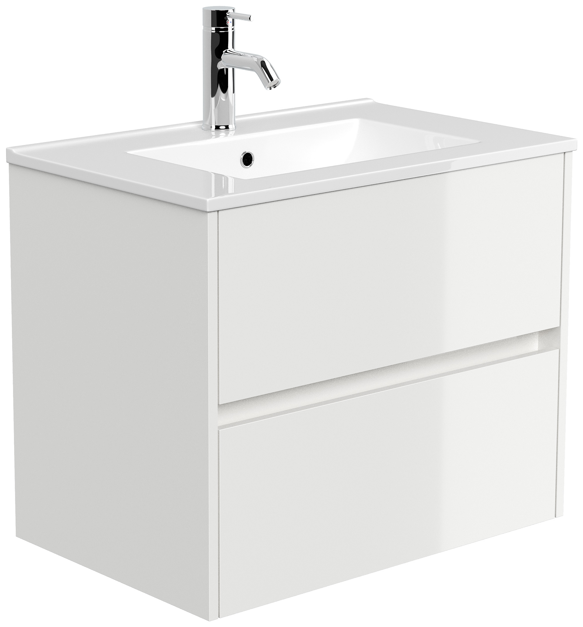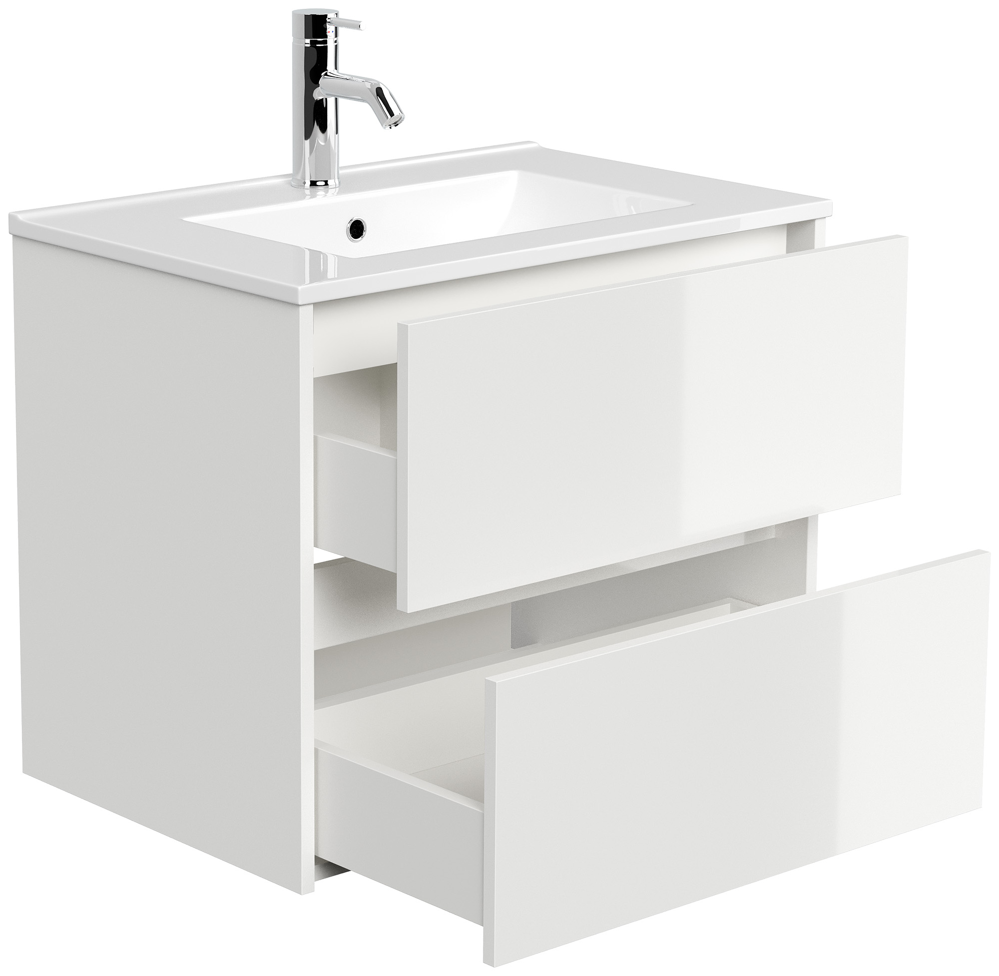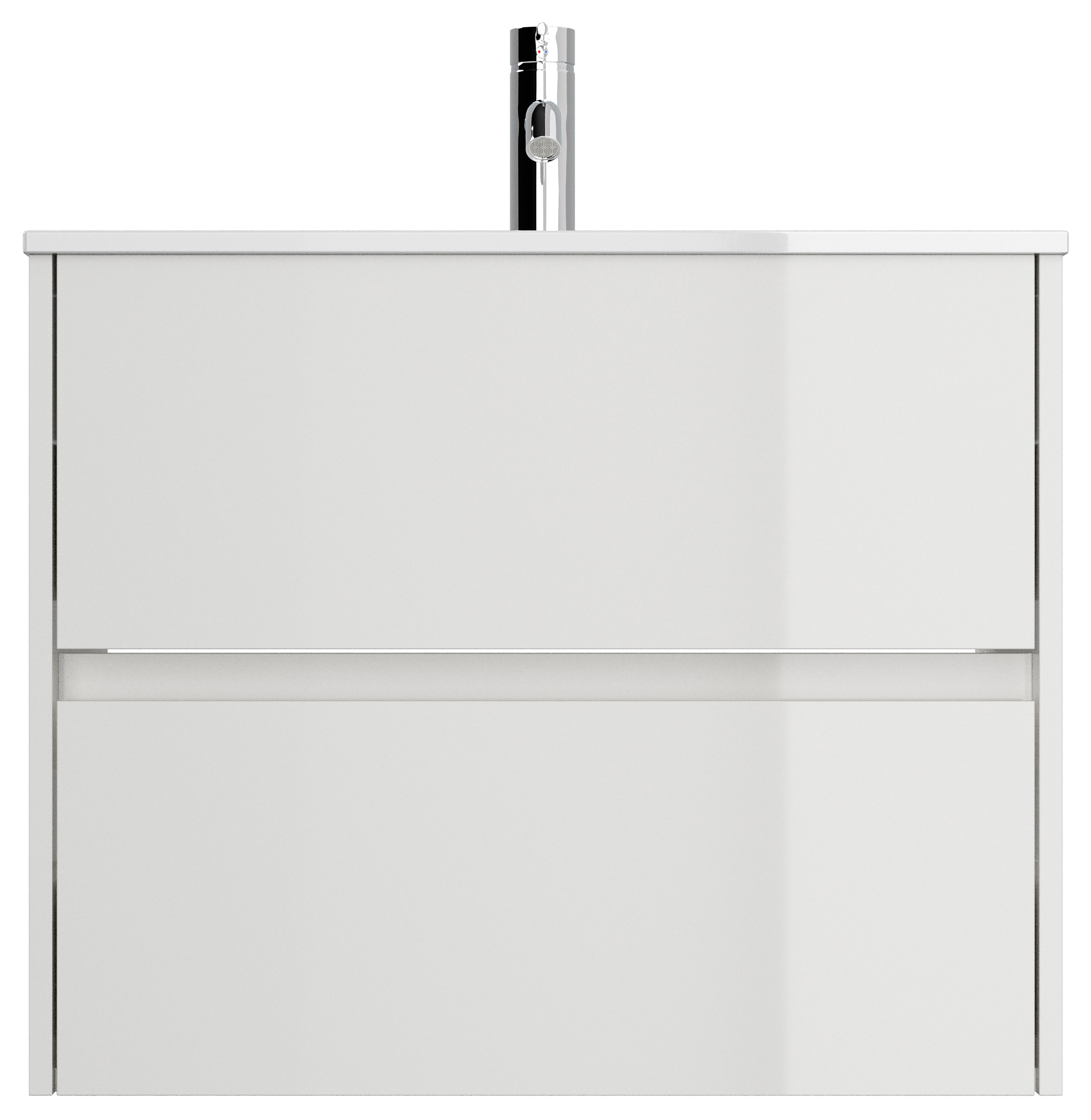 Badmöbel-Unterschrank Taifum mit 2 Softclose Schubladen und Waschbecken Keramik mit Überlauf. Maße Unterschrank mit Waschbecken (B/H/T) 71/58,7/46,5 cm