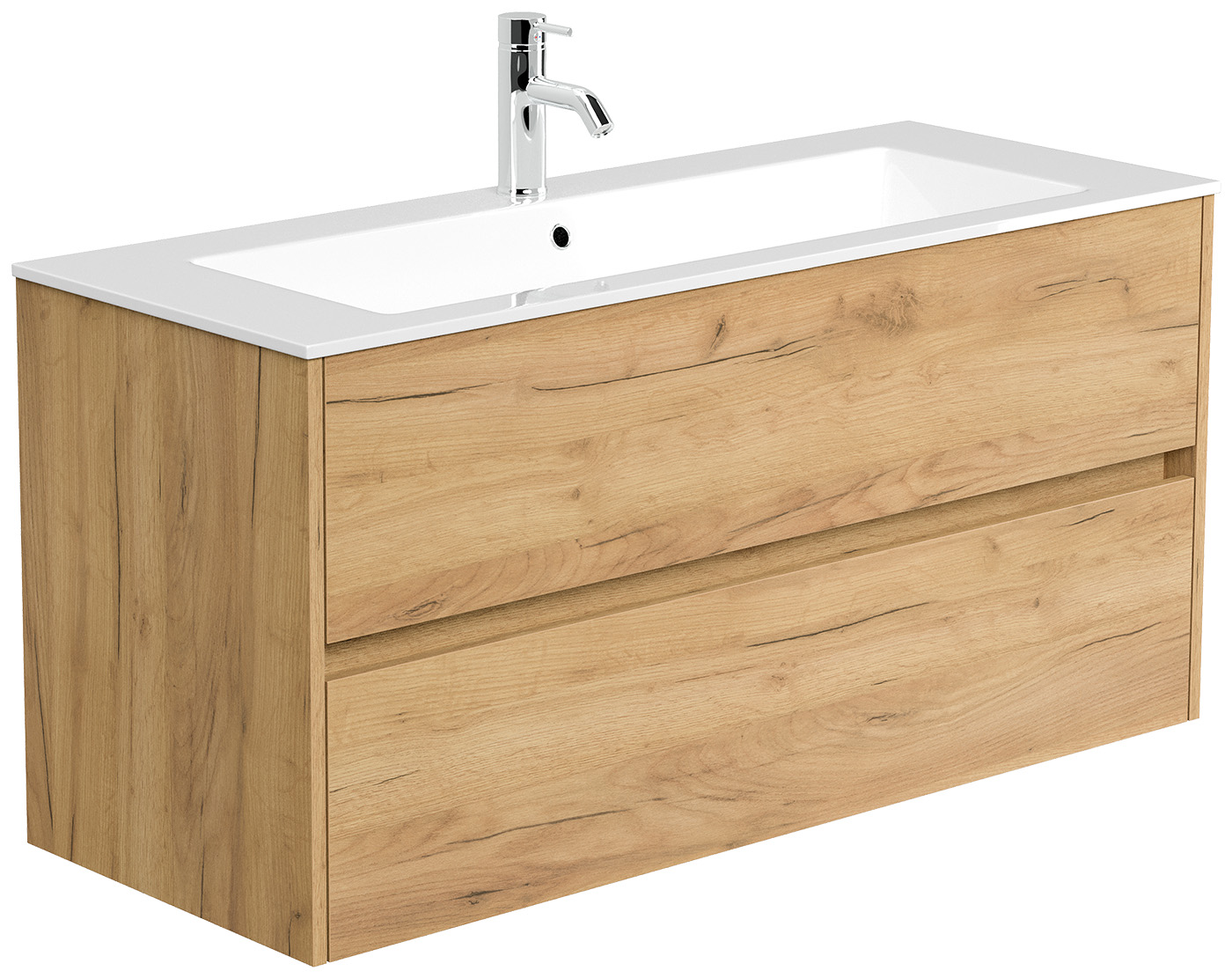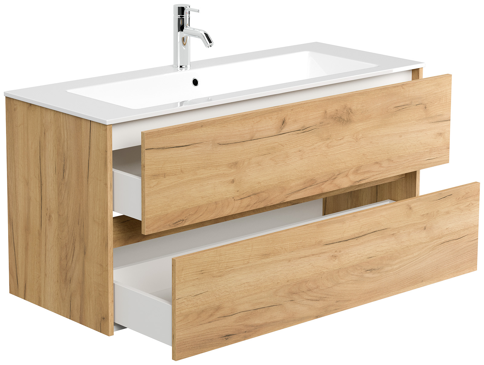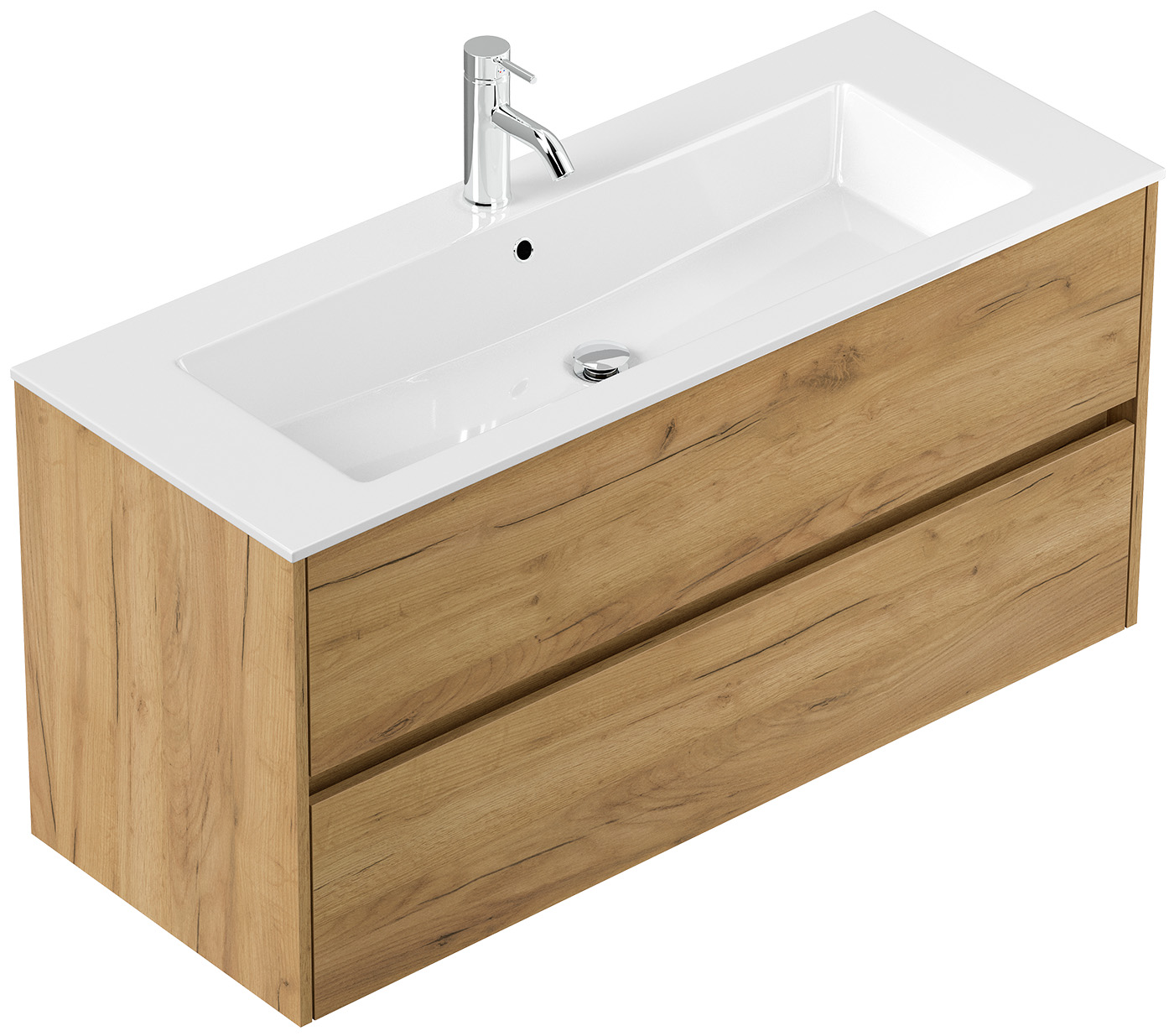 Badmöbel-Unterschrank Taifum mit 2 Softclose Schubladen und Waschbecken Mineralguss mit Überlauf und einem Hahnloch (B/H/T) 120/58,5/46,5 cm