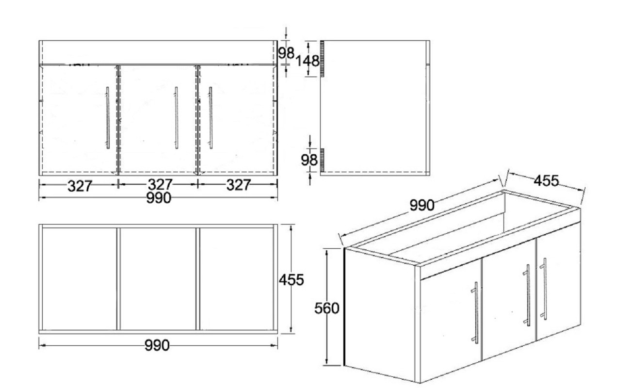 Badmöbel Waschtisch Unterschrank Badmöbel Waschtisch Unterschrank mit 3 Soft-Close Schranktüren (B/H/T) 99/56/45,5 cm,