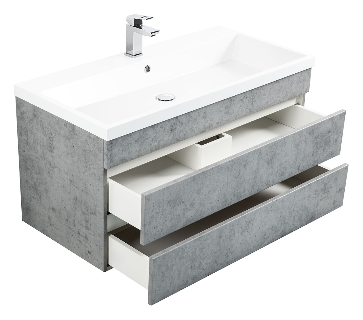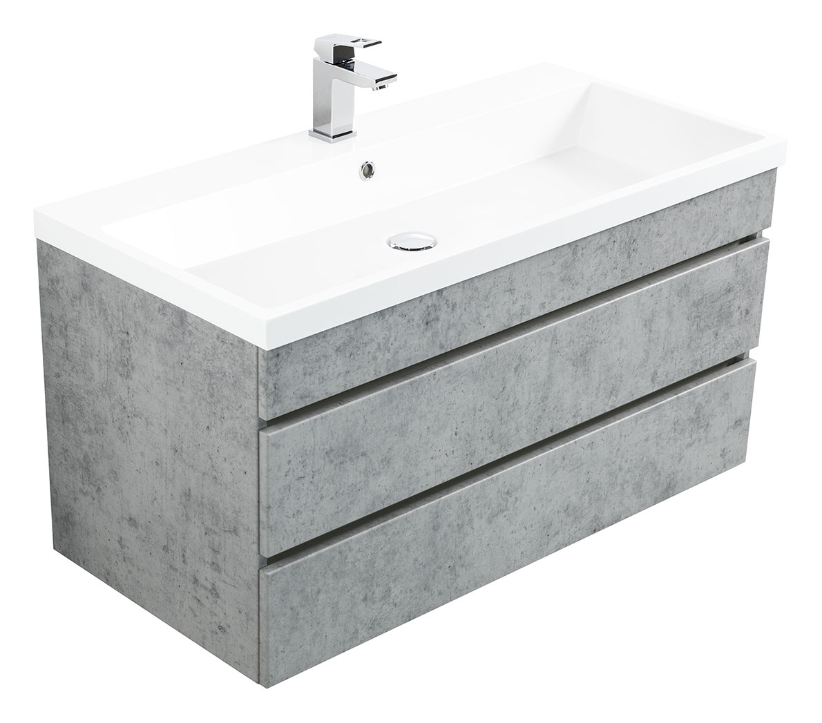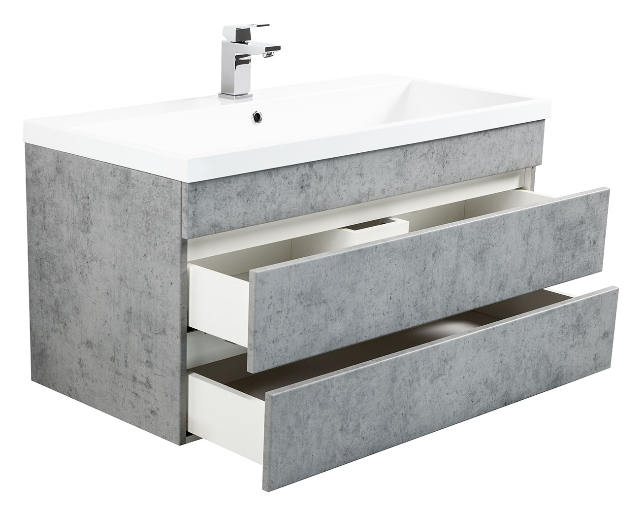 Badmöbel Via 100 SoftClose beton mit grifflosen Schubladen