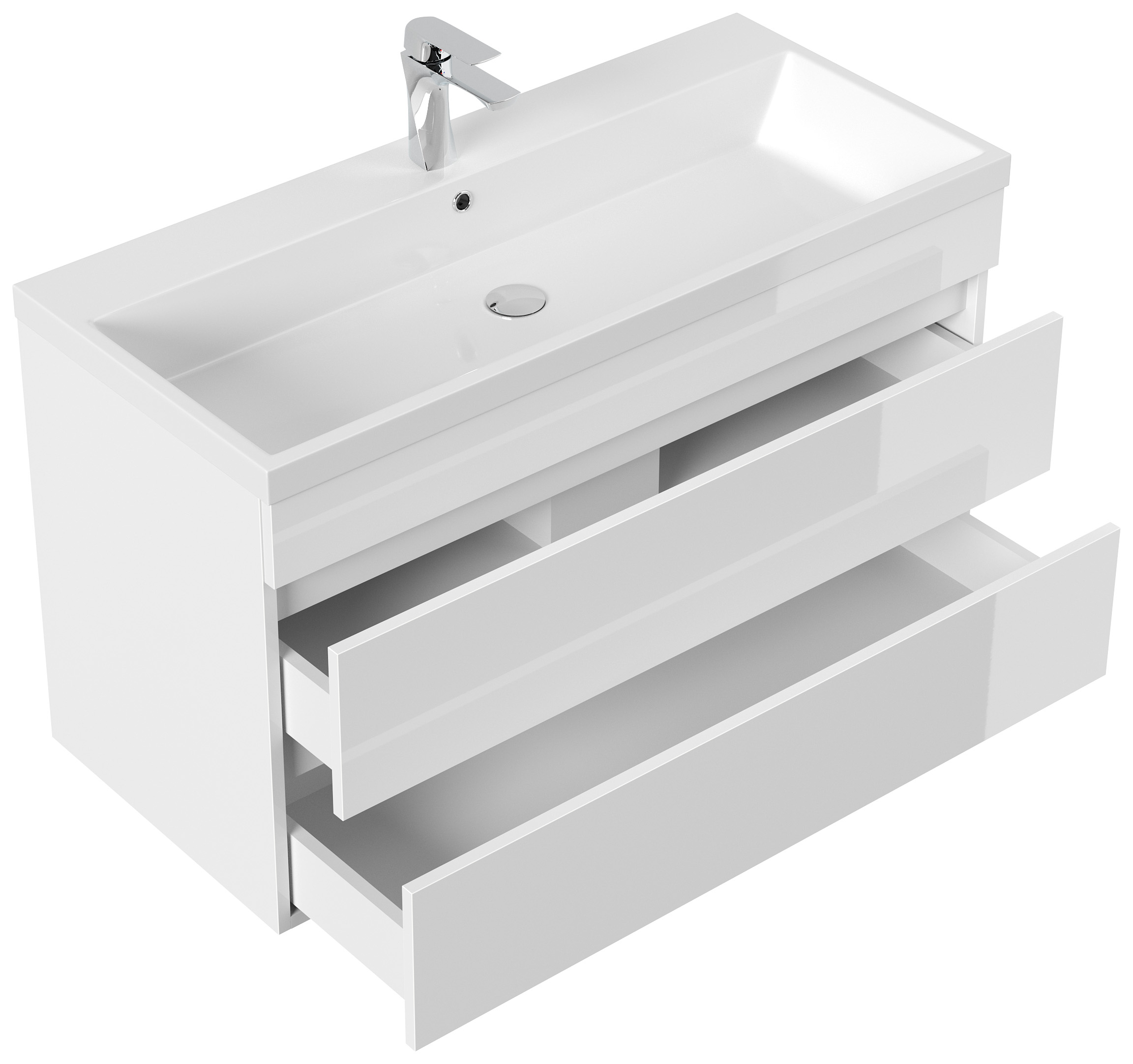 Badmöbel Via 100 SoftClose weiss hochglanz mit grifflosen Schubladen