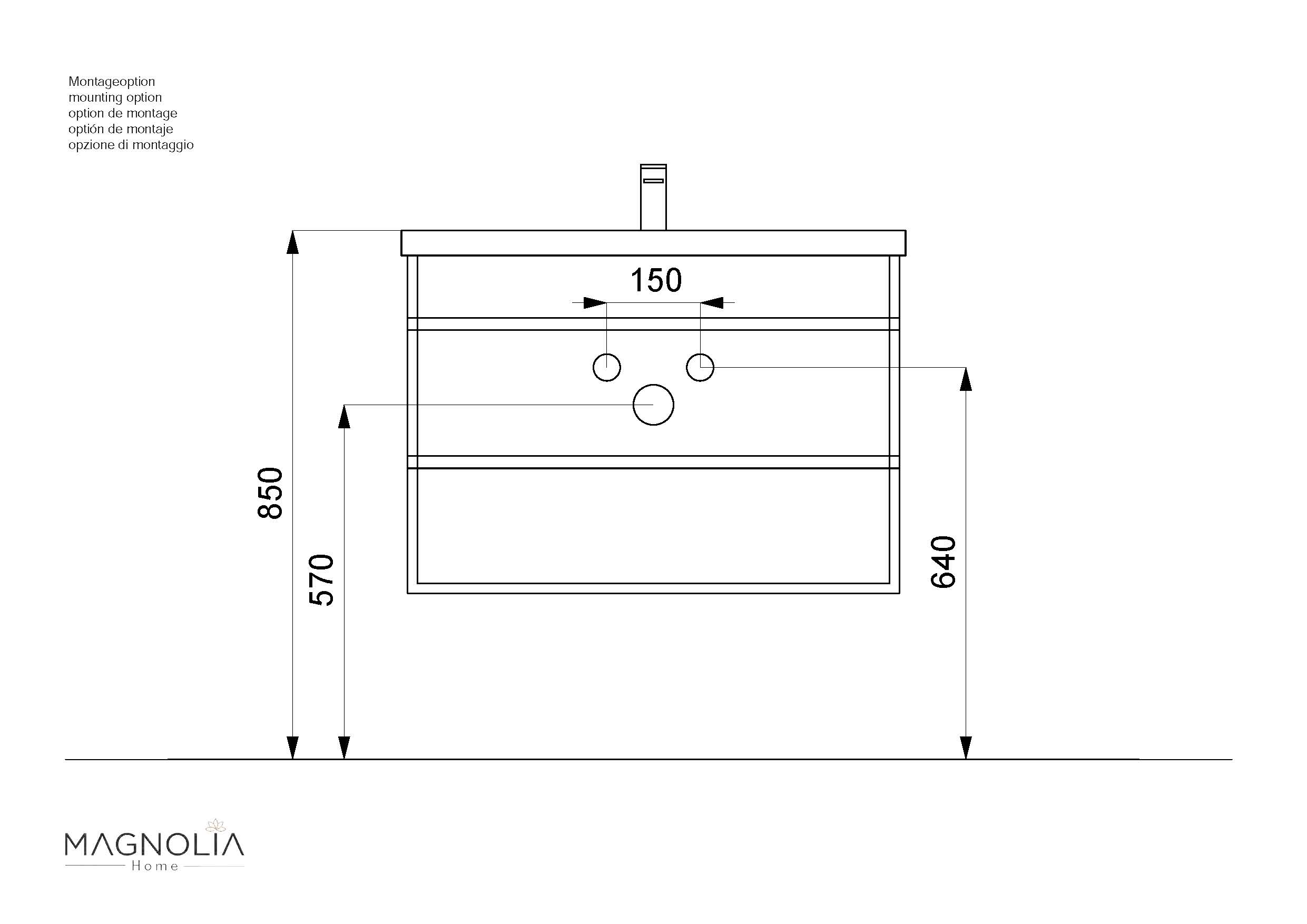 Die Ware wird zerlegt geliefert. Eine Aufbauanleitung liegt der Ware bei. Der Badunterschrank ist für die Wandmontage vorgesehen. Etwaiges Wandmontagematerial für die Aufhängung ist in der Lieferung nicht enthalten. Bitte verwenden Sie Schrauben und Dübel, die zu den Bedingungen bei Ihnen vor Ort passen. Das Waschbecken müssen Sie nicht extra an der Wand befestigen, sondern es wird auf den Unterschrank aufgesetzt. Die Montage wird mit einem Silikonstreifen zwischen Badmöbel und Waschbecken sowie Badezimmerwand optimiert. Der Anschluss für Ab- und Zulauf erfolgt wie üblich. Wir empfehlen, den Wasseranschluss von einer Fachfirma durchführen zu lassen.
