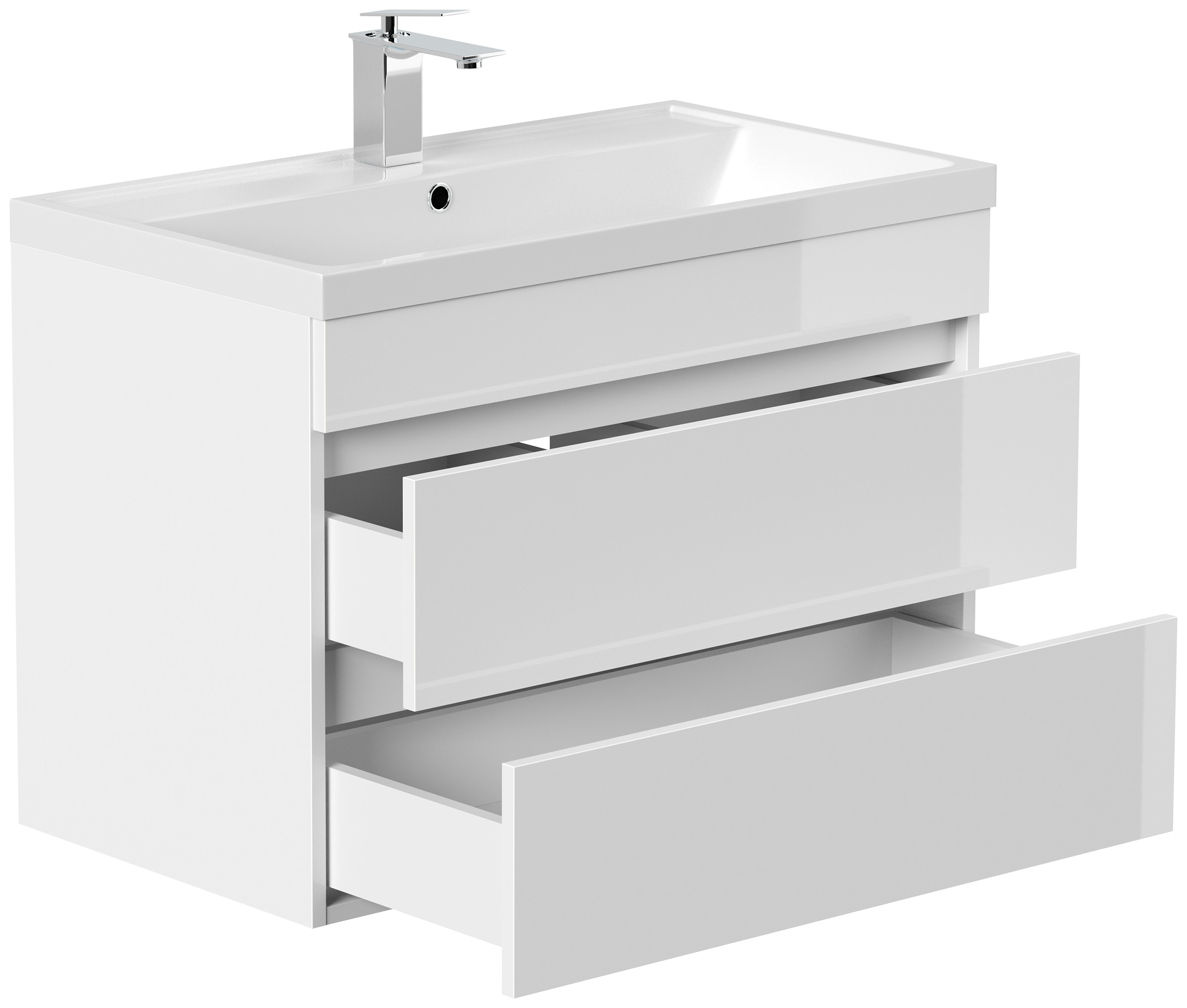 Badmöbel Via 80 SoftClose weiss hochglanz mit grifflosen Schubladen