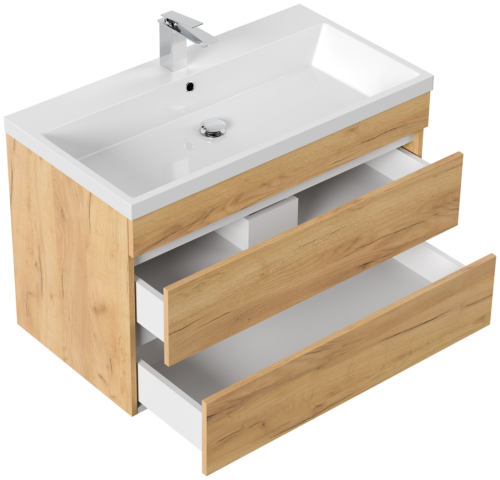 Badmöbel Via 90 SoftClose eiche gold mit grifflosen Schubladen