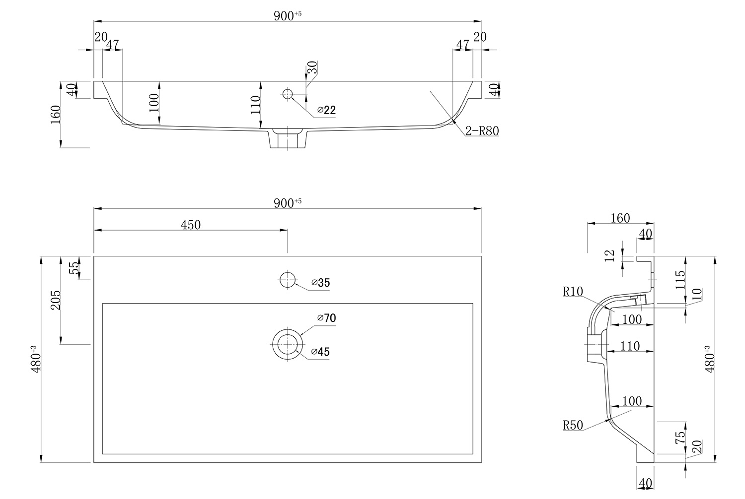 Waschbecken: (B/H/T) 90/4/48,2 cm
