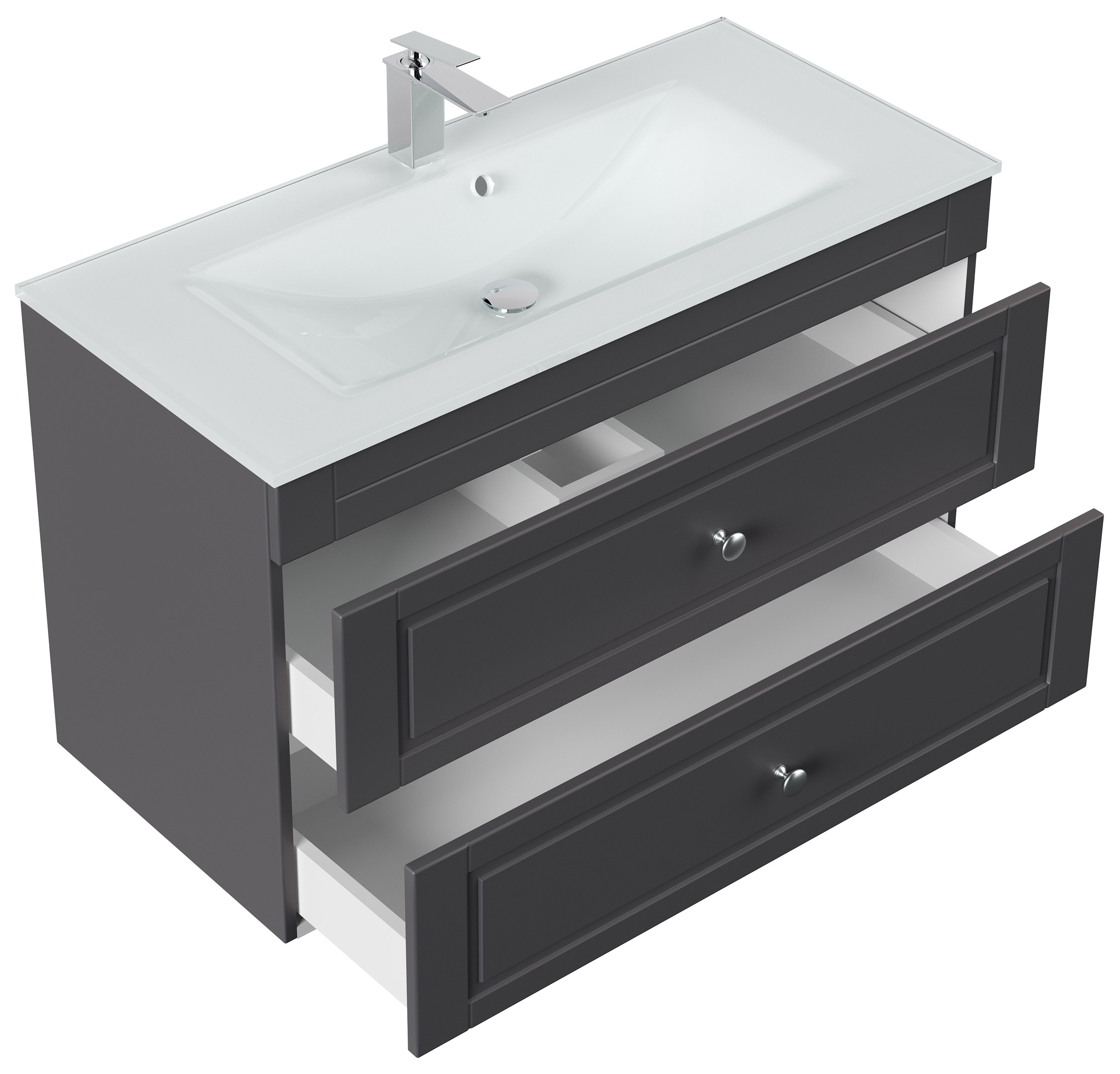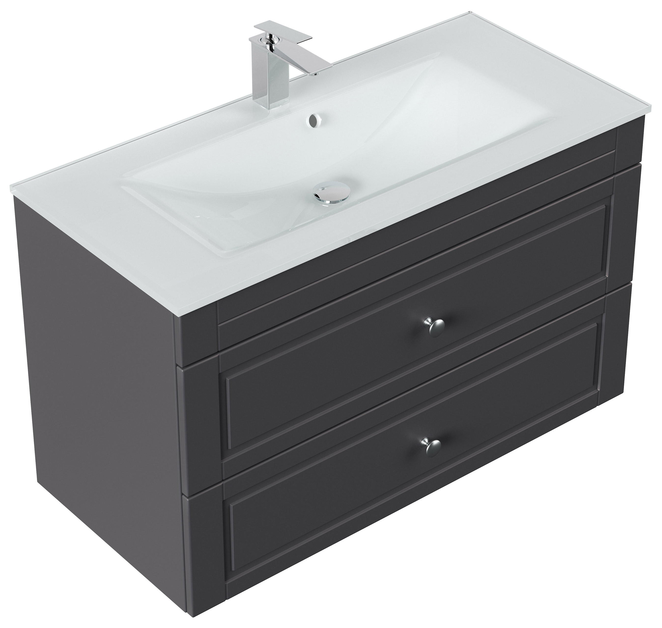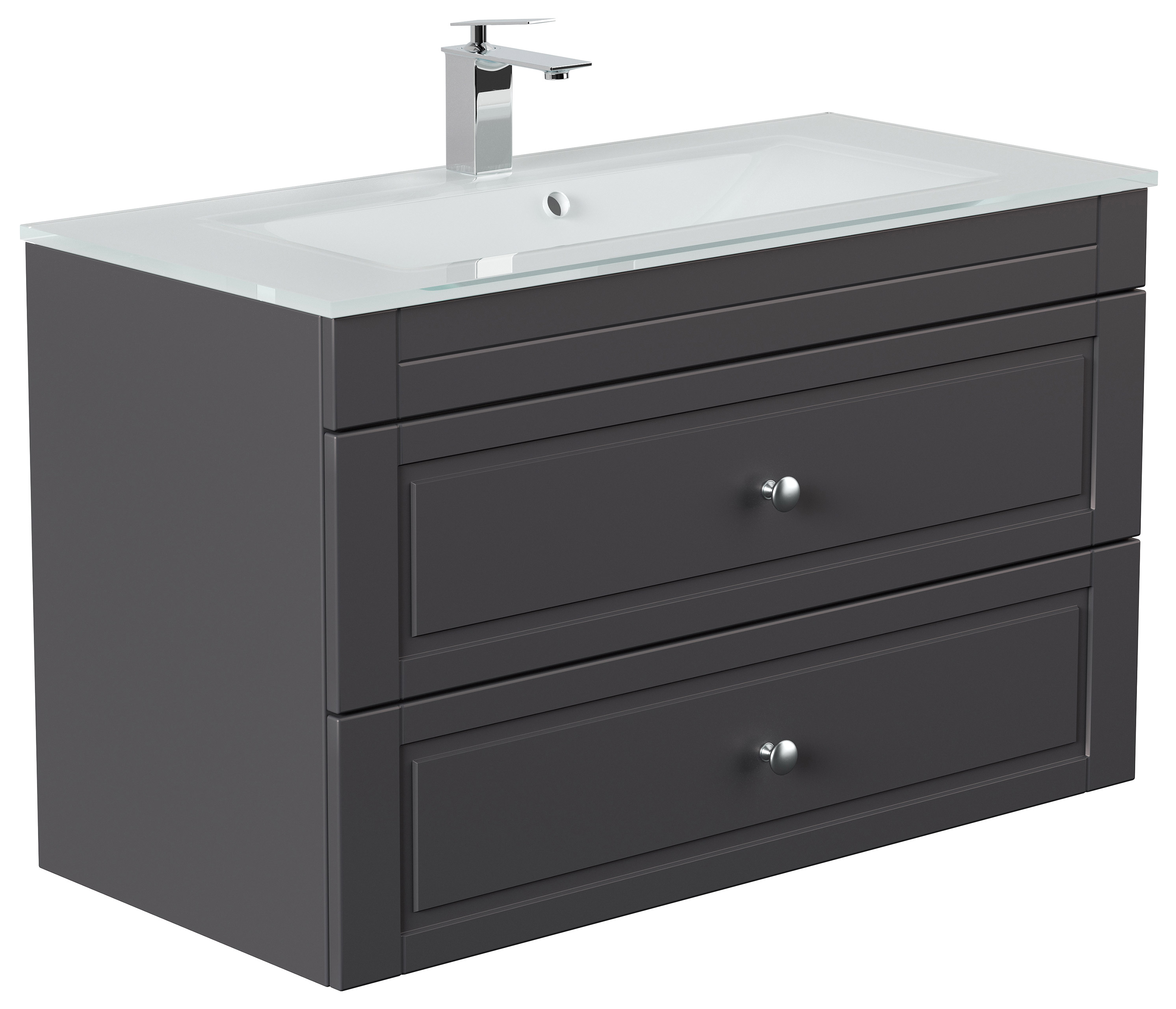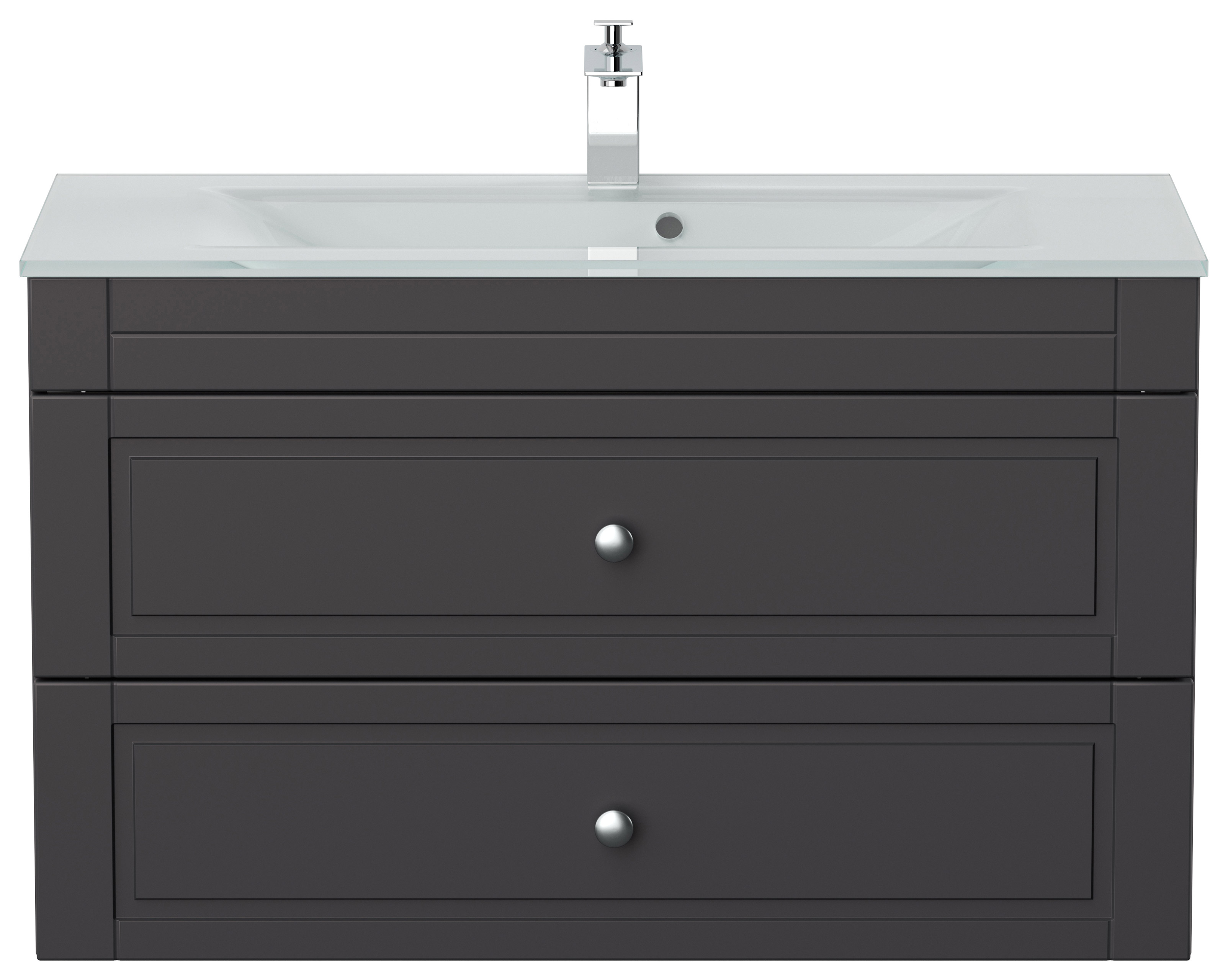 Badmöbel Vitro 1000 Cottage Glaswaschbecken SoftClose anthrazit