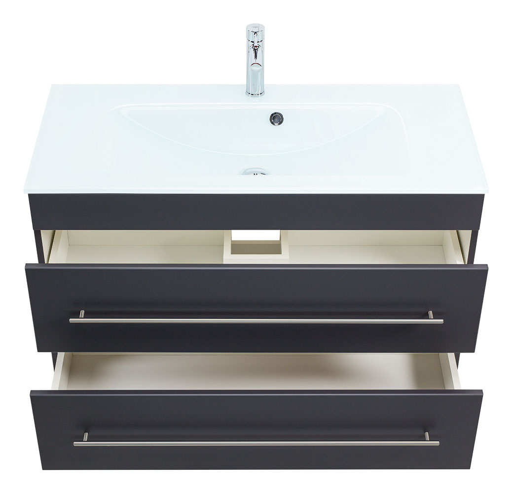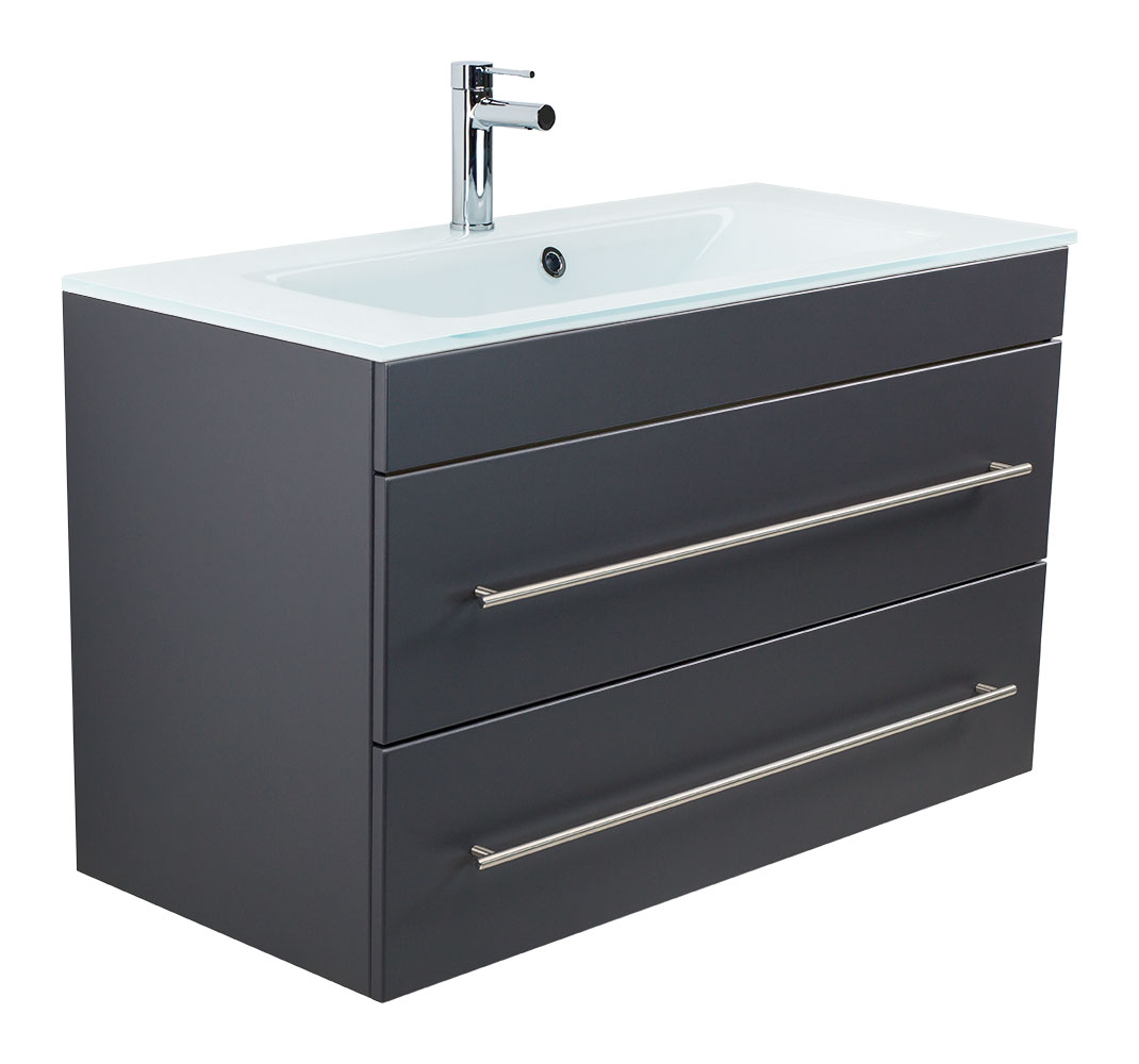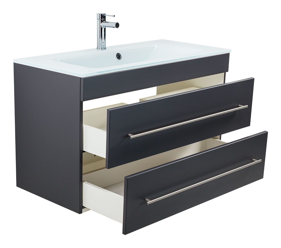 Badmöbel Vitro 1000 mit Glaswaschbecken SoftClose anthrazit