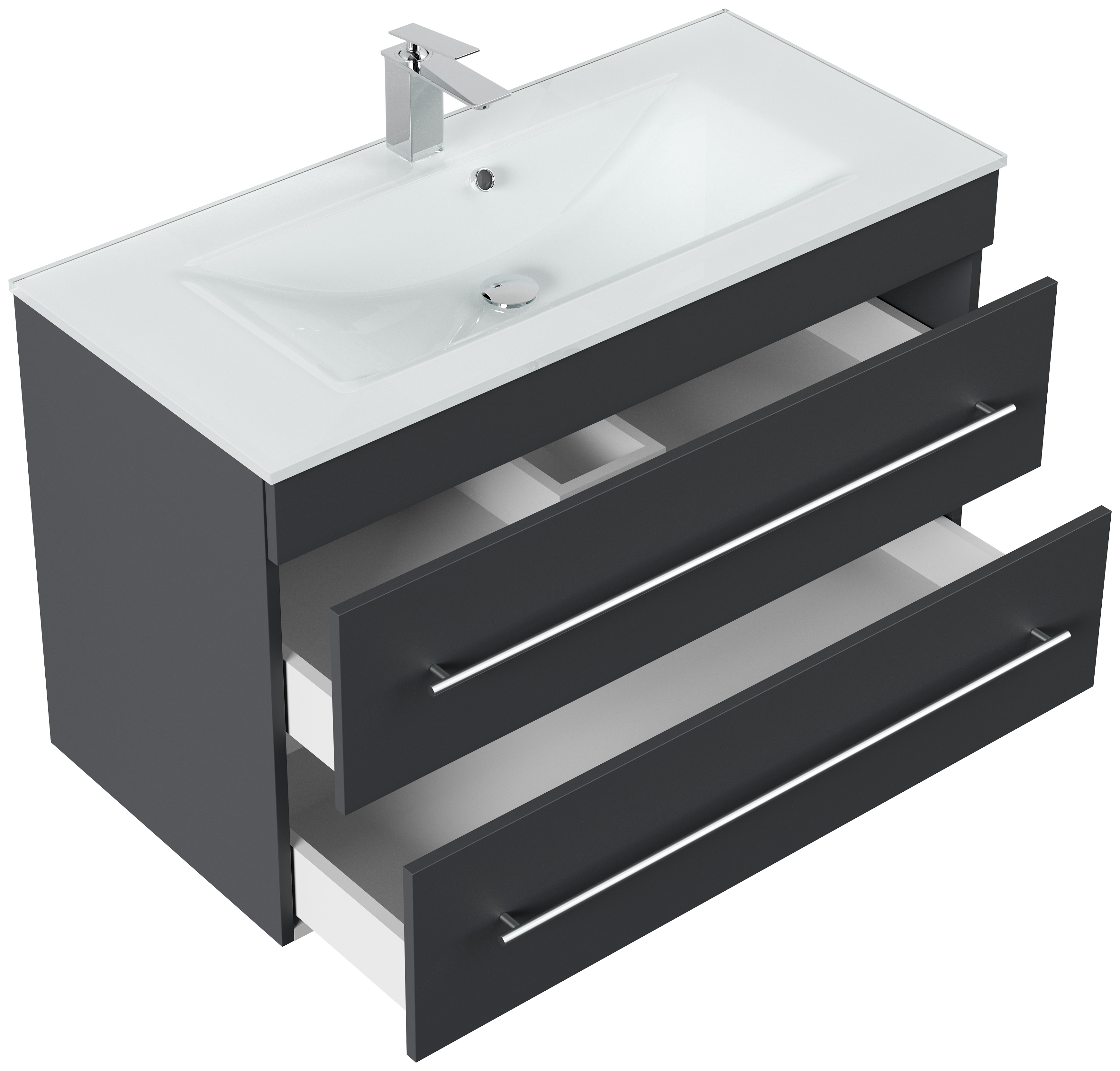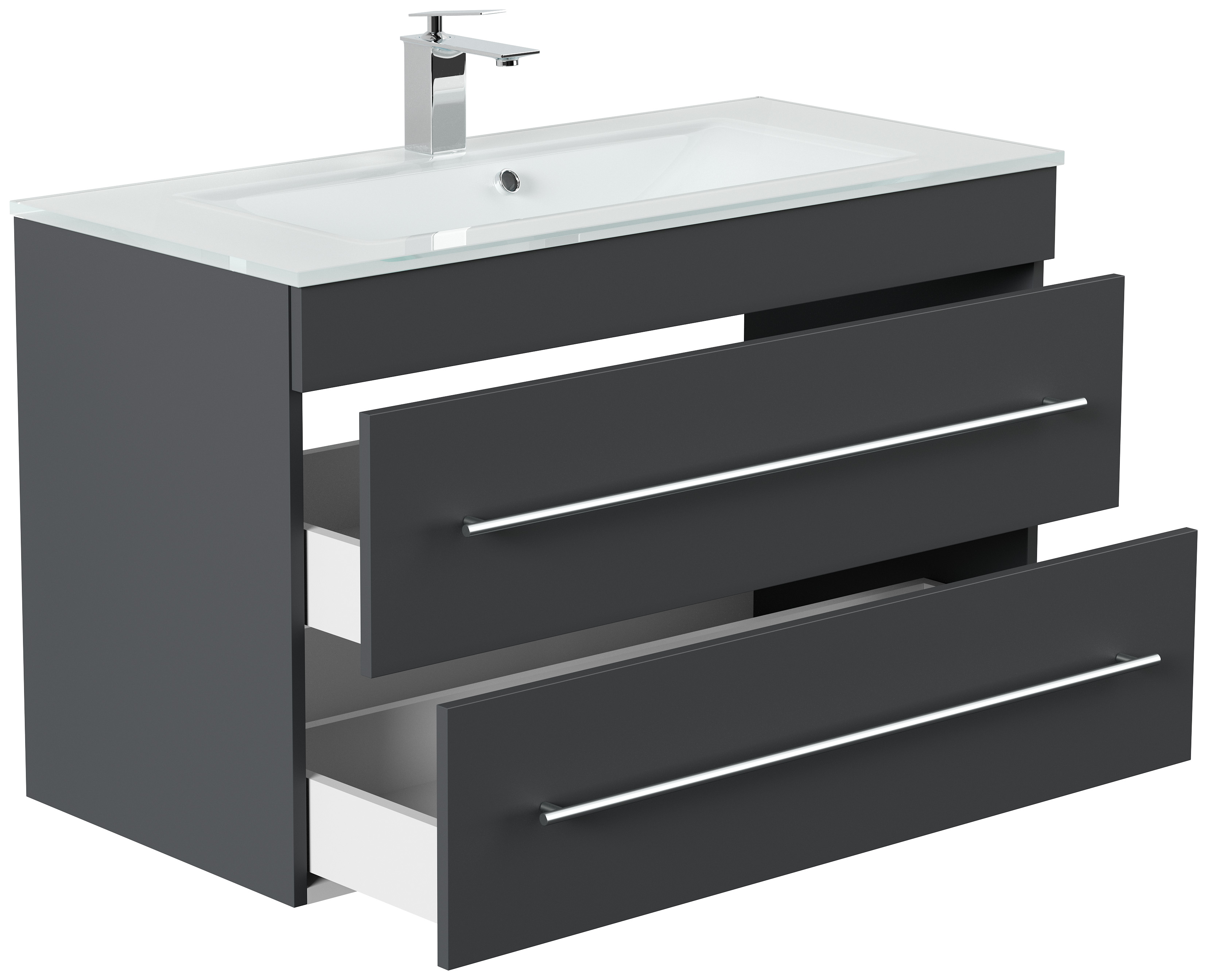 Badmöbel Vitro 1000 mit Glaswaschbecken SoftClose grafit