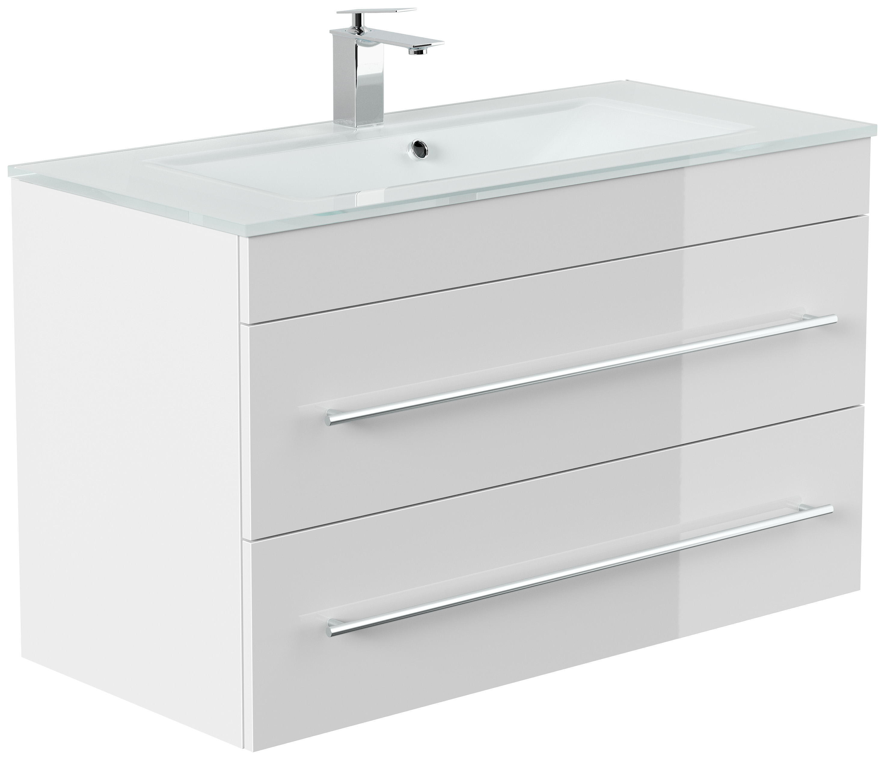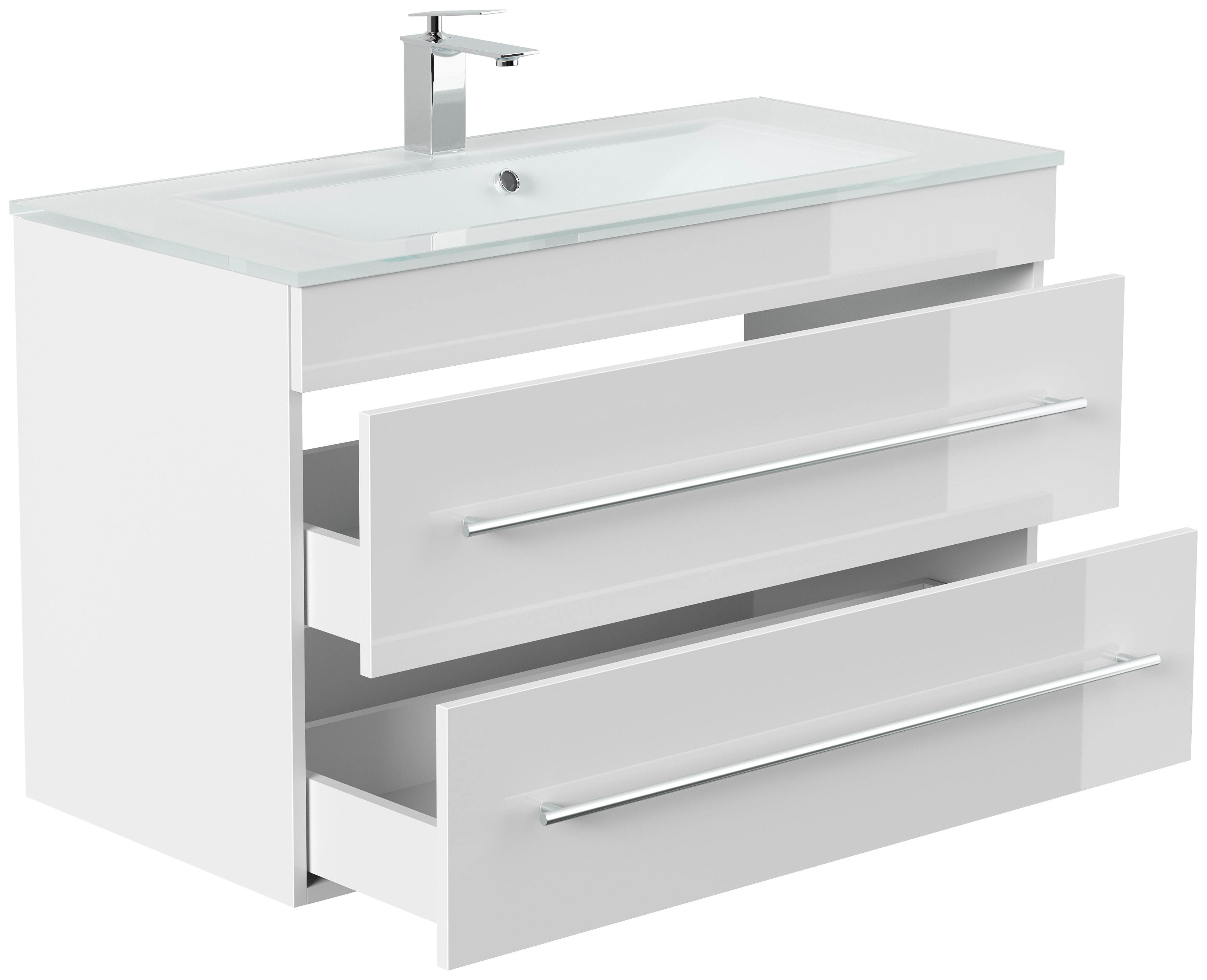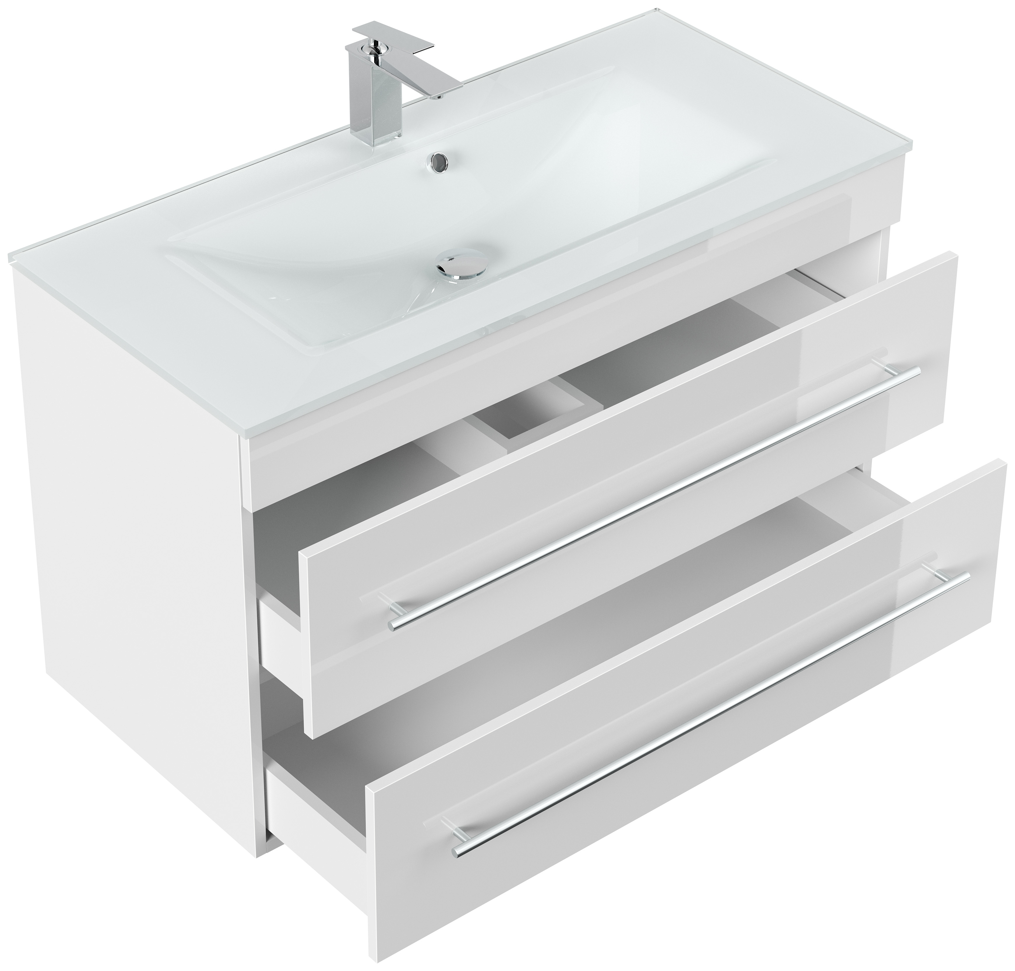Badmöbel Vitro 1000 mit Glaswaschbecken SoftClose weiss hochglanz