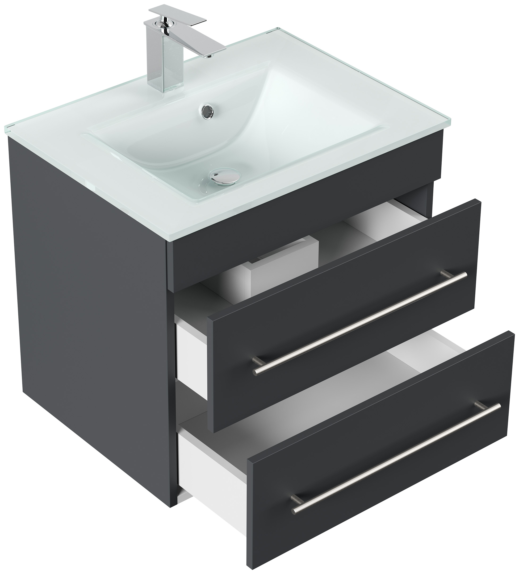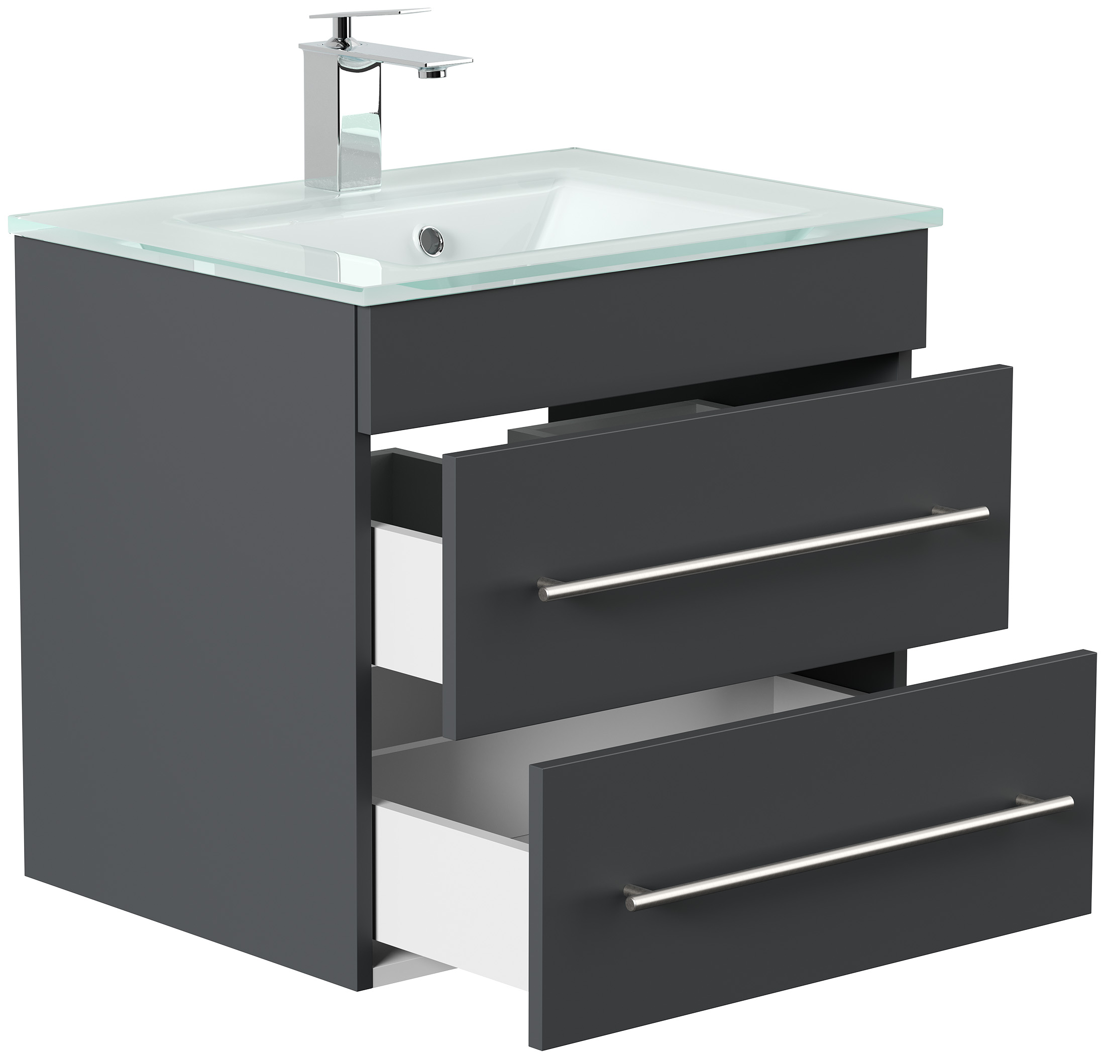 Badmöbel Vitro 60 inkl. Glasbecken SoftClose grafit