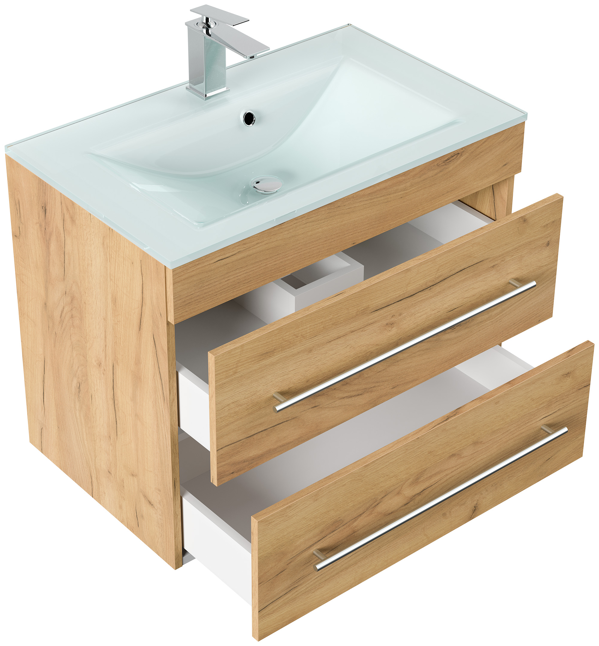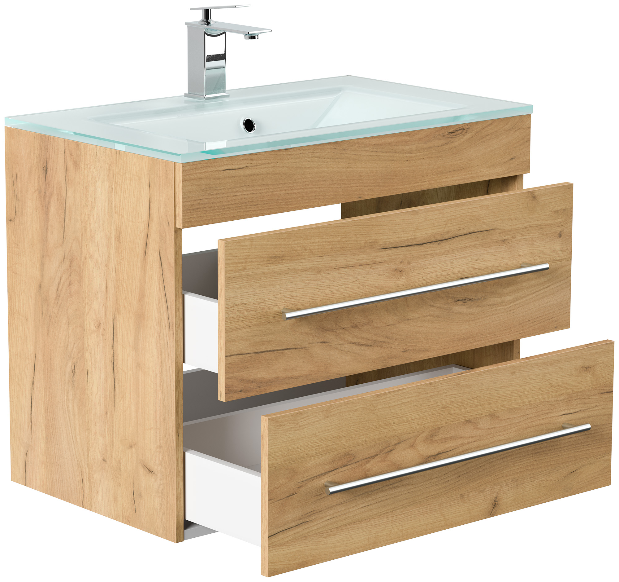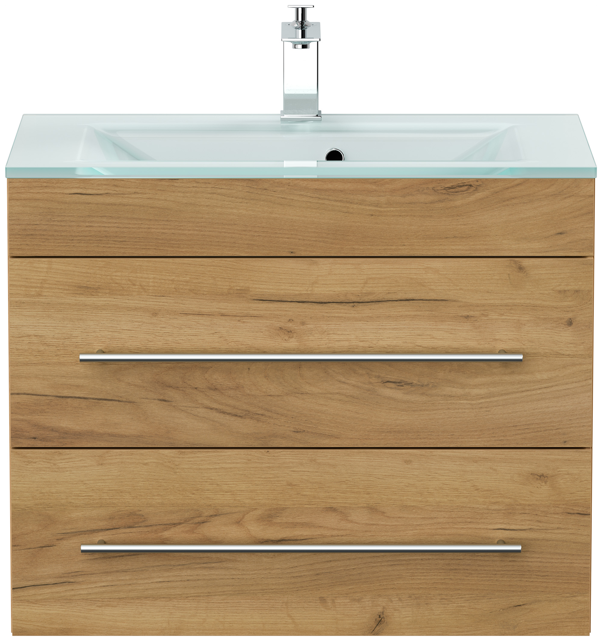 Badmöbel Vitro 750 mit Glaswaschbecken SoftClose eiche gold