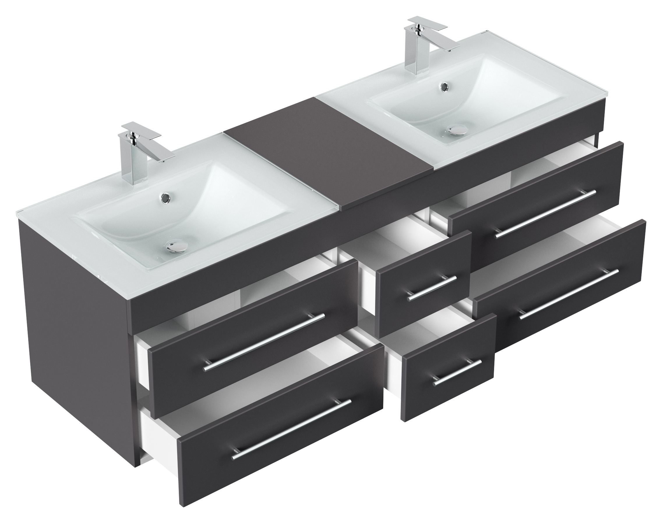 Badmöbel Vitro XL mit Doppel-Glasbecken SoftClose anthrazit