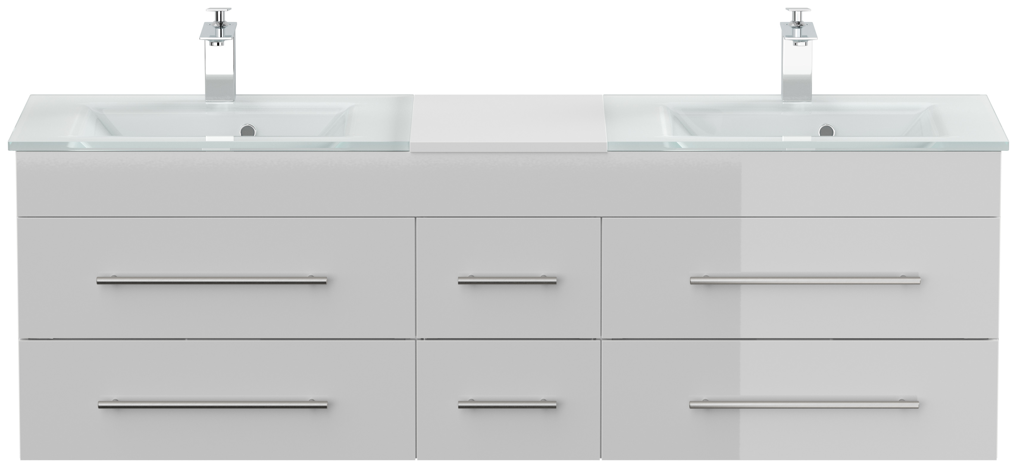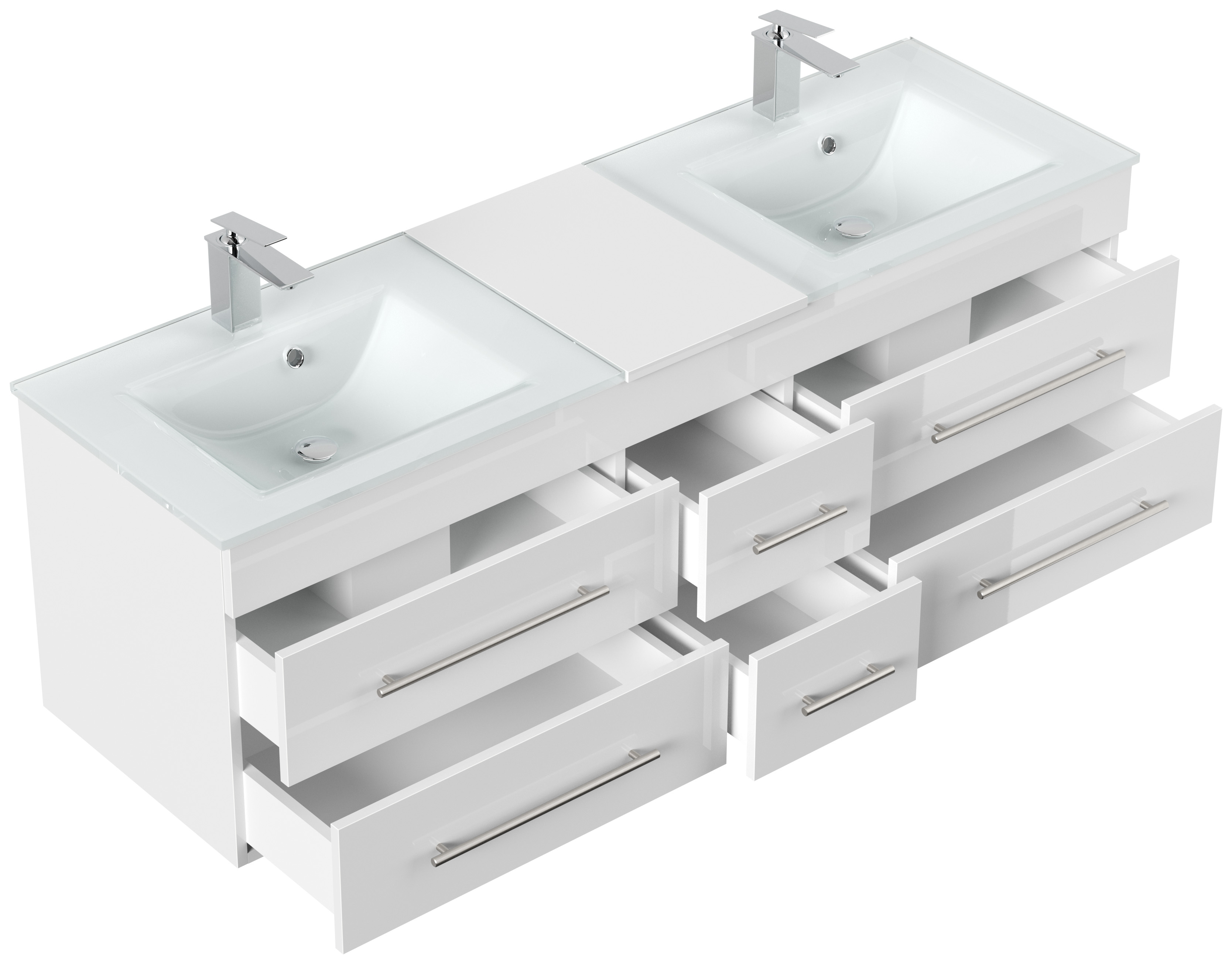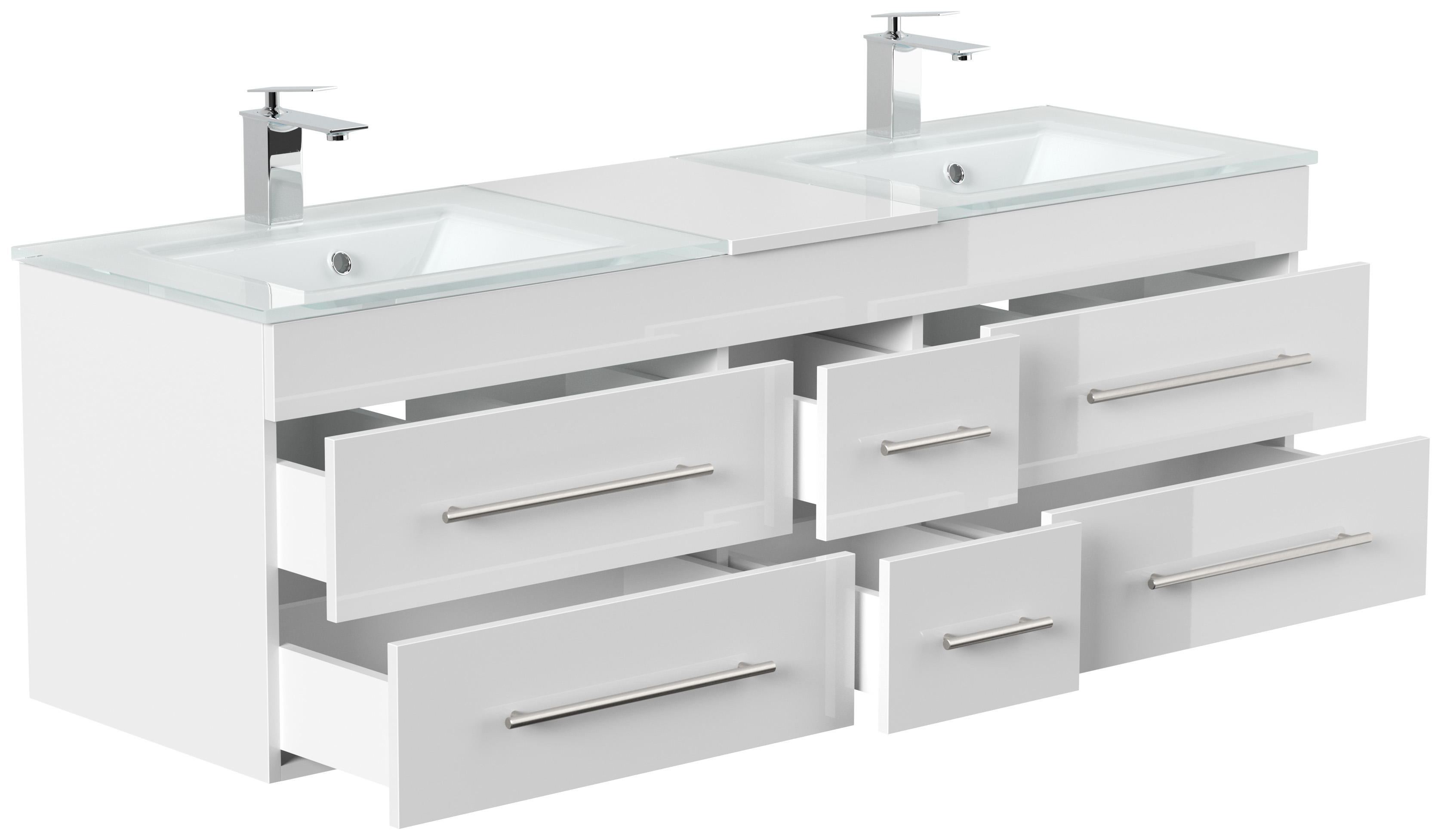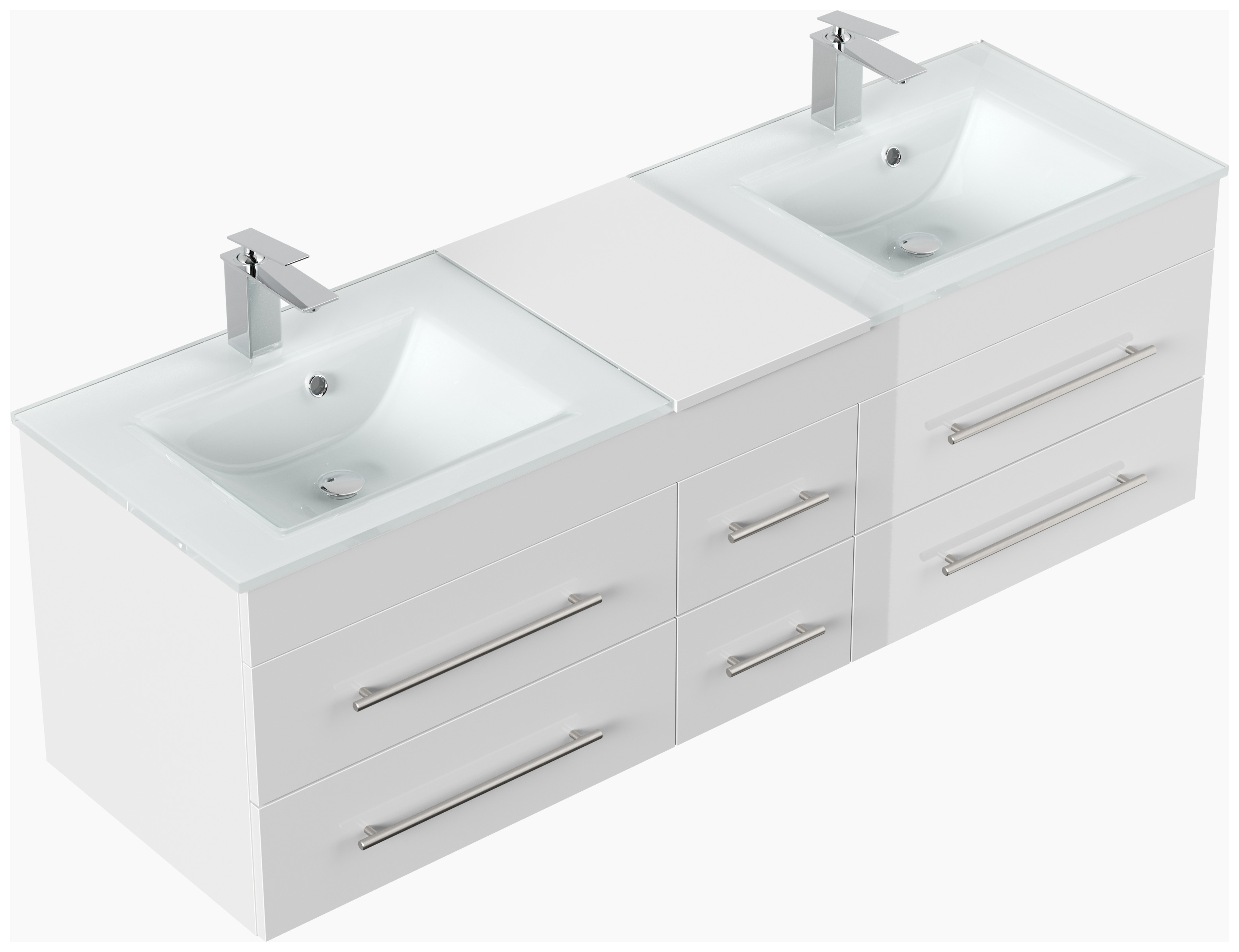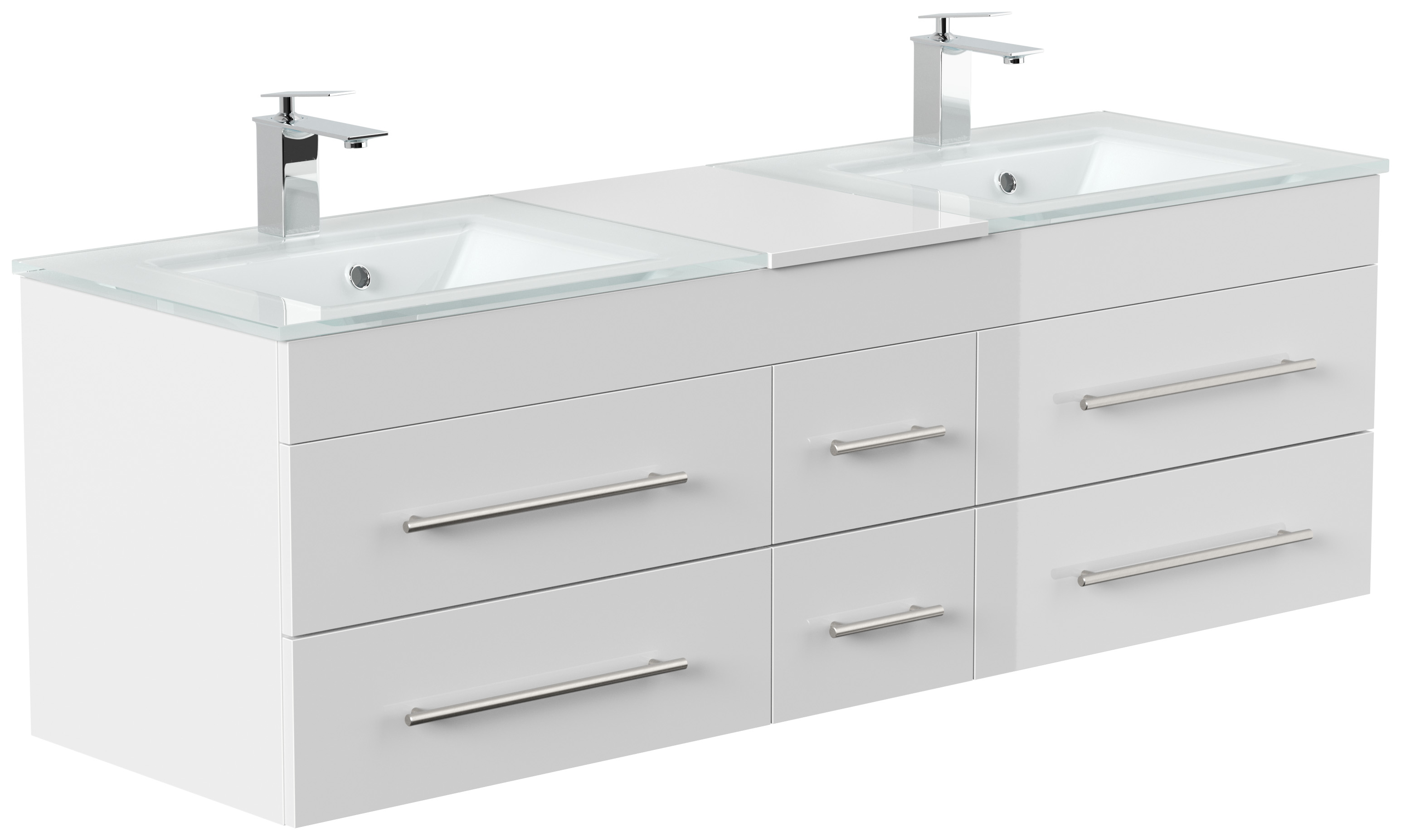 Badmöbel Vitro XL mit Doppel-Glasbecken SoftClose weiss hochglanz