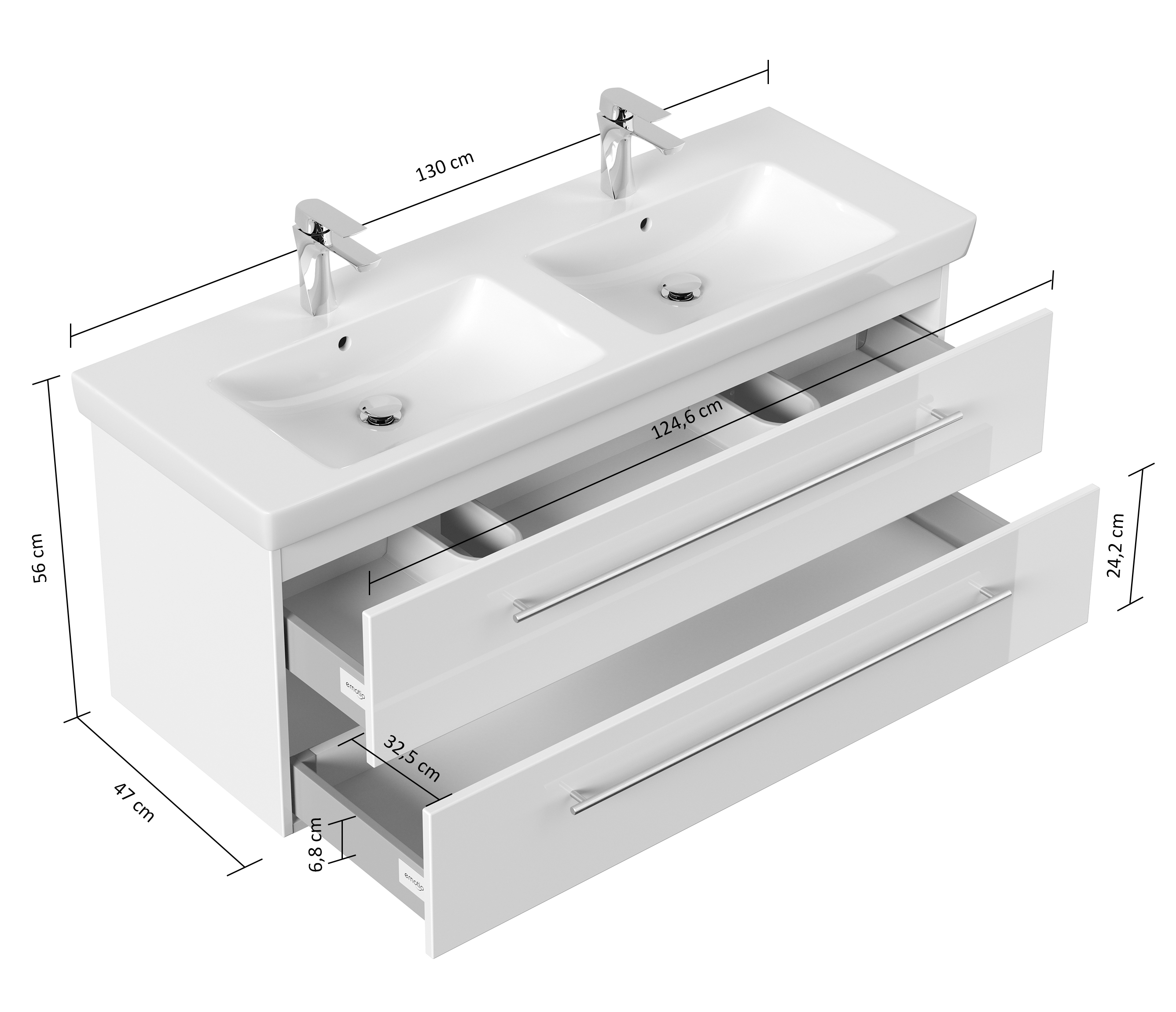 Doppelwaschtisch Keramik der Marke Villeroy & Boch mit Überlauf aus der Serie "Subway 2.0" (B/H/T) 130/6/47 cm.