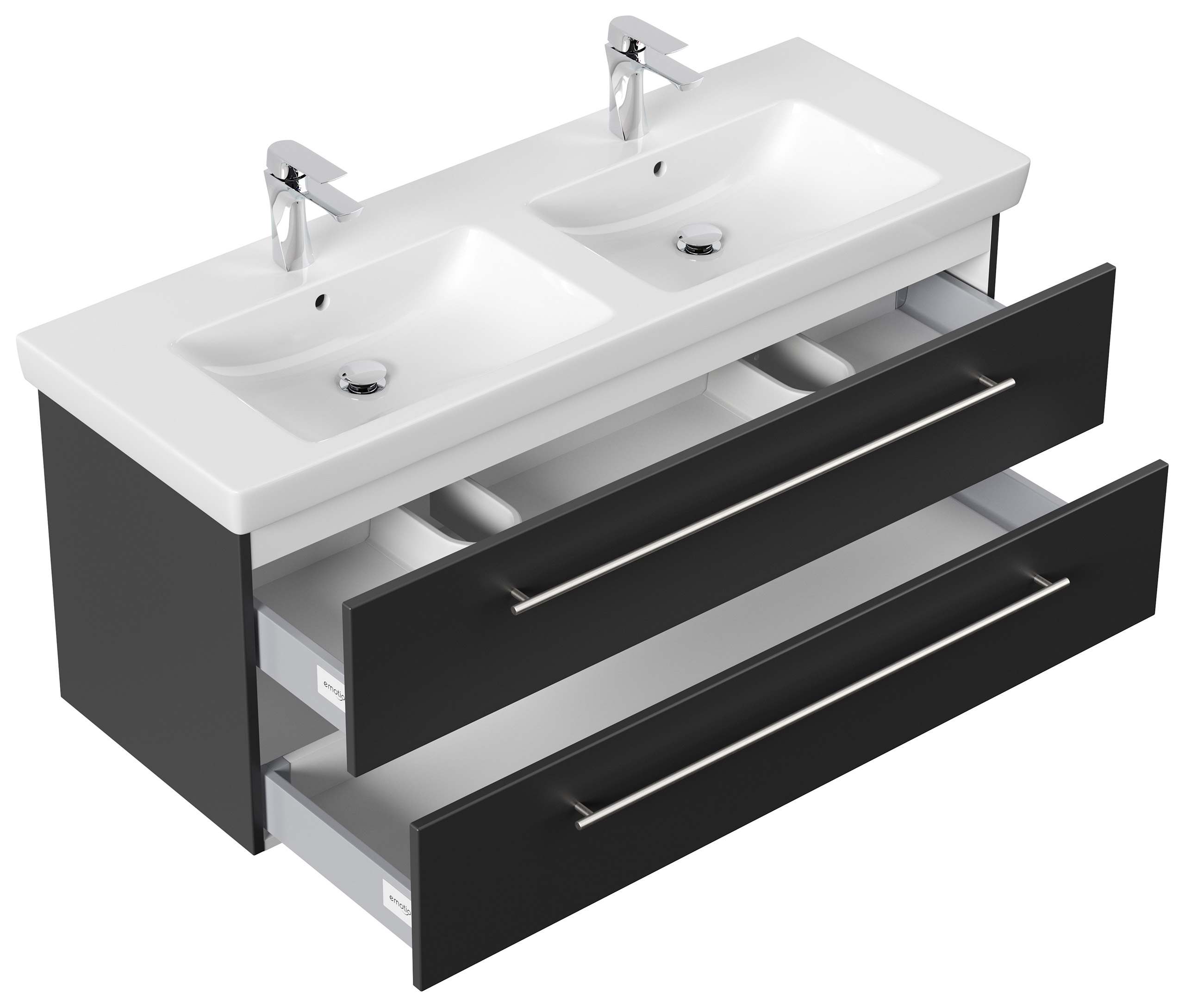 Badmöbel mit Villeroy & Boch Subway 2.0 Waschbecken 130 cm A SoftClose schwarz
