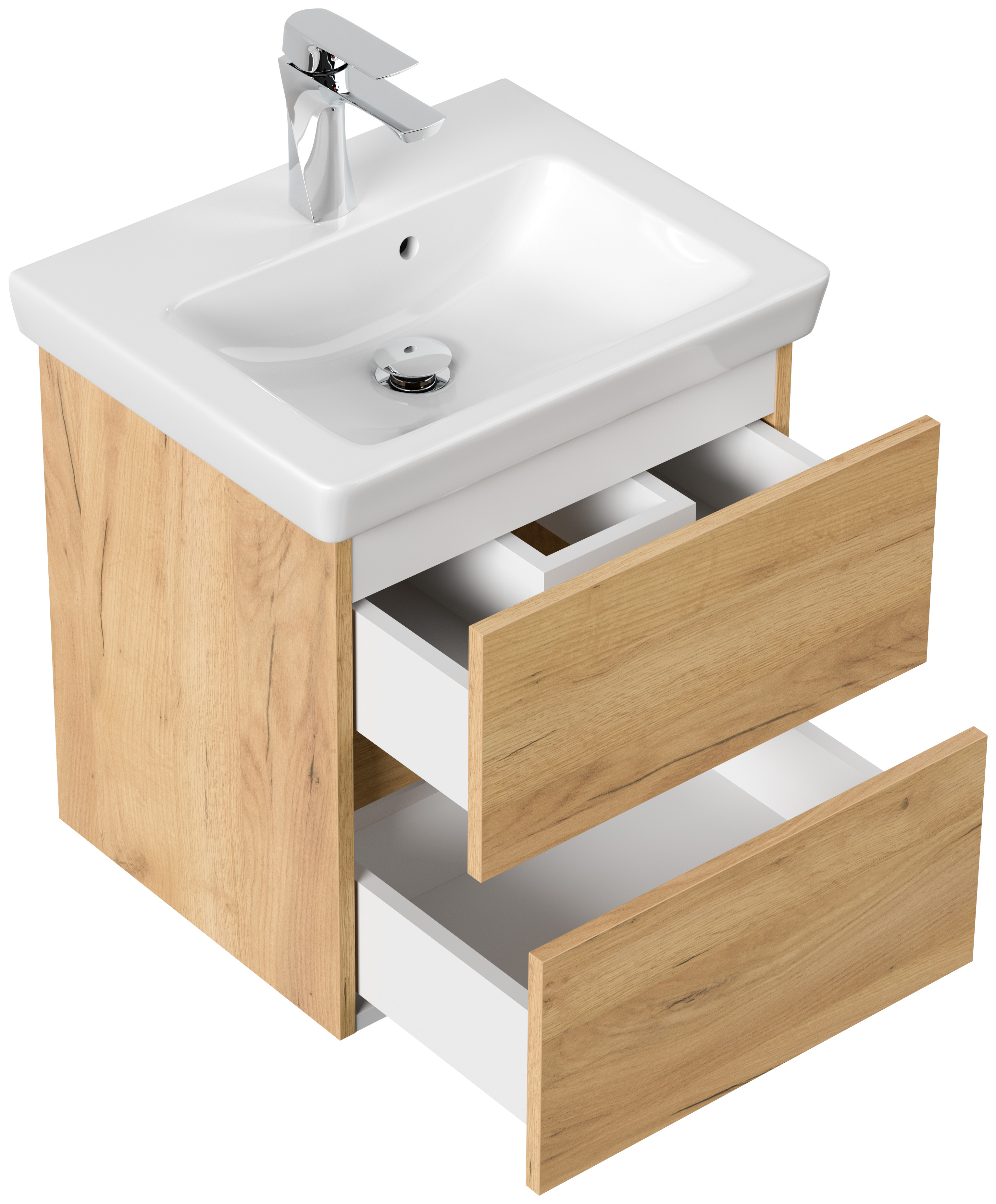 Badmöbel mit Villeroy & Boch Subway 2.0 Waschbecken 50 cm eiche gold