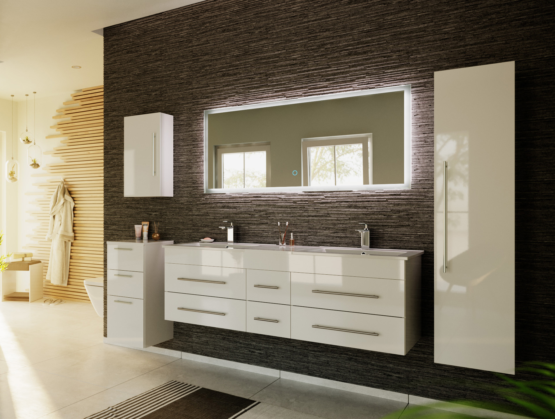 Badmöbelset Roma XL 5-teilig LED-Spiegel Seiten-, Hoch- & Midischrank weiss hgl