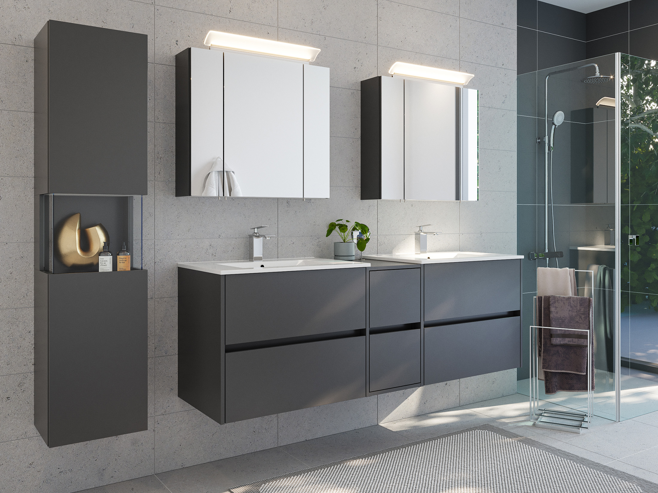 Badmöbelset Taifun 170cm 4tlg mit 2x Spiegelschrank & Seitenschrank grafit