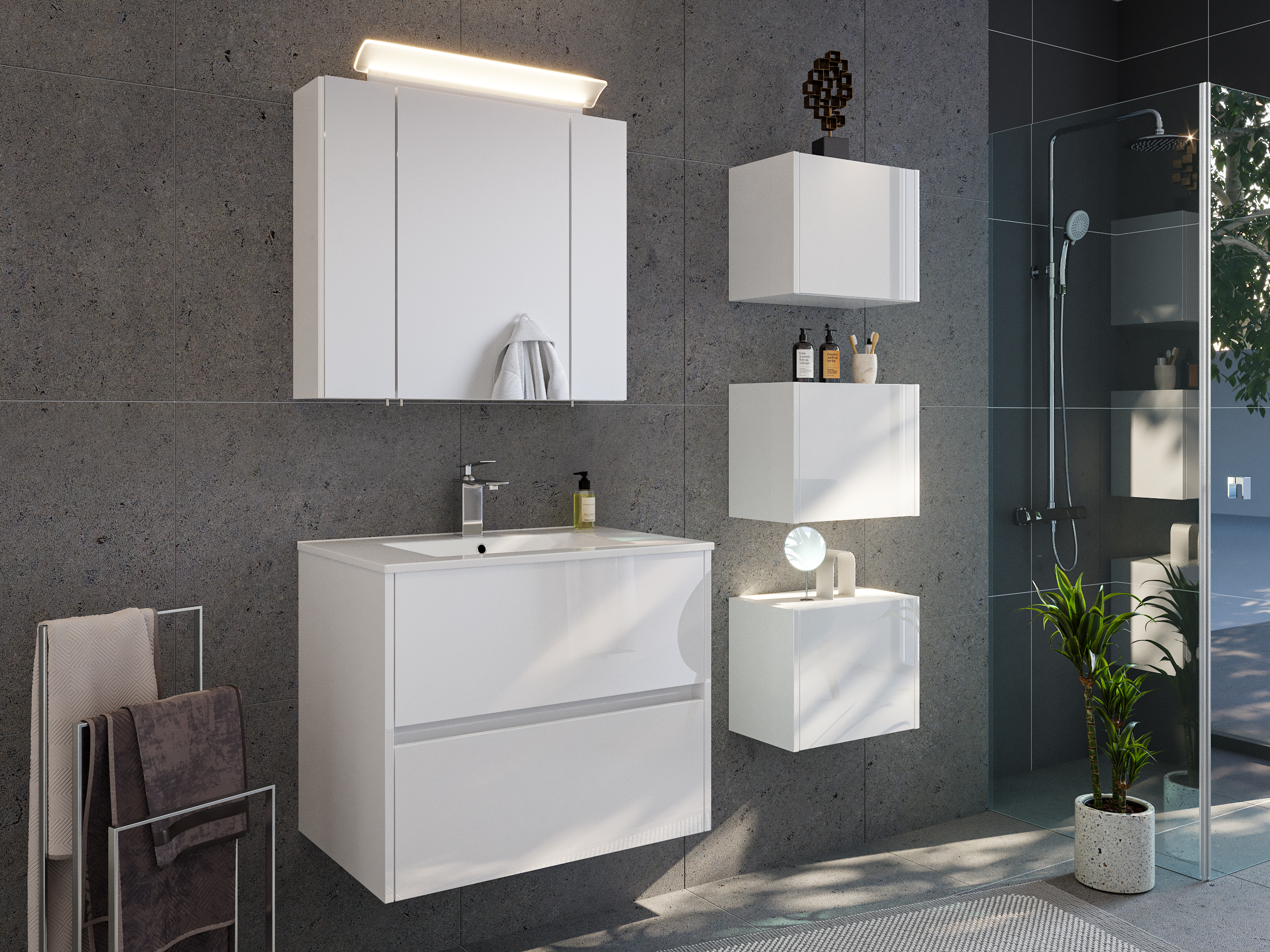 Badmöbelset Taifun 70cm 3tlg mit Spiegelschrank & 3er Boxen Set weiß Hgl