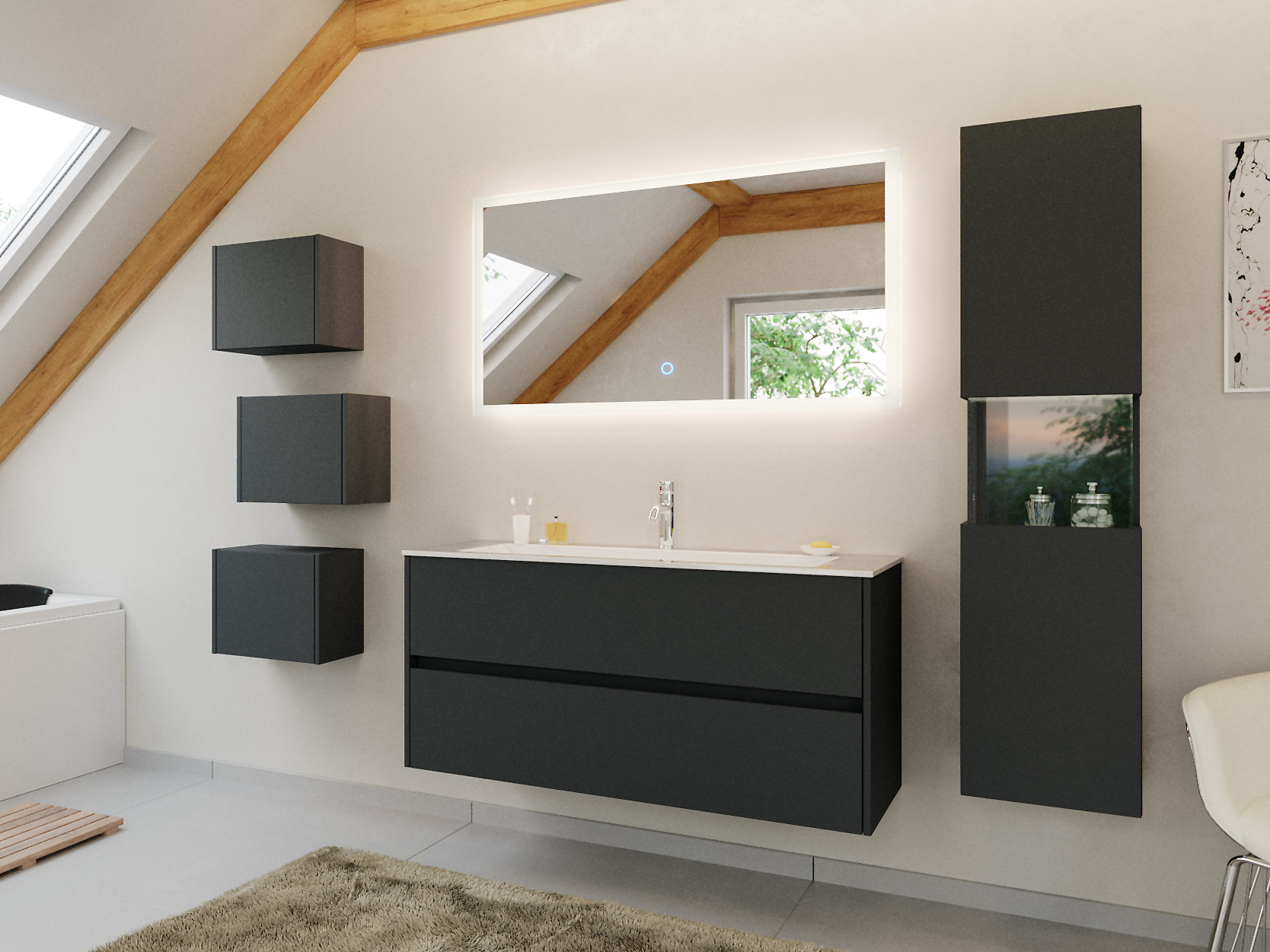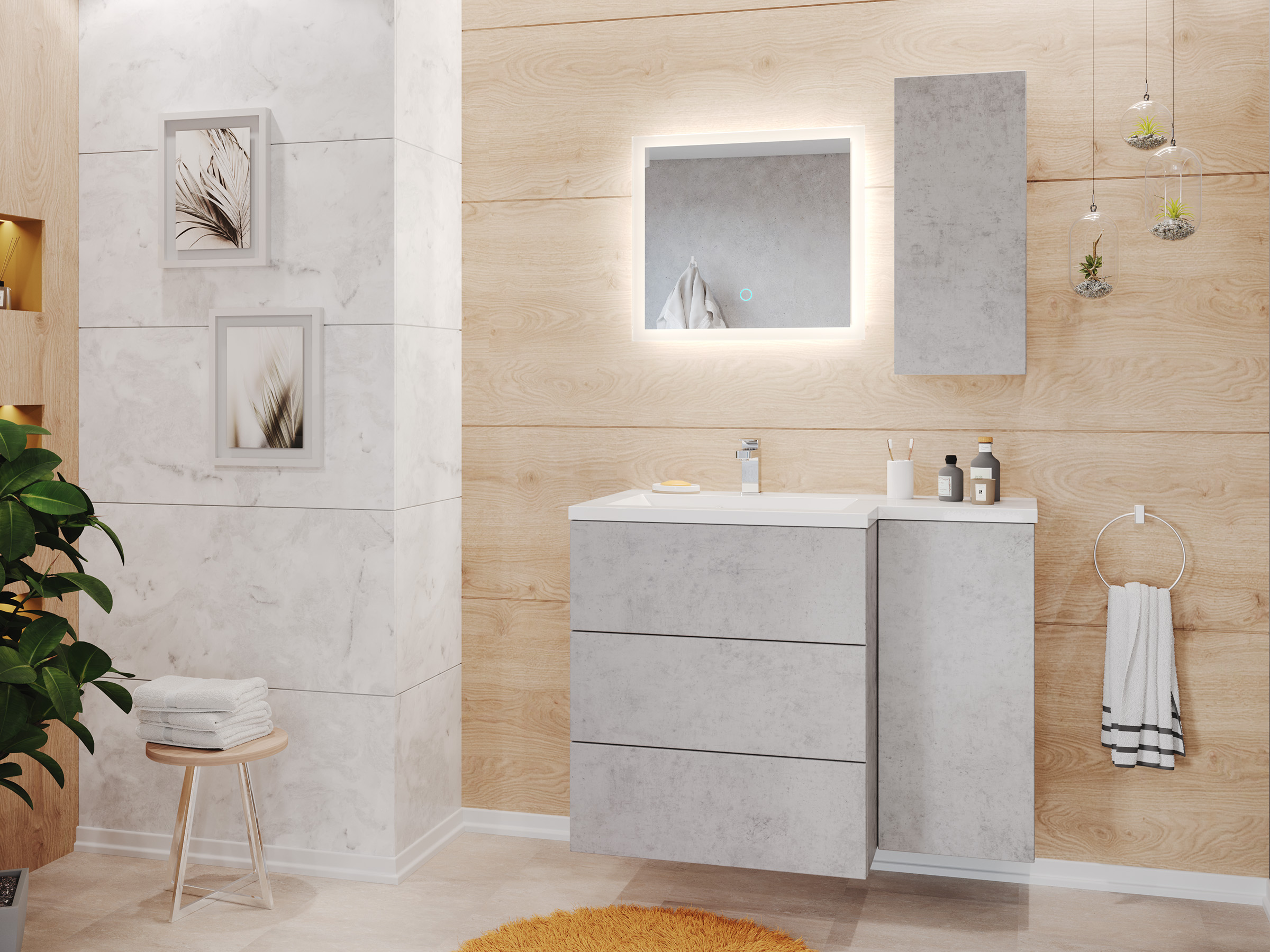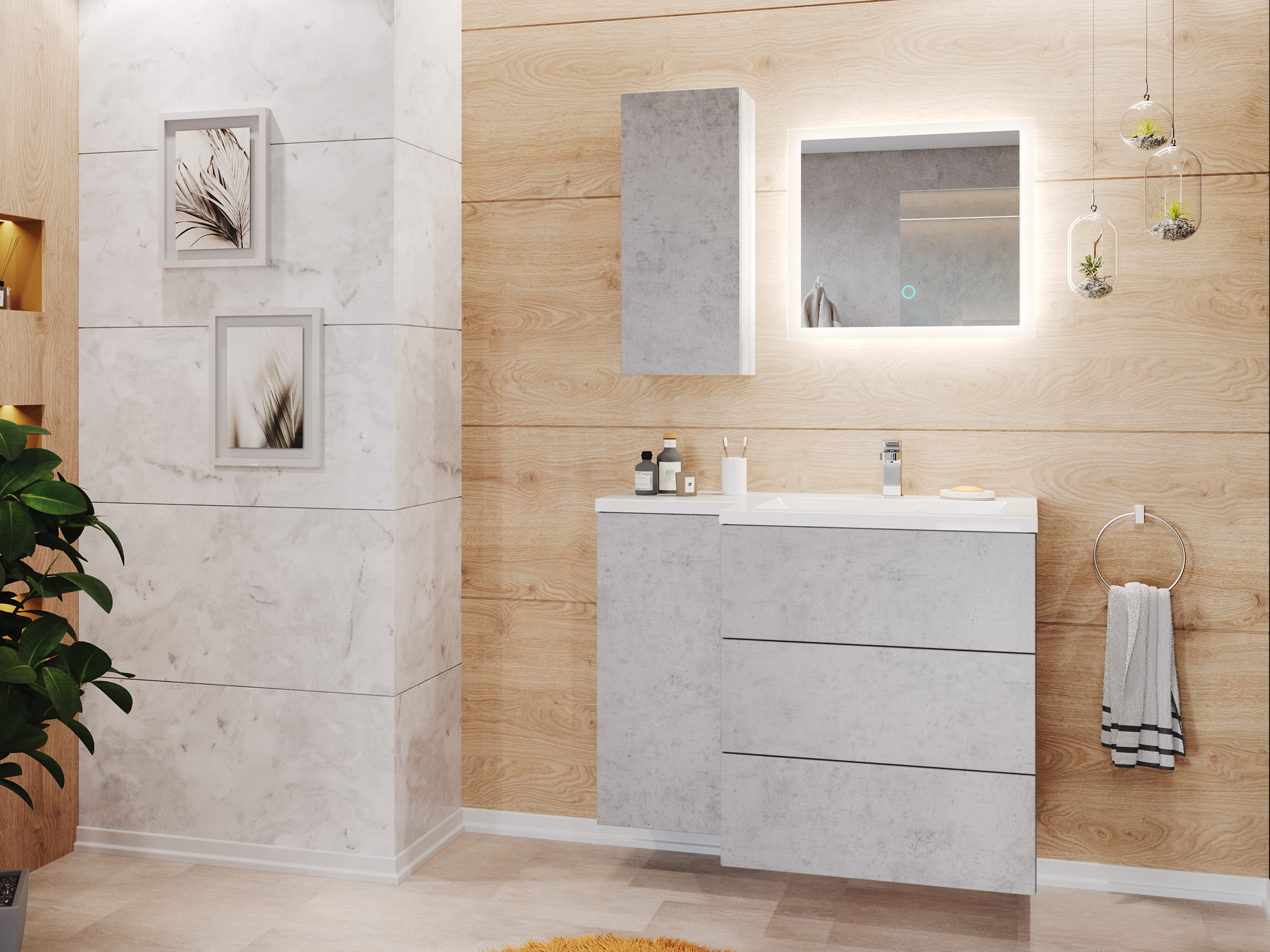 Badblock ELISA rechts 3er Set LED-Spiegel Hängeschrank beton