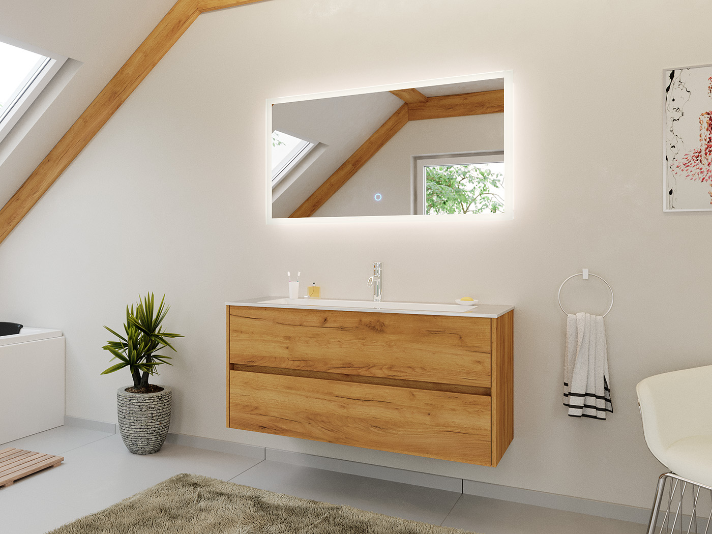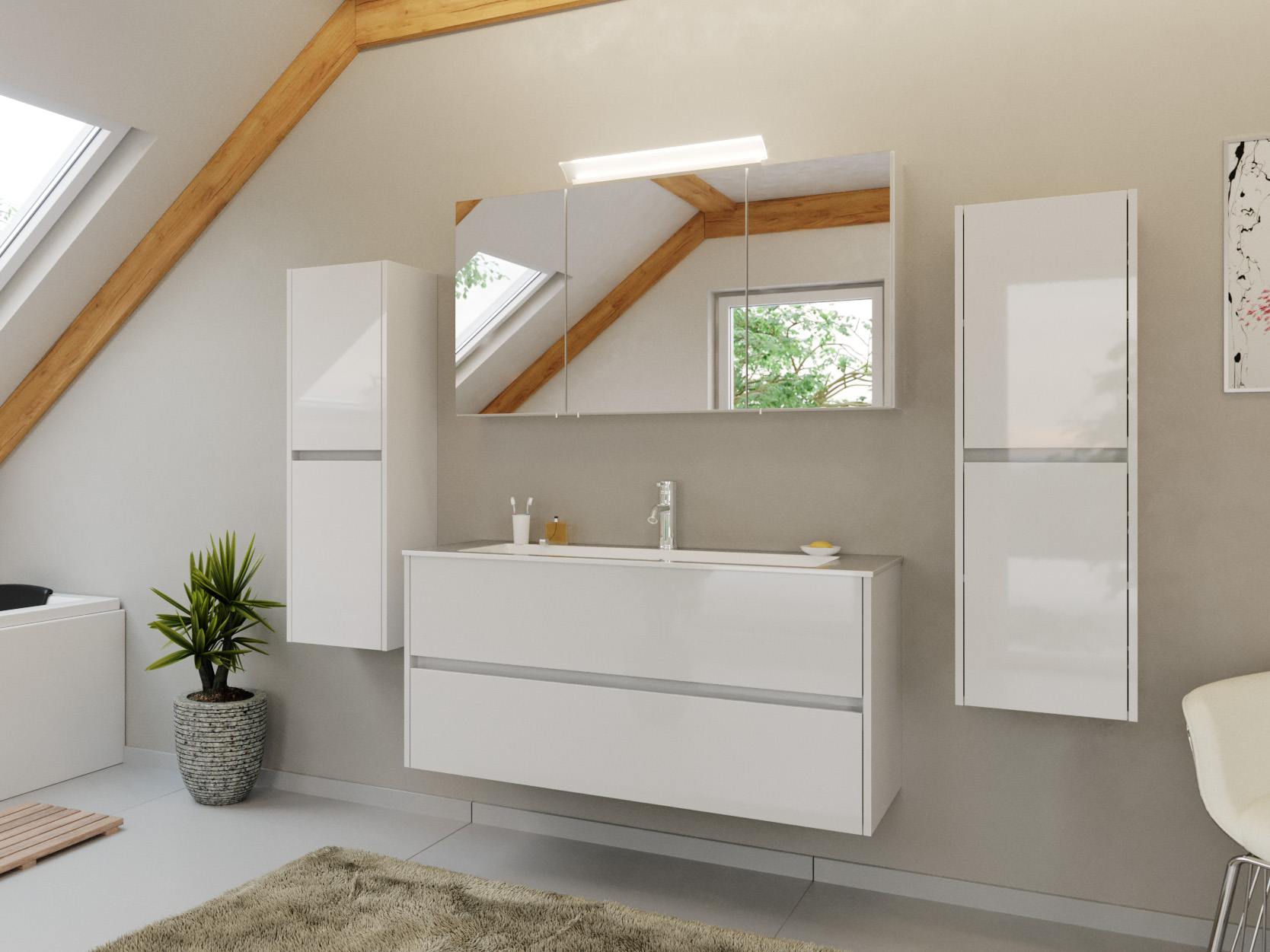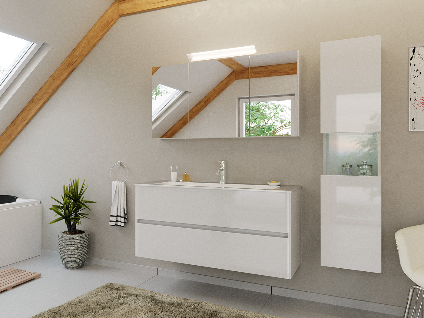 Badblock ELISA rechts 3er Set LED-Spiegel Hängeschrank beton