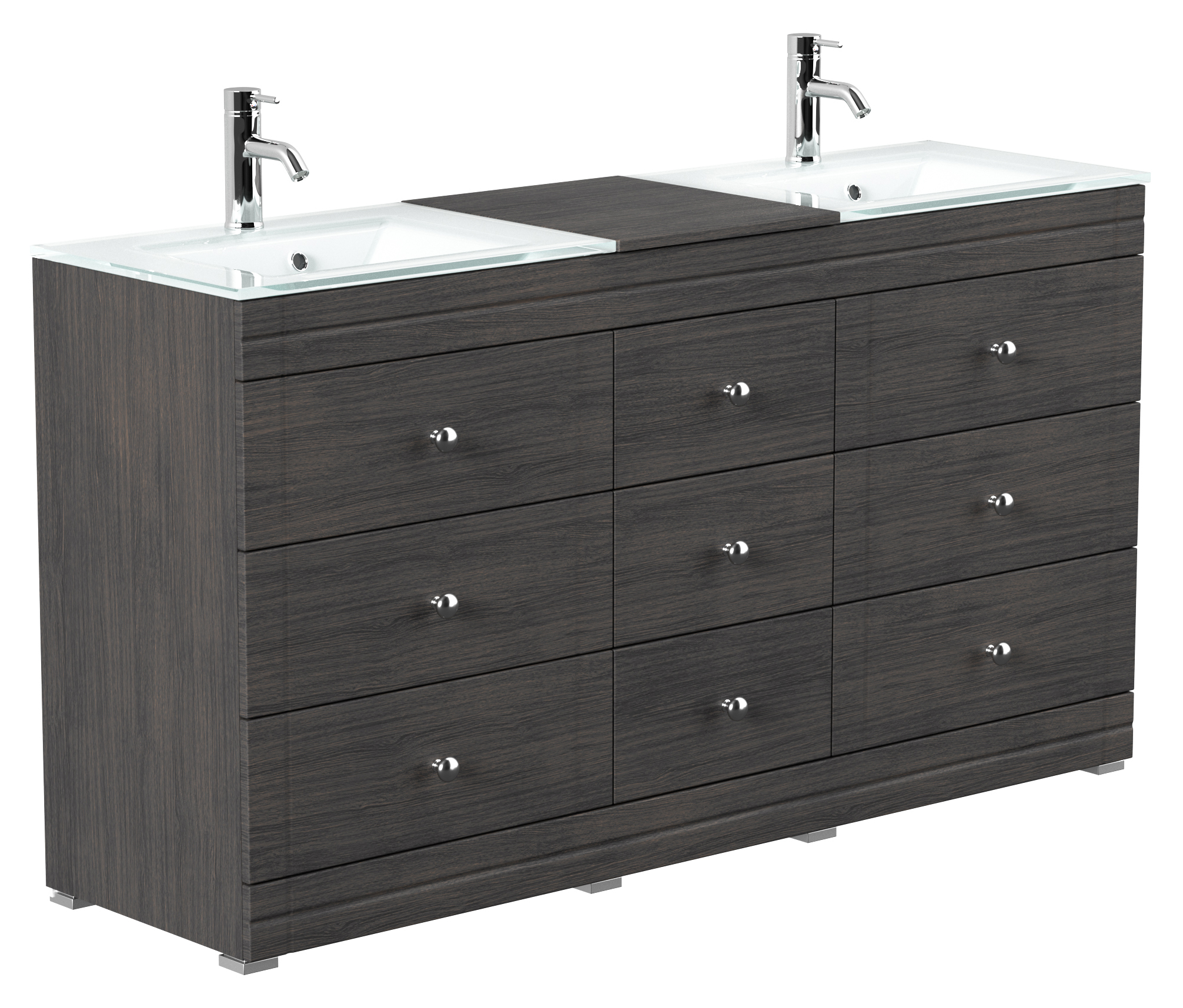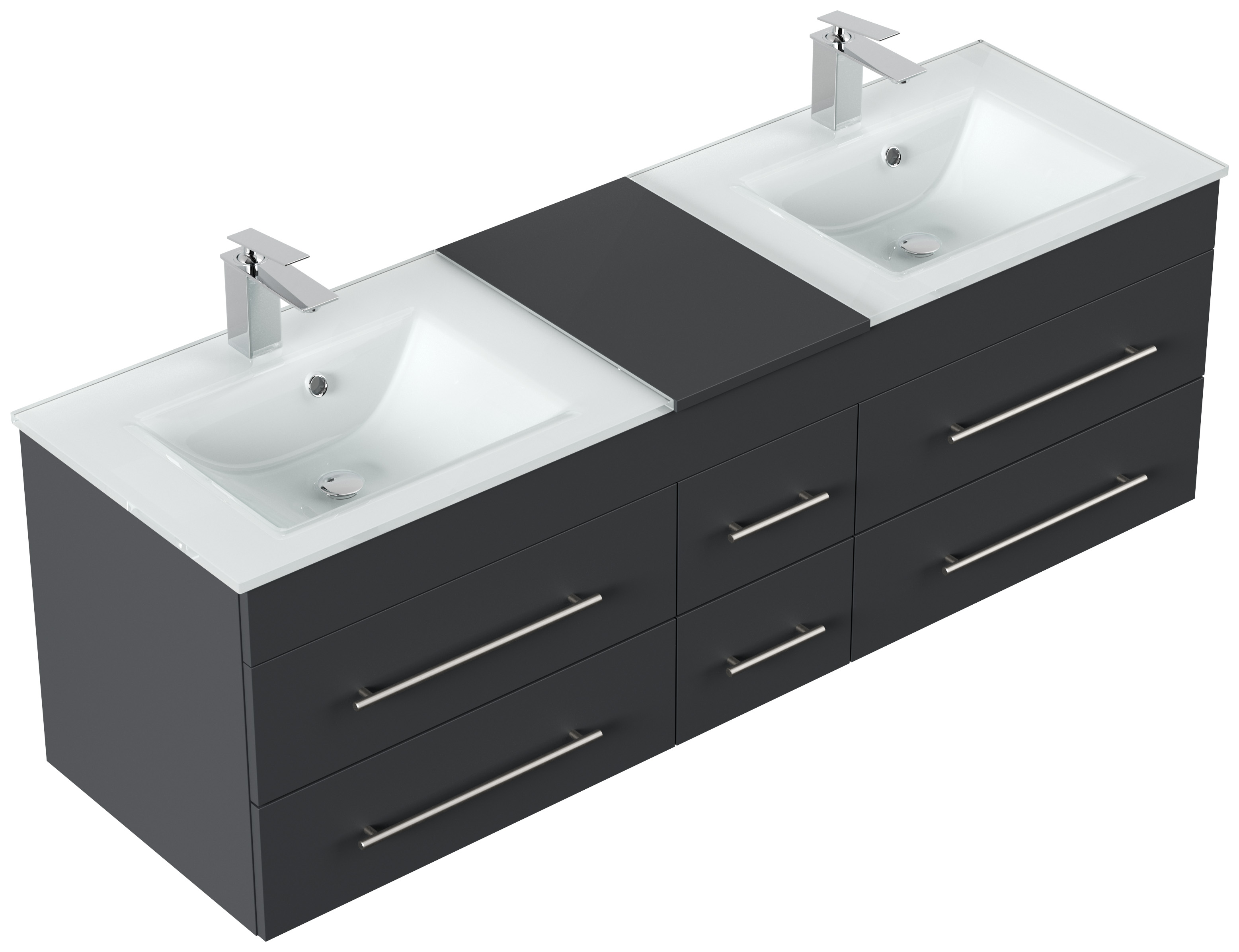 Badmöbel Vitro XL mit Doppel-Glasbecken SoftClose grafit