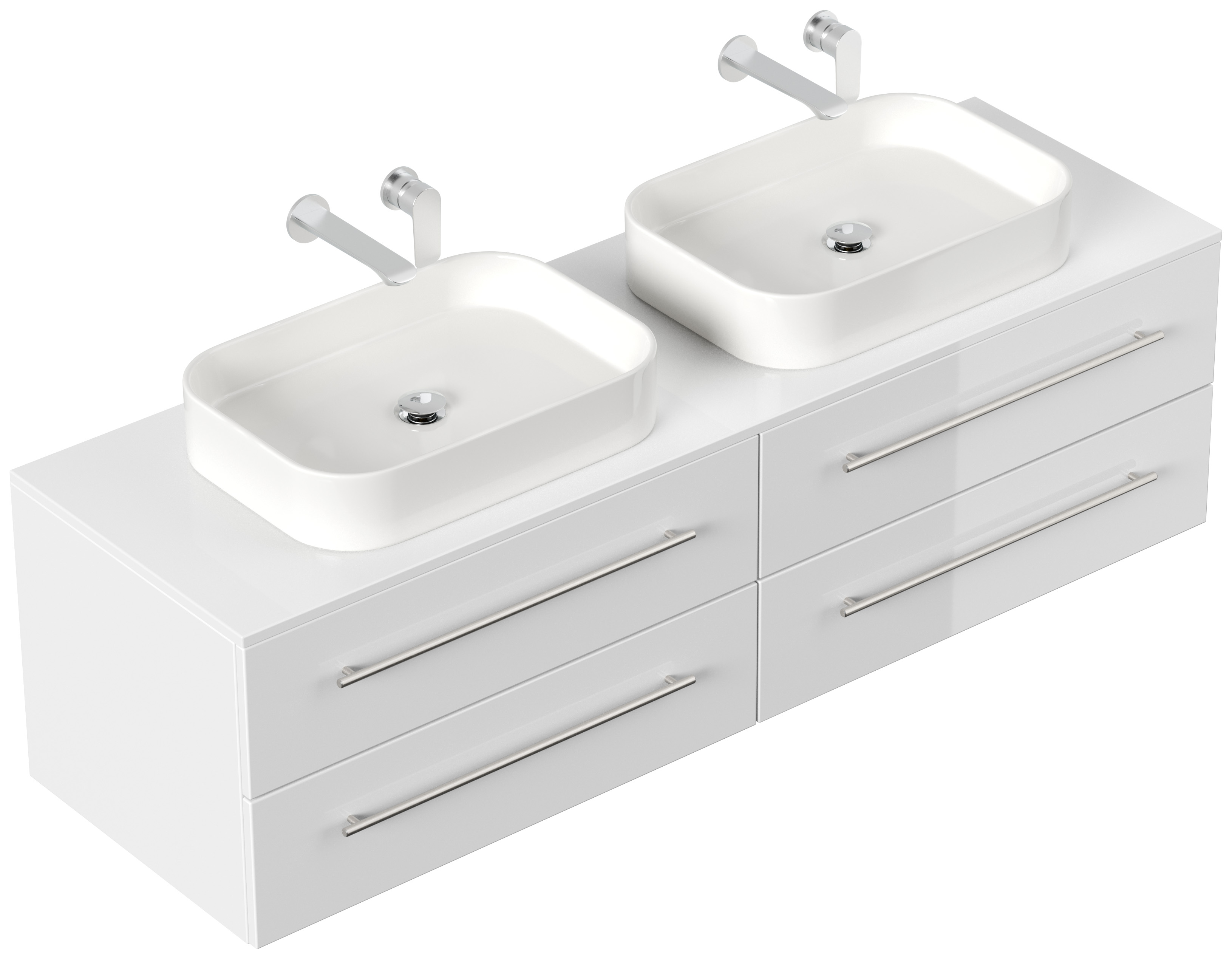 Badmöbel MORGAN A 160cm mit zwei Aufsatzwaschbecken weiß hochglanz