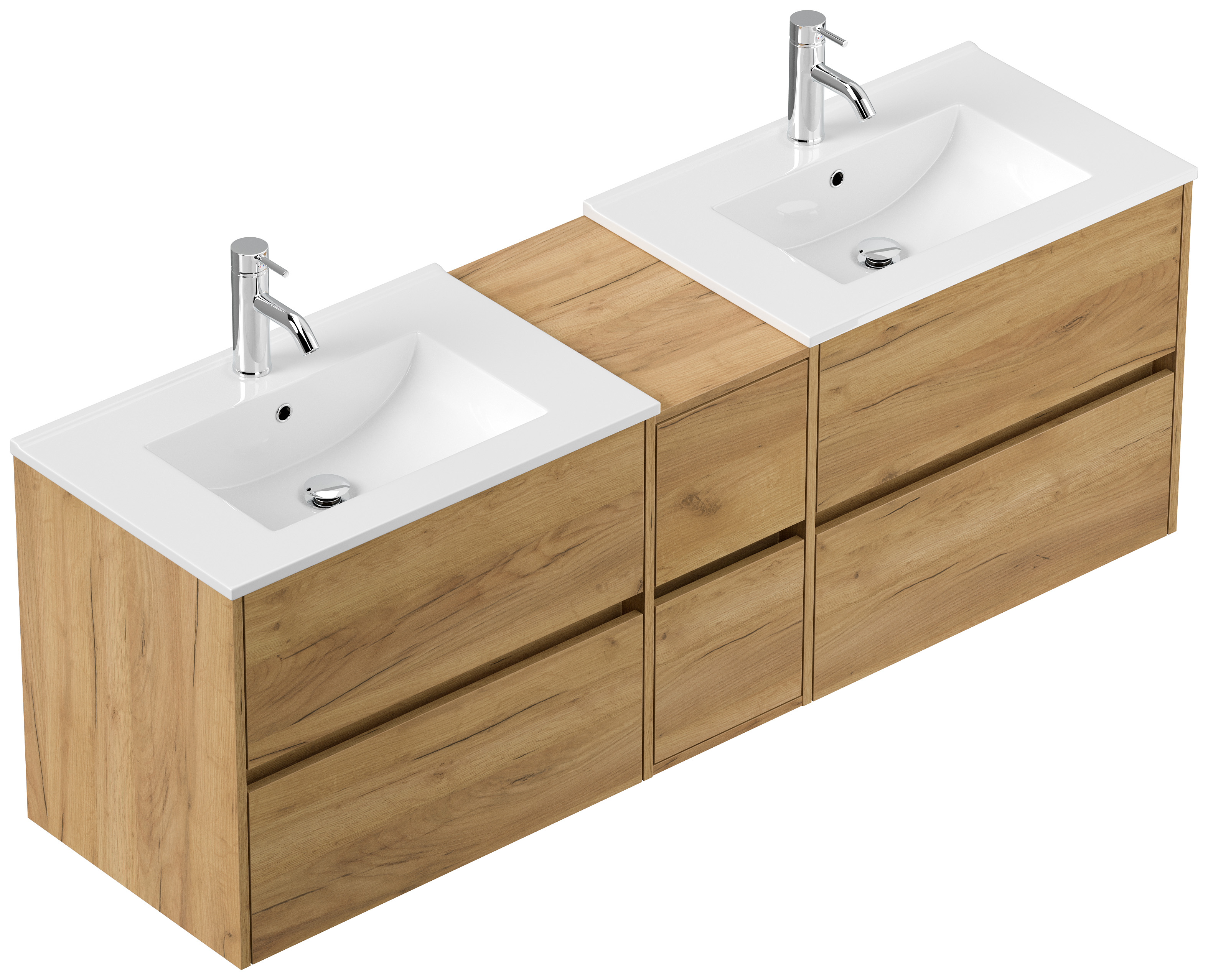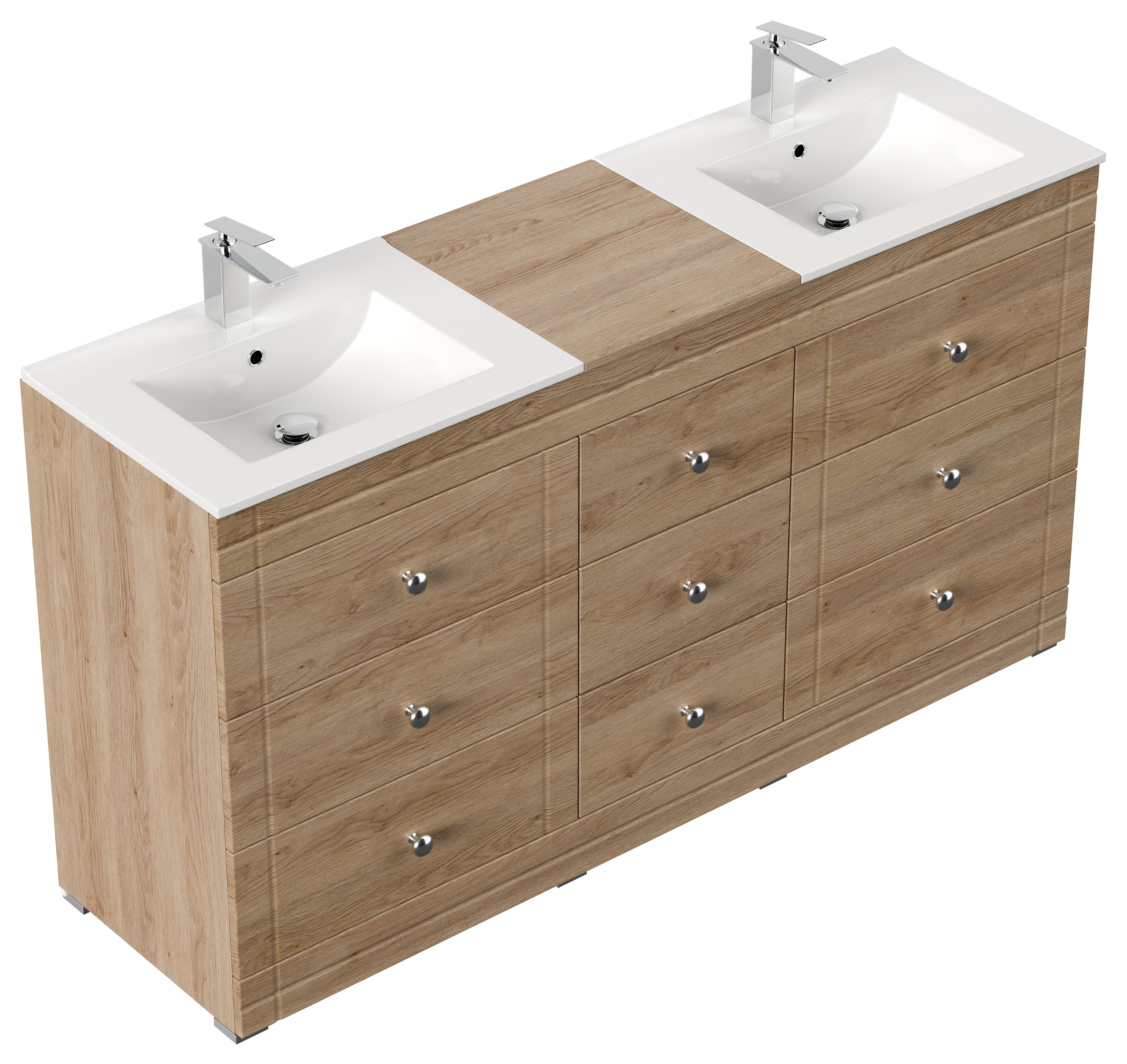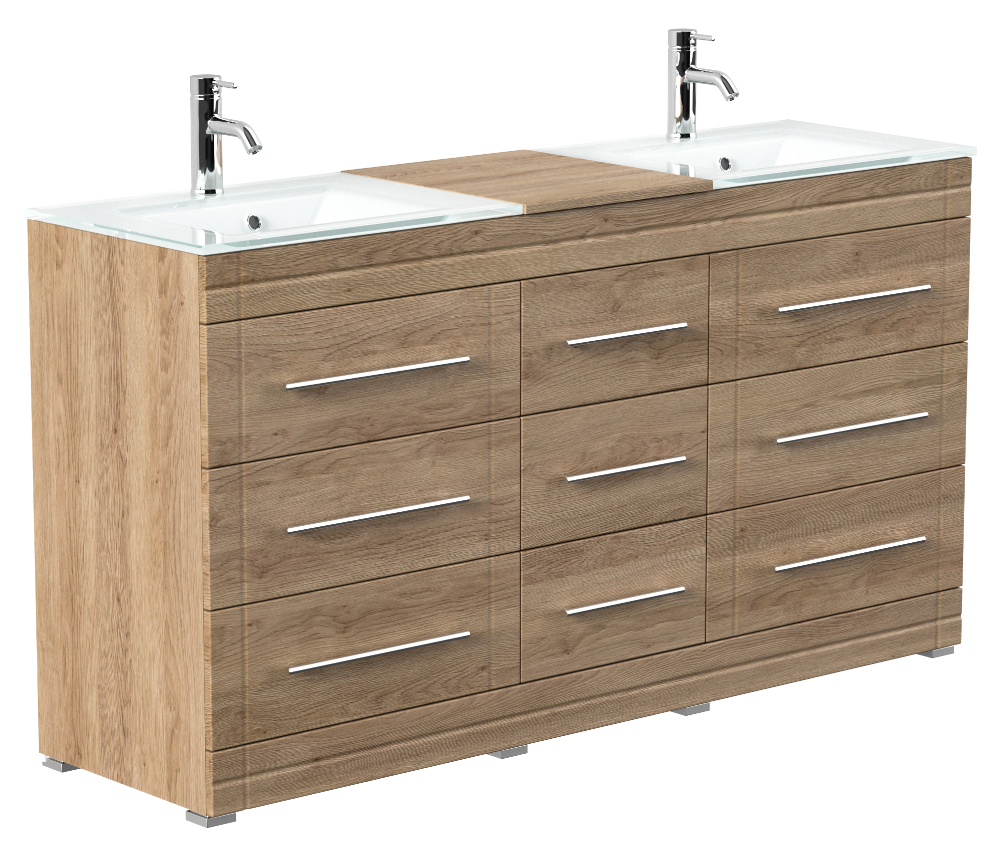 Stand Doppel Badmöbel Vitro Modern inkl. Glasbecken SoftClose eiche hell