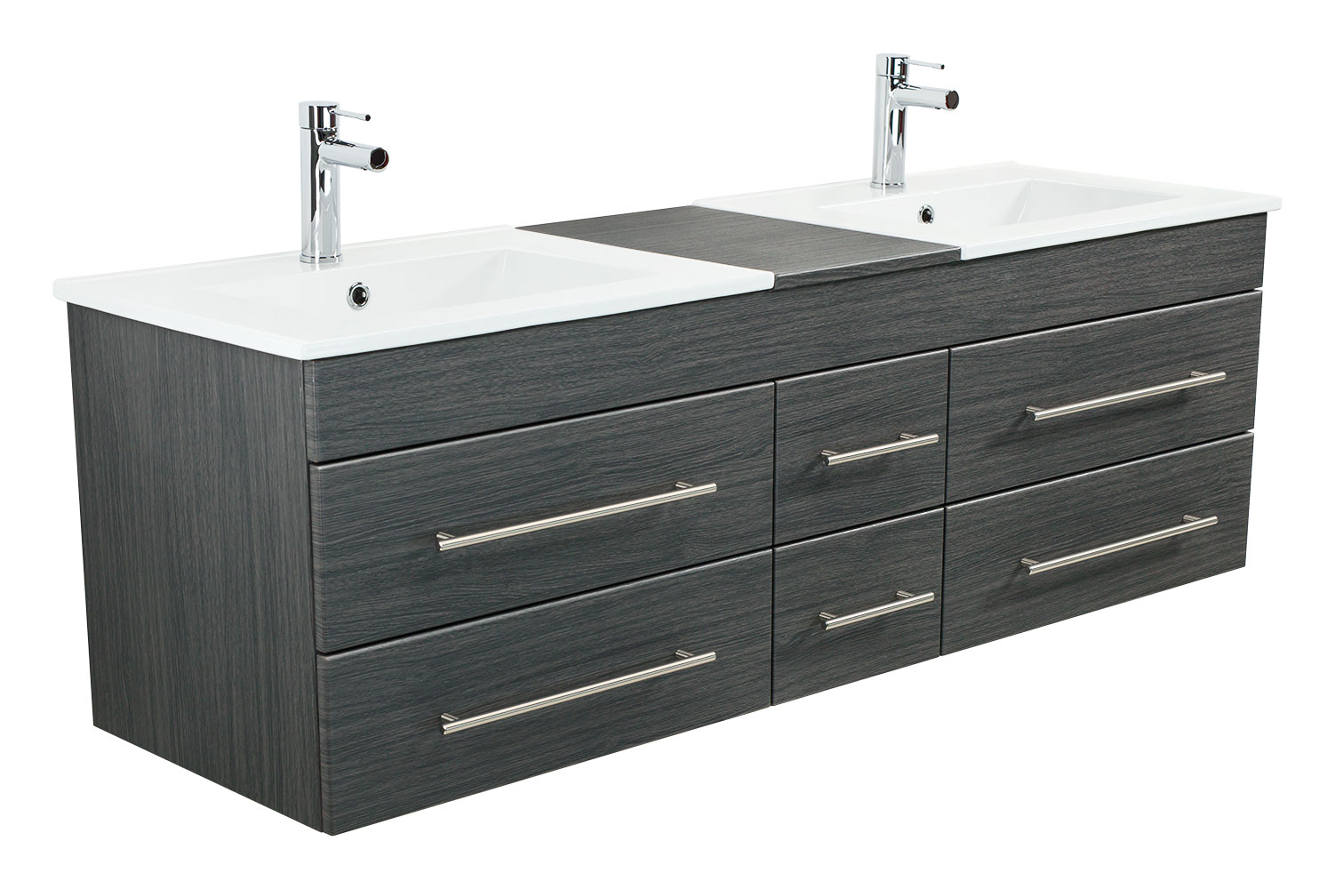 Badmöbel Milano XL 172cm Doppel- Waschtisch SoftClose anthrazit gemasert