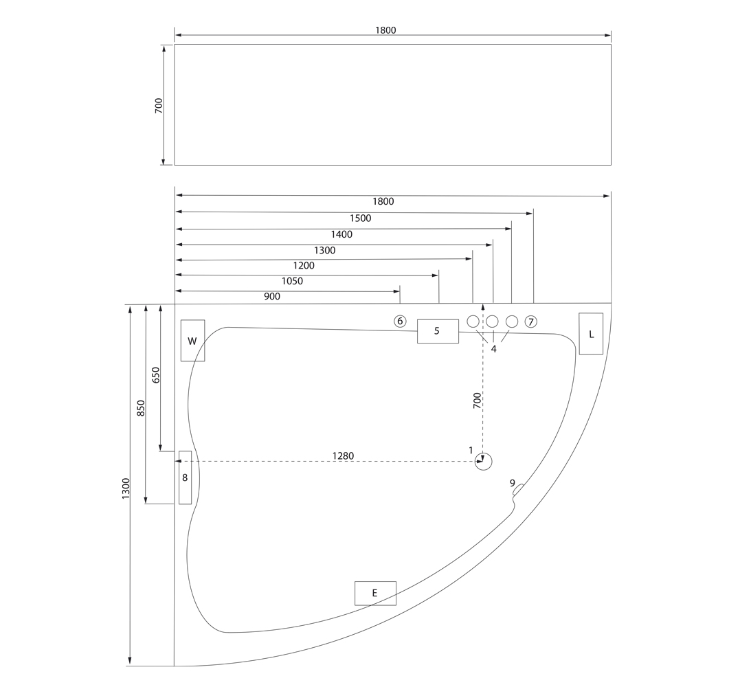 - Anschlussfertige Whirlpool-Wanne (Made in Germany) mit Rahmen auf höhenverstellbaren Füßen.