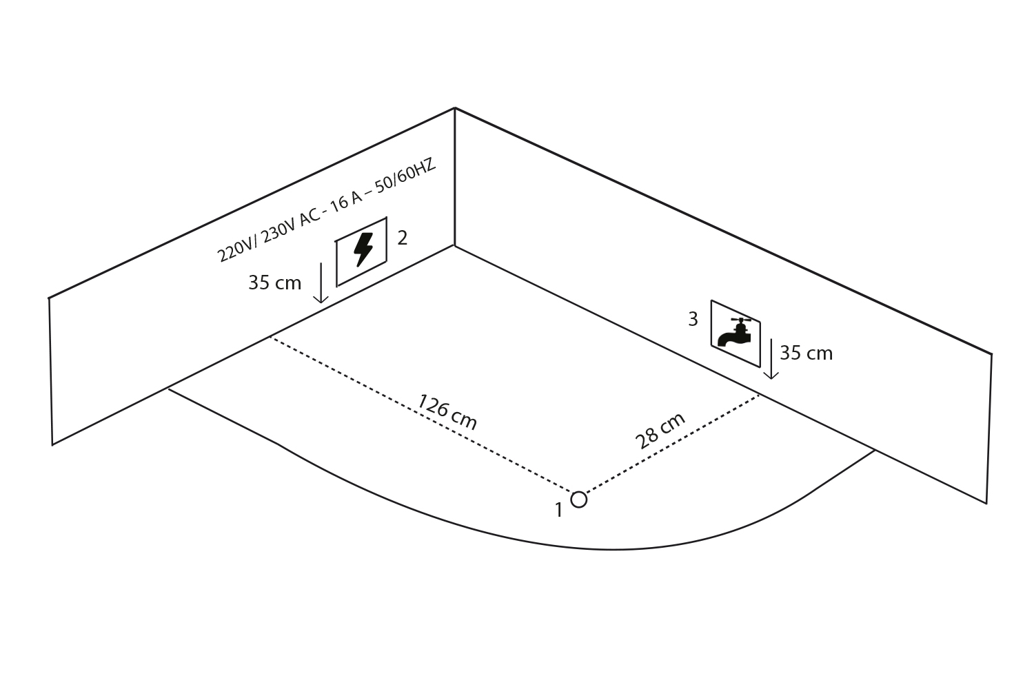 Variante MIT Armaturen: Für den Anschluss der ggf. im Lieferumfang enthaltenden Armaturen 1⁄2" werden zwei entsprechende Panzerschläuche 1⁄2" benötigt, jeweils für den Kaltwasseranschluss sowie für den Warmwasseranschluss. Bitte beachten Sie, die Kalt- und Warmwasserzuleitungen sind im Lieferumfang nicht enthalten.