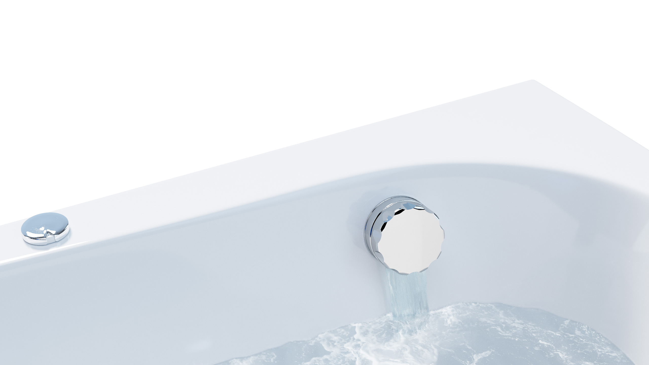 Zur Whirlpool-Variante "Befüllung über den Überlauf" gehört zur Standard-Ausstattung eine Überlauf-Komponente mit zweierlei Funktionen. Zum einen behält er die normale Sicherheitsfunktion eines Überlaufs und führt Wasser ab, um ein etwaiges Überlaufen des Wassers aus der Wanne zu verhindern. Zum anderen erhält der Überlauf die zusätzliche Funktion, dass hierüber die Befüllung der Wanne erfolgt.