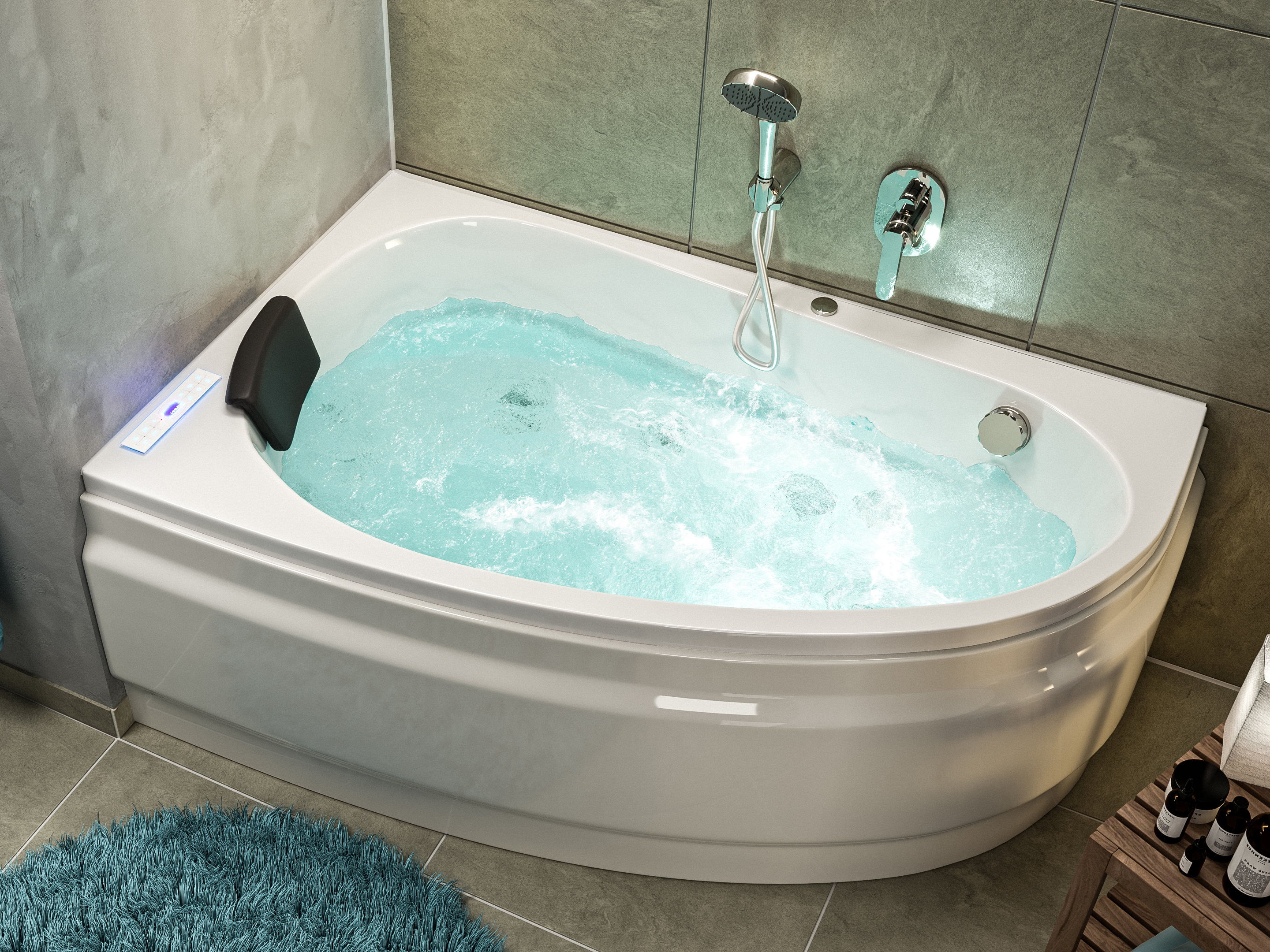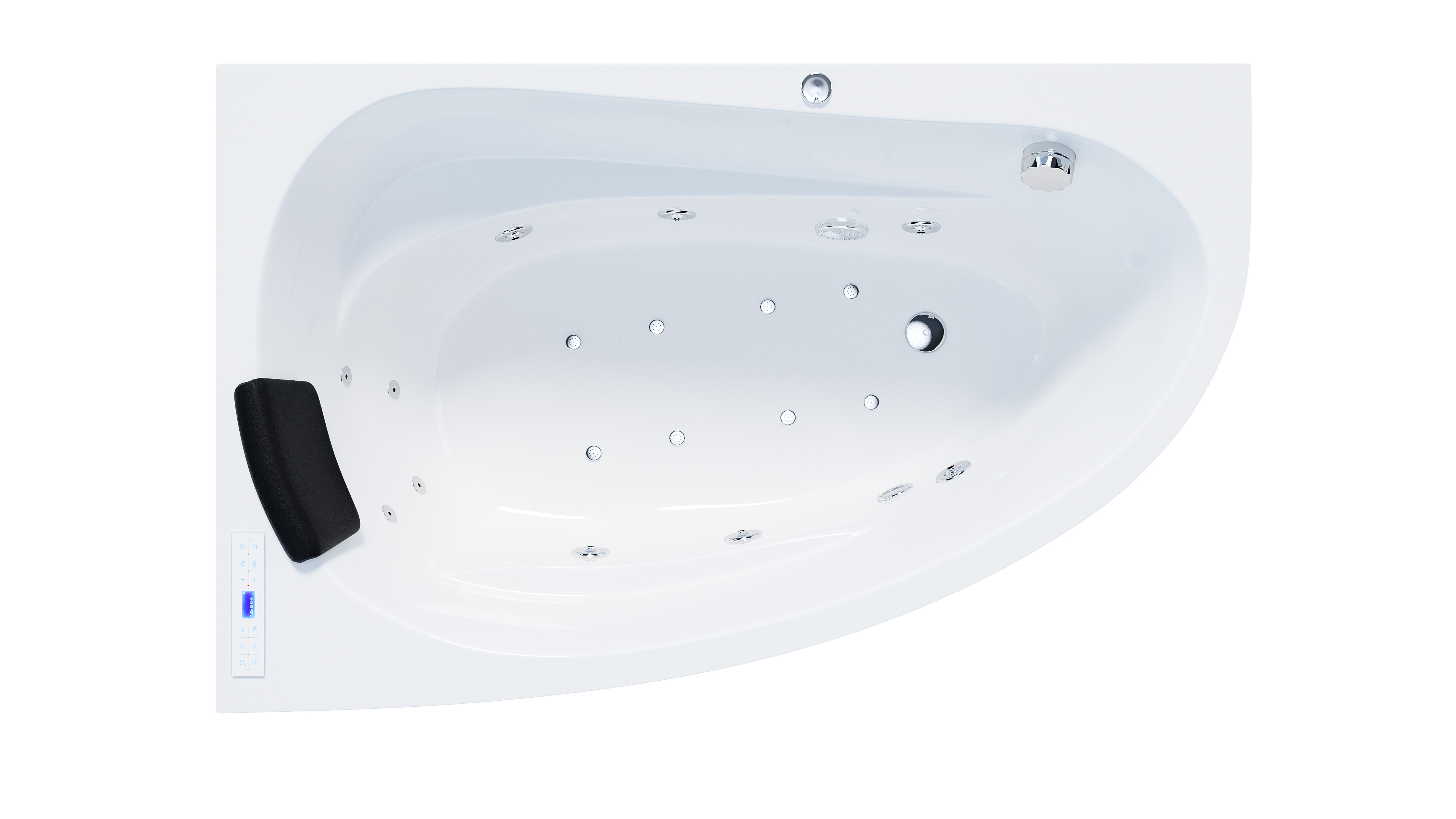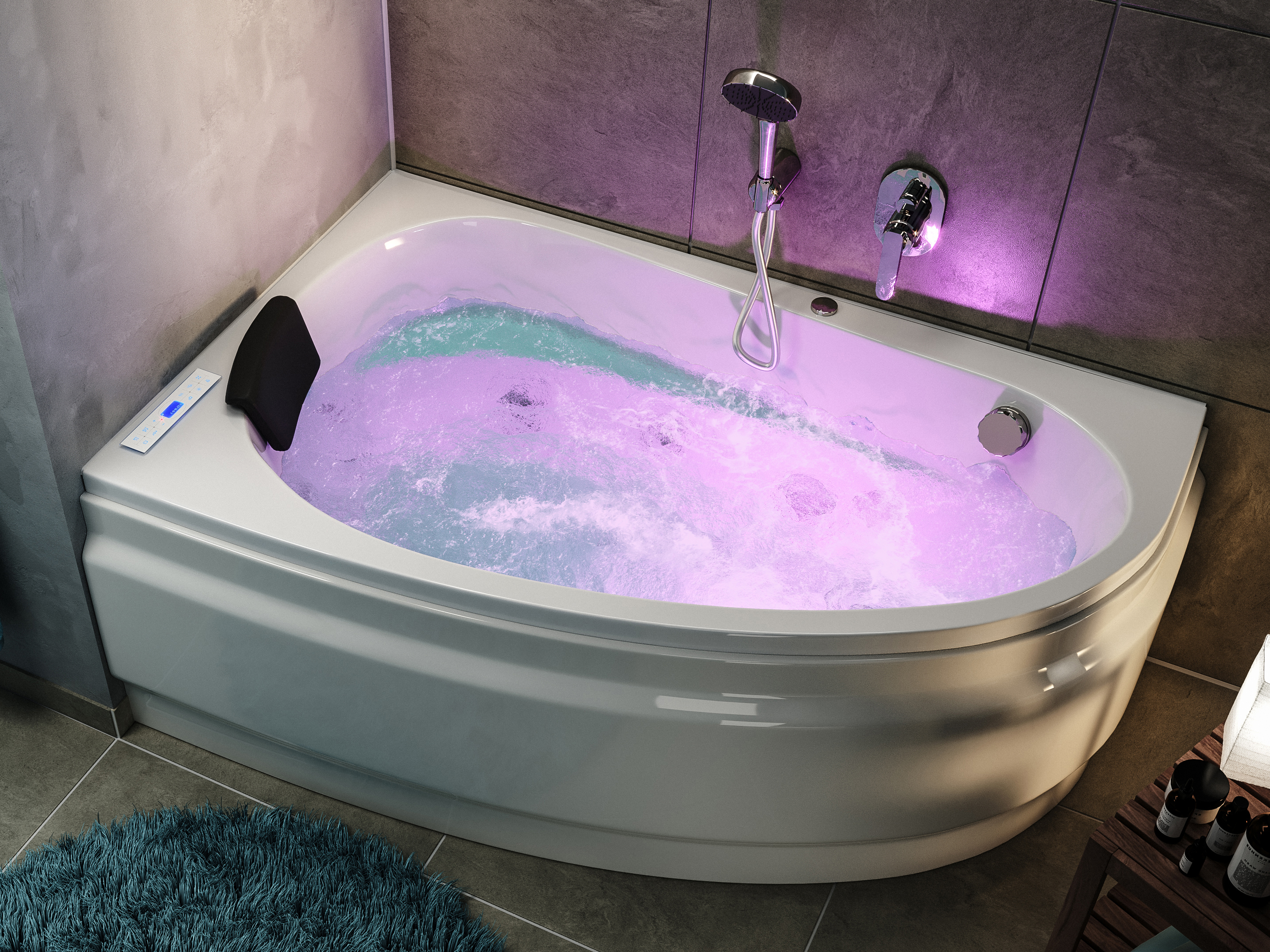 Vorteile: Dezente Strahler seitlich. Automatischer Farbwechsel mit gleichmäßiger Wasserbeleuchtung. Intensive Farben leuchten unter Wasser. Entspanntes Baden mit Chromotherapie.Massagefunktion: Düsen-Ausstattung