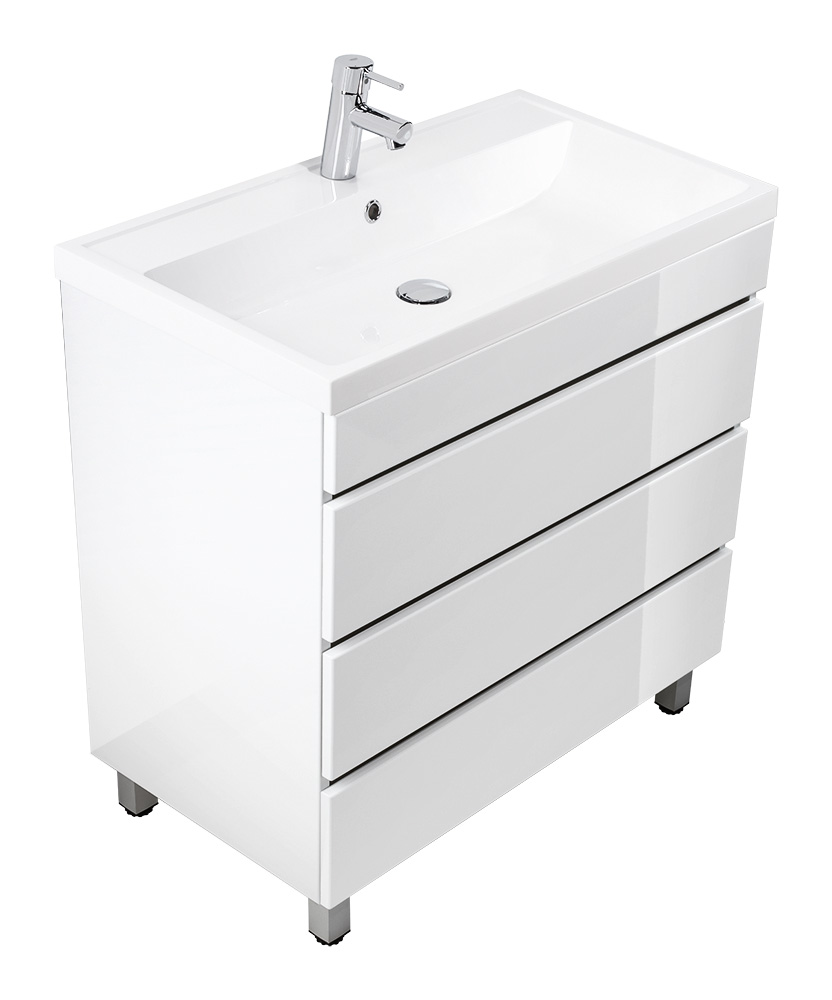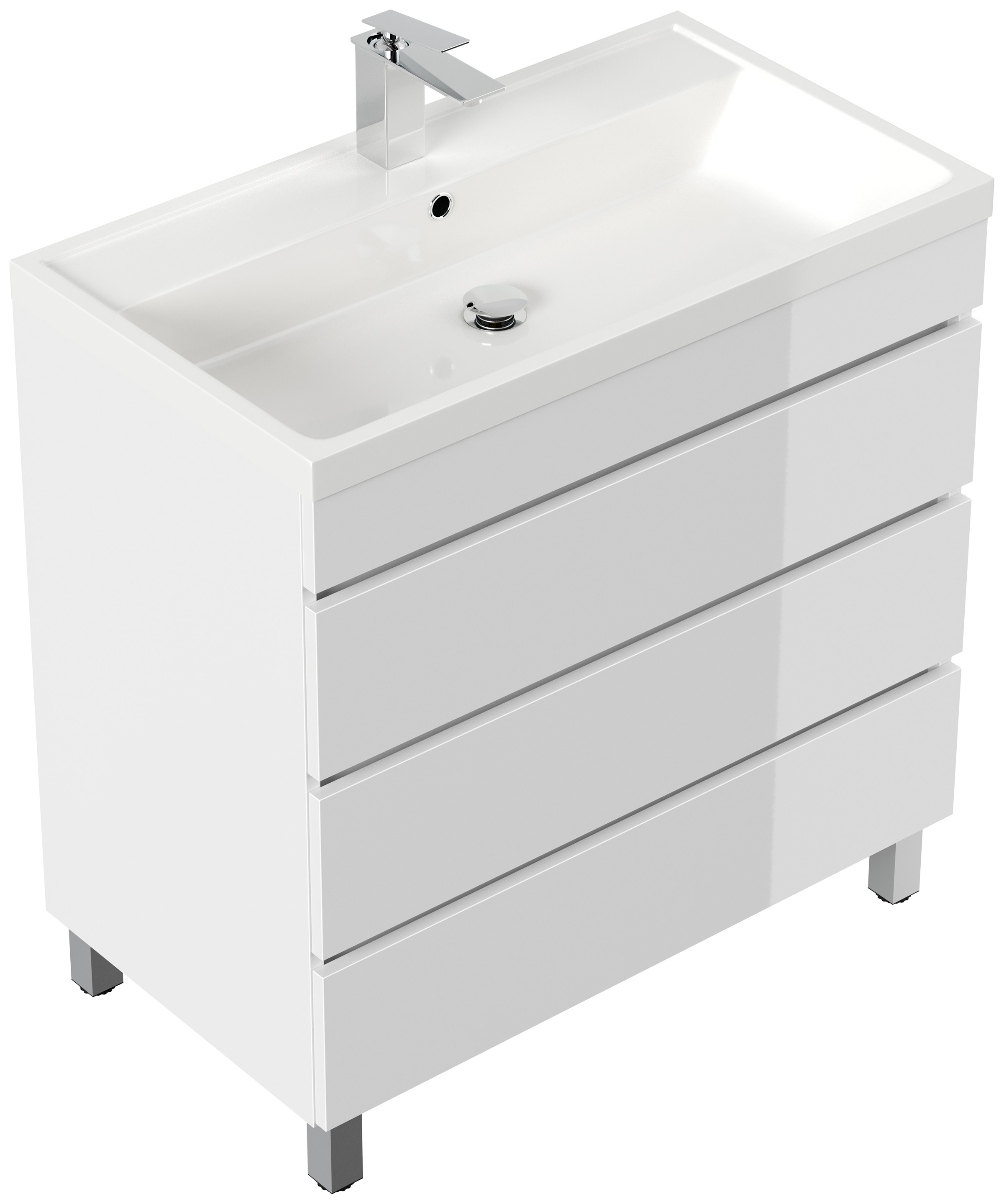 Stand Badmöbel Via 80 SoftClose weiss hochglanz mit drei grifflosen Schubladen
