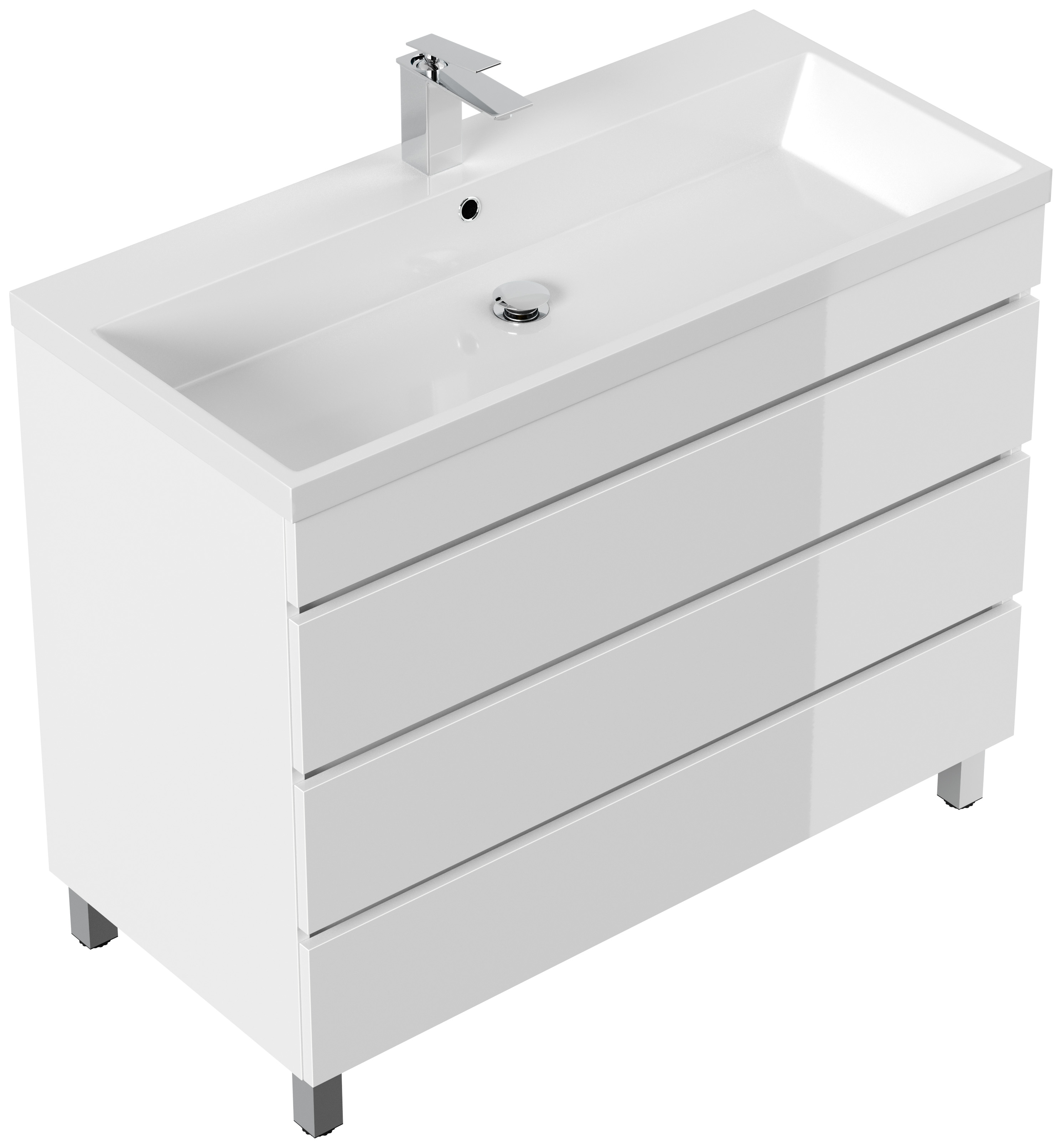 Stand Badmöbel Via 100 SoftClose weiss hochglanz mit drei grifflosen Schubladen