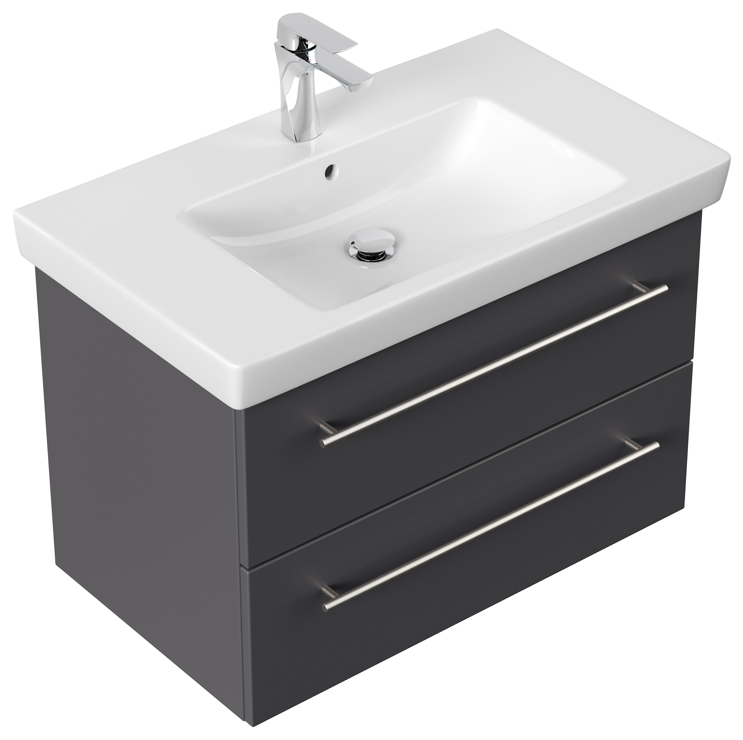 Badmöbel mit Villeroy & Boch Subway 2.0 Waschbecken 80 cm SoftClose anthrazit