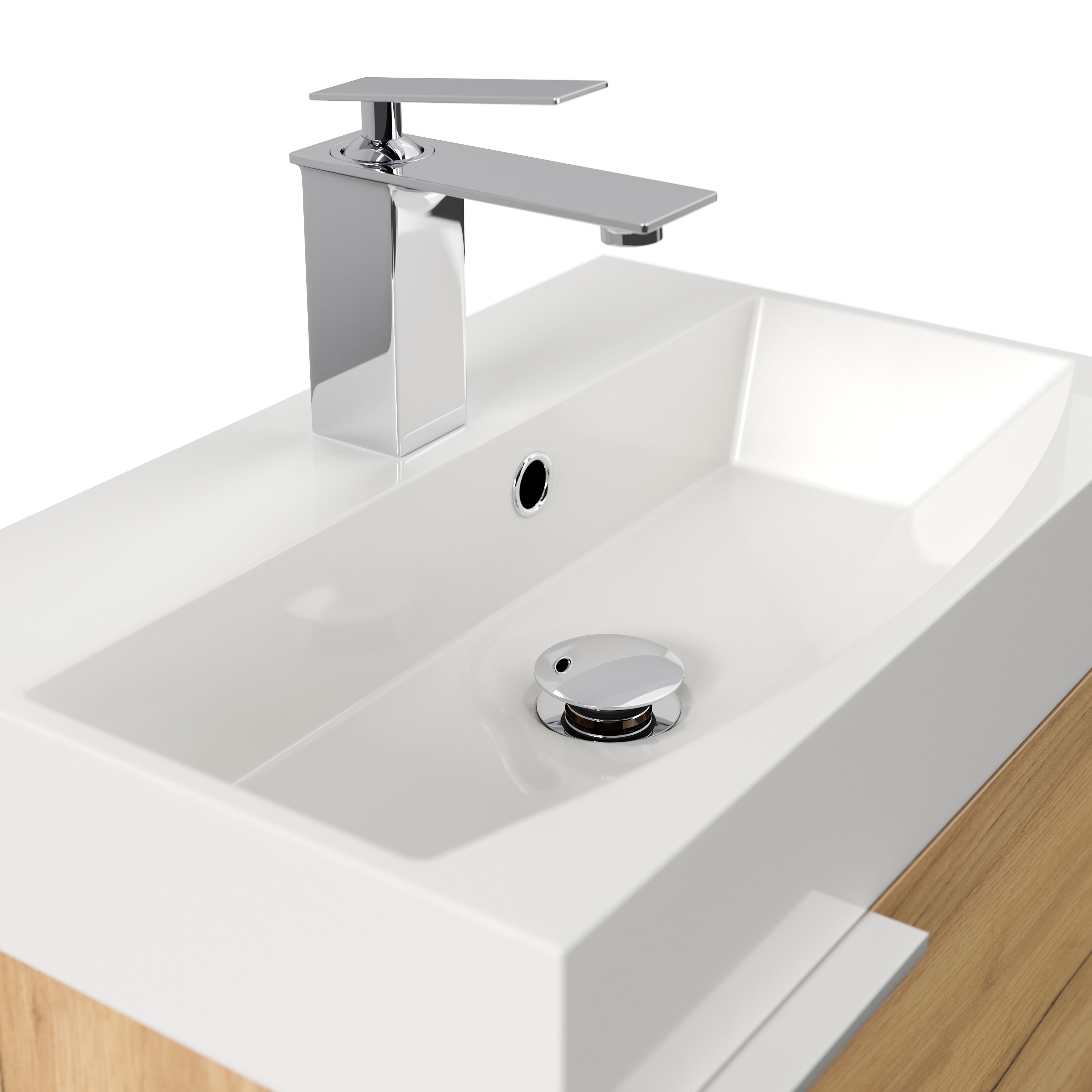 Hochwertige Ergänzung für Ihr Waschbecken Passend zu unseren Badmöbel-Sets bieten wir Ihnen einen hochwertig verarbeiteten Pop-Up Verschluss für Ihr neues Waschbecken an. Er lässt sich einfach, mit dem im Lieferumfang enthaltenen Befestigungsmaterial, am Waschbecken anbringen und sorgt für eine zuverlässige, dauerhafte Funktion. So wird die tägliche Nutzung Ihres Waschtisches noch komfortabler. Elegantes Design trifft auf Funktionalität Das Magnolia Pop-Up Ablaufventil überzeugt durch seine moderne, verchromte Messingoberfläche, die jedem Waschbecken einen eleganten Glanz verleiht. Der stilvolle Look harmoniert perfekt mit verschiedenen Armaturen und Badmöbeln und unterstreicht den hochwertigen Gesamteindruck Ihres Badezimmers. Komfortable Bedienung und langlebige Qualität Mit nur einem leichten Fingerdruck lässt sich der Ablauf ganz einfach öffnen oder schließen – komfortabel, leise und zuverlässig. Das massive Messing sorgt für Stabilität und eine lange Lebensdauer, während die pflegeleichte Chromoberfläche dauerhaft ihren Glanz behält. Die präzise Verarbeitung garantiert eine dichte, sichere Funktion und eine einfache Reinigung. Ein Detail, das den Unterschied macht Das Magnolia Pop-Up Ablaufventil ist mehr als nur ein technisches Zubehör – es ist das elegante Finish für Ihr Waschbecken. Durch Qualität, Design und einfache Handhabung vereint es Stil und Komfort auf höchstem Niveau und rundet Ihr Badezimmer perfekt ab. Materialien Lieferung per Spedition Die Lieferung der Ware erfolgt auf Palette bis Bordsteinkante. Die Lieferung wird von Spedition vorab avisiert. Die Verpackung verbleibt beim Kunden. Siehe dazu auch unsere Versandinformationen. Maße und Lieferumfang:Magnolia Pop-Up Ablaufventil Höhe ohne Verschluss 7,5cm Höhe mit Verschluss 8,6cm Durchmesser unten 4cm Durchmesser des Deckels 6,4cm Gewinde 1 1/4" Downloads zu diesem Artikel: Download Montageanleitung Popup