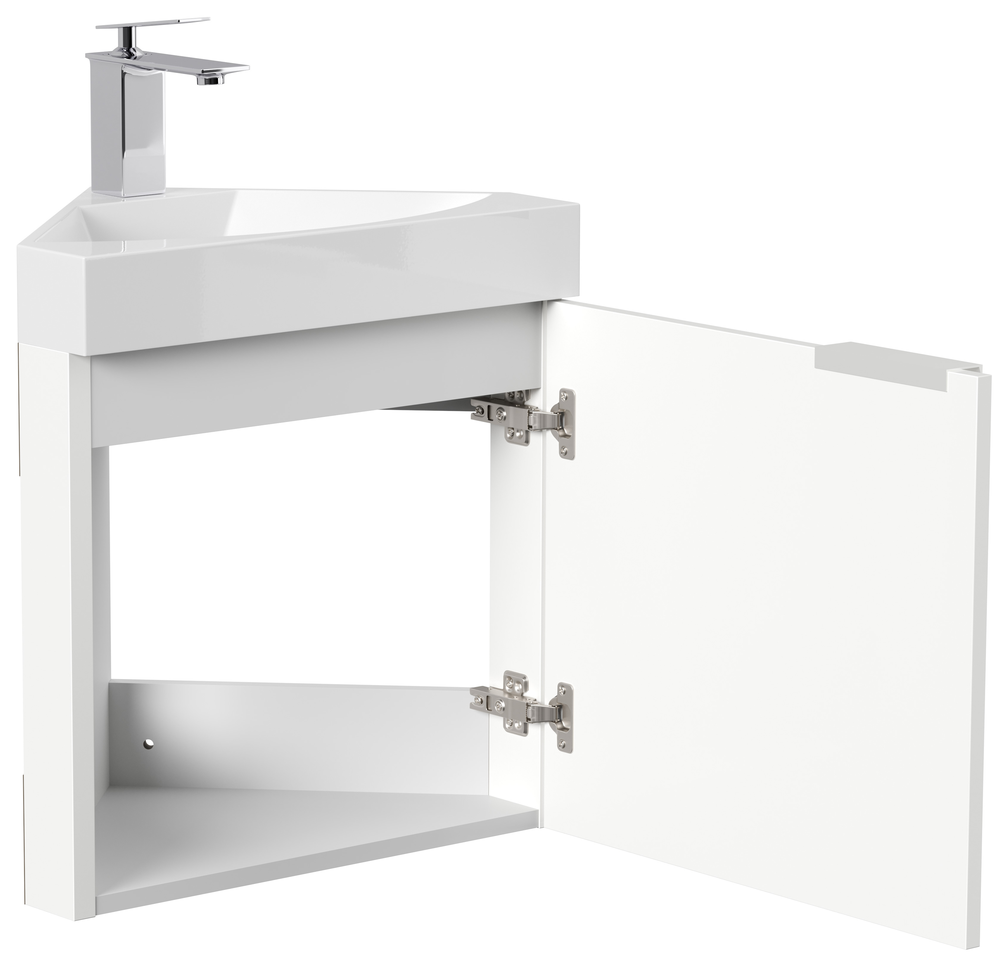 Eckbadmöbel mit Mineralguss Waschbecken (B/H/T) 53/56/35 cm,Montage-Empfehlung: