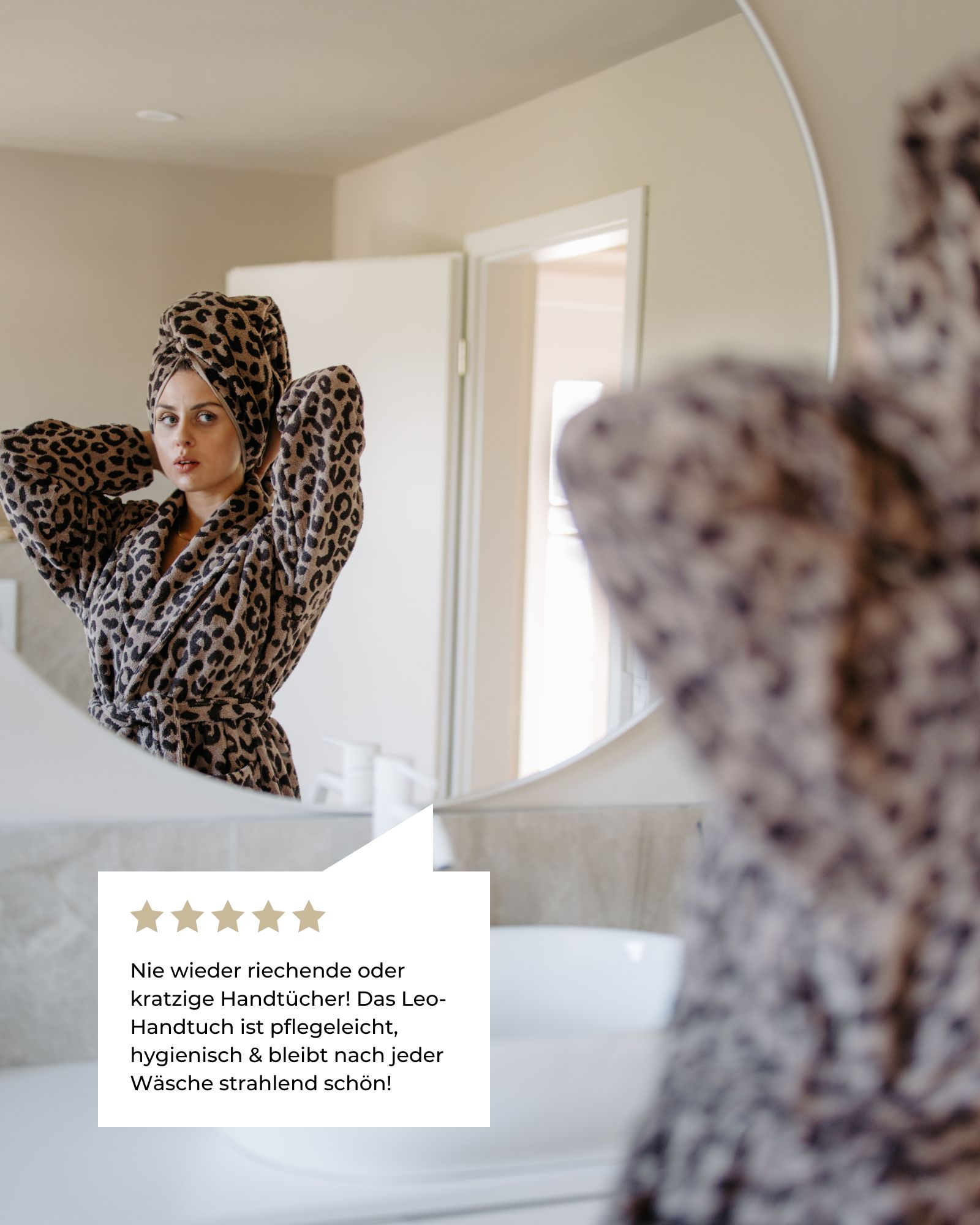 Entdecke die Handtücher LEO mit einem auffälligen Leoparden-Jacquard-Muster – ein stylisches Highlight für Dein Badezimmer. Ob verspielt oder dezent, diese Handtücher bieten vielseitige Styling-Möglichkeiten. Bringe ein Stück Wildnis in Dein heimisches Bad!