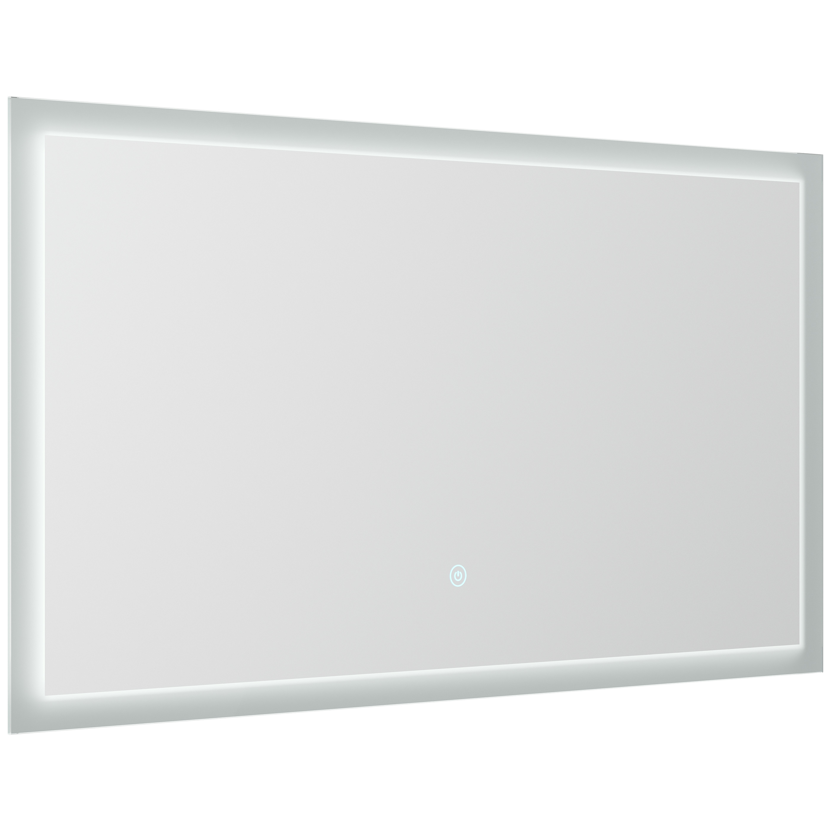 Der dimmbare Badezimmerspiegel hat eine integrierte LED Beleuchtung, die rund um den Spiegel verläuft. Diese wird mit der Touchbedienung gesteuert. Die Maße des Leuchtspiegel sind 100x53cm.