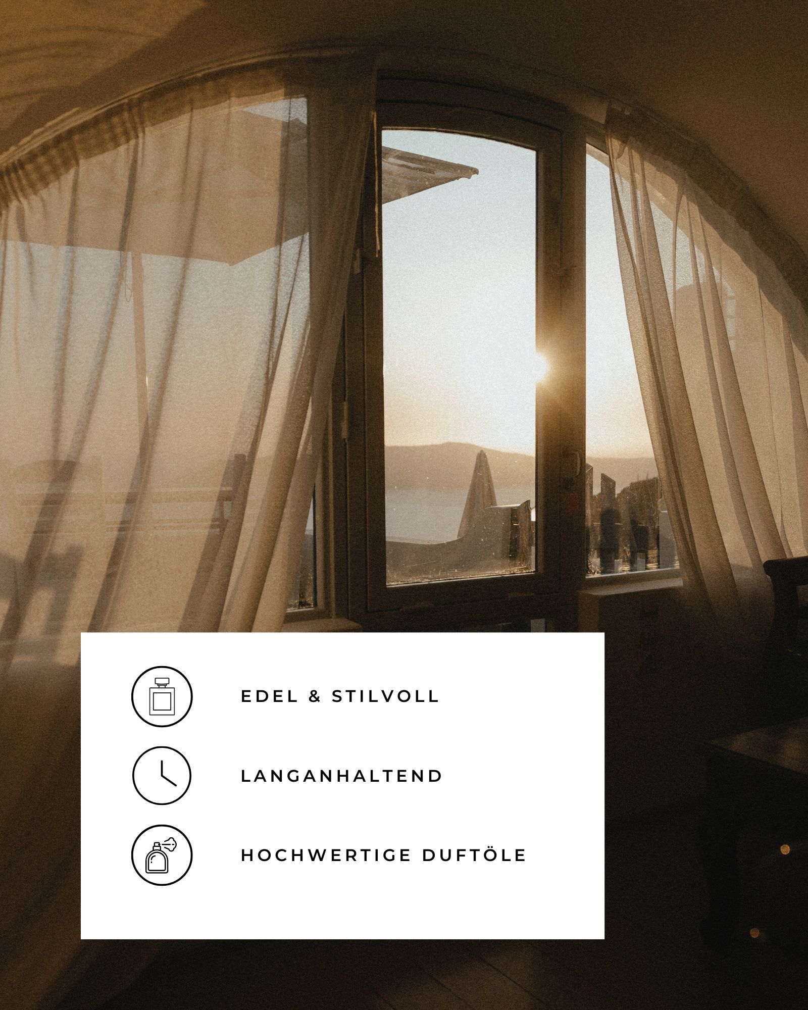 Das elegante schwarze Design kombiniert luxuriöse Duftkompositionen mit minimalistischer Ästhetik und setzt stilvolle Akzente in jedem Raum. Die feinen Duftnoten von spritziger Orange, klarem Eukalyptus und sanftem Sandelholz entfalten sich dezent und sorgen für eine langanhaltende, angenehme Atmosphäre – wie ein sanfter Start in einen sonnigen Tag am Mittelmeer. Genieße mit MORNING BREEZE jeden Tag neue Energie und mediterrane Gelassenheit – für deine persönliche Auszeit, wann immer Du möchtest.