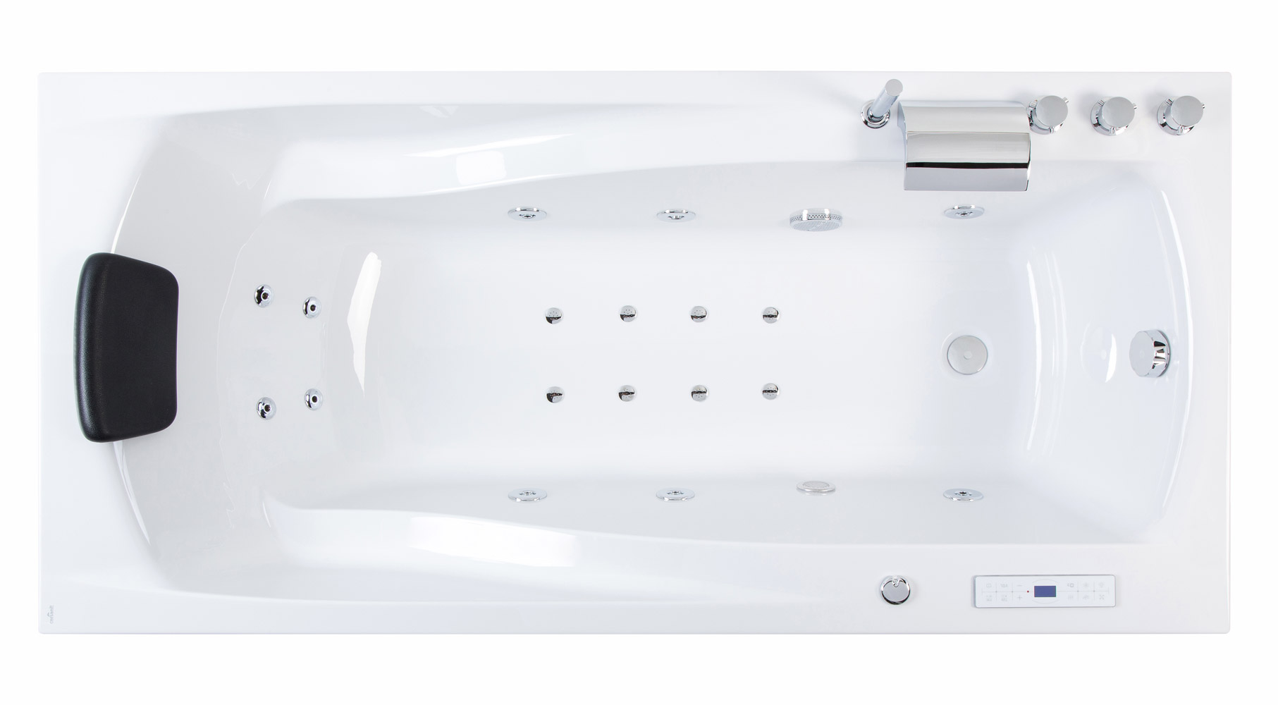 Vorteile: Dezente Strahler seitlich. Automatischer Farbwechsel mit gleichmäßiger Wasserbeleuchtung. Intensive Farben leuchten unter Wasser. Entspanntes Baden mit Chromotherapie.Massagefunktion: Düsen-Ausstattung
