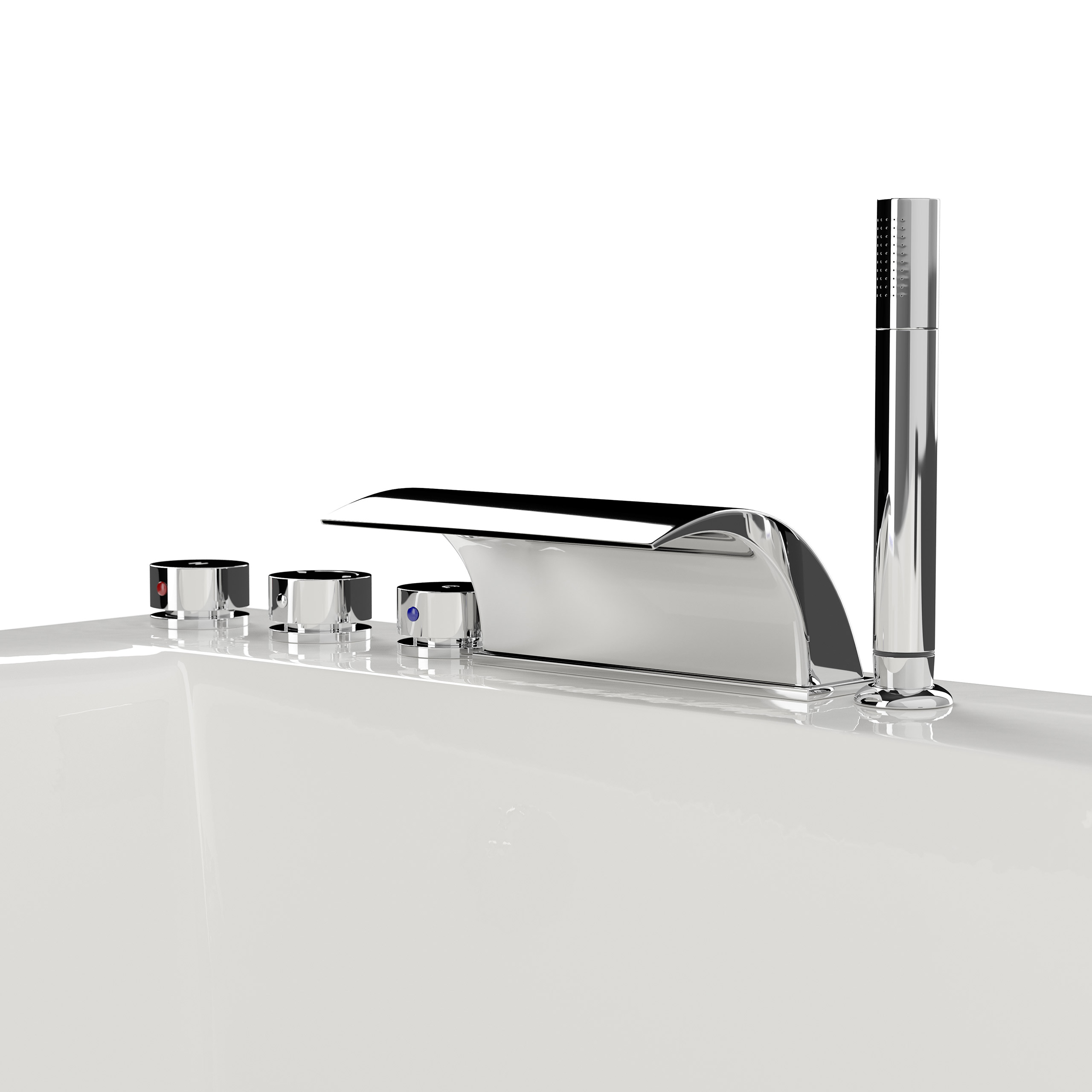 Zur kompletten Standard-Ausstattung gehören die 3er-Armatur (verchromte Messingarmatur mit Kunststoff-Kartusche), die Standard-Handbrause sowie der Wasserfall.