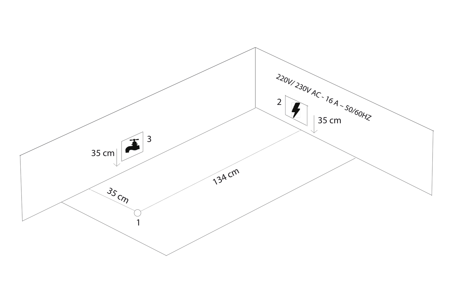 Variante MIT Armaturen: Für den Anschluss der ggf. im Lieferumfang enthaltenden Armaturen 1⁄2" werden zwei entsprechende Panzerschläuche 1⁄2" benötigt, jeweils für den Kaltwasseranschluss sowie für den Warmwasseranschluss. Bitte beachten Sie, die Kalt- und Warmwasserzuleitungen sind im Lieferumfang nicht enthalten.