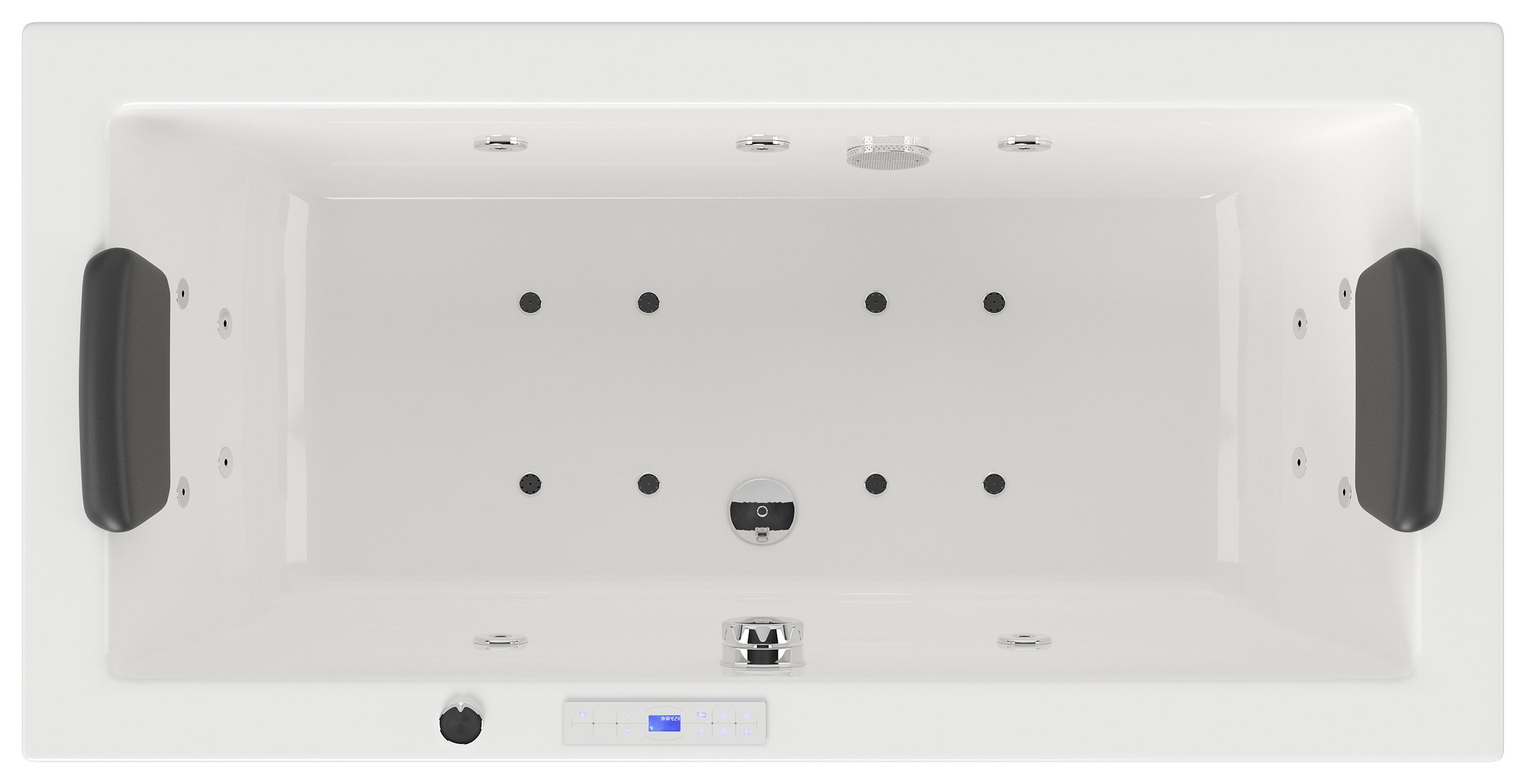 Vorteile: Dezente Strahler seitlich. Automatischer Farbwechsel mit gleichmäßiger Wasserbeleuchtung. Intensive Farben leuchten unter Wasser. Entspanntes Baden mit Chromotherapie.Massagefunktion: Düsen-Ausstattung