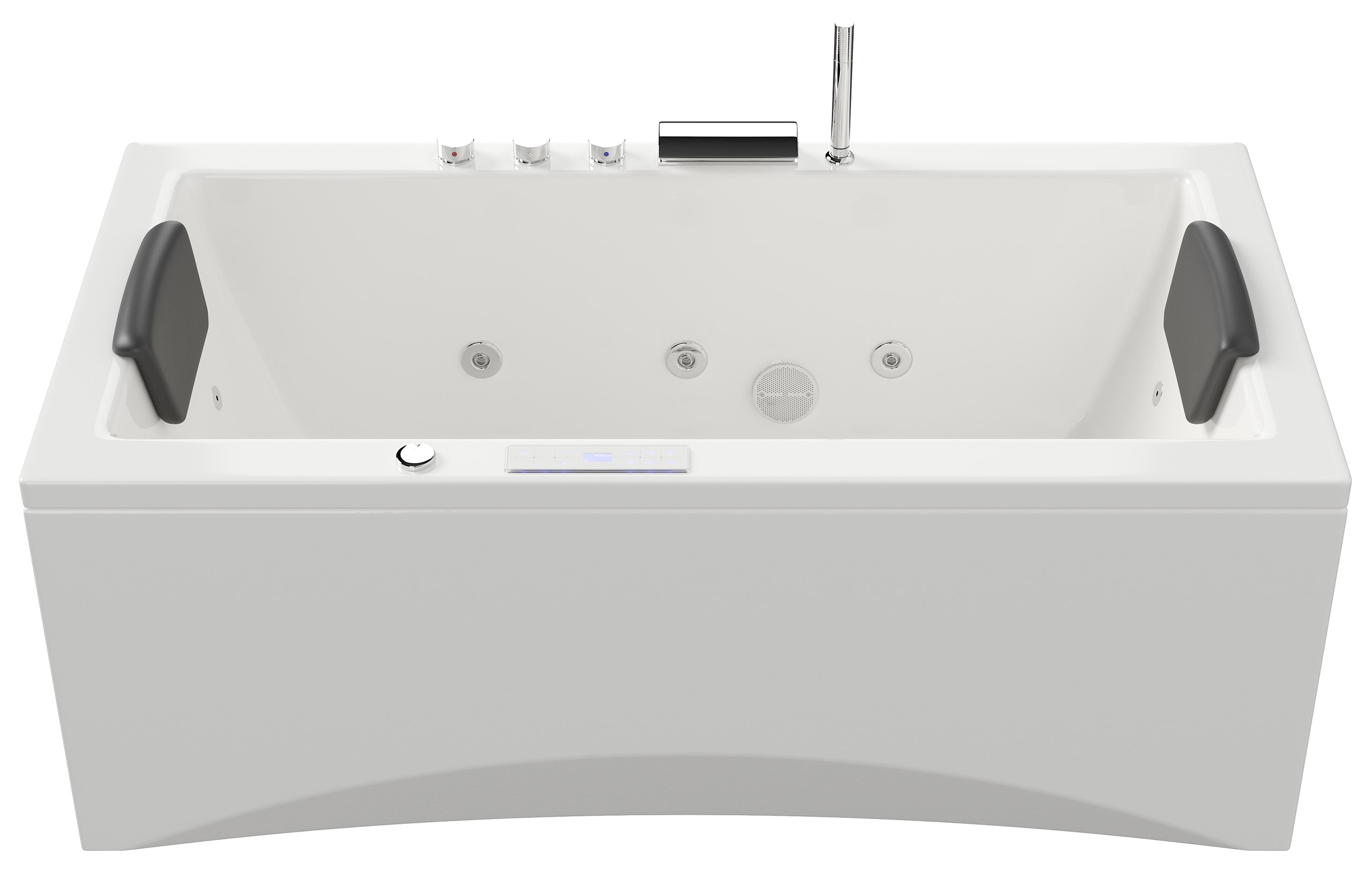 Vorteile: Dezente Strahler seitlich. Automatischer Farbwechsel mit gleichmäßiger Wasserbeleuchtung. Intensive Farben leuchten unter Wasser. Entspanntes Baden mit Chromotherapie.Massagefunktion: Düsen-Ausstattung